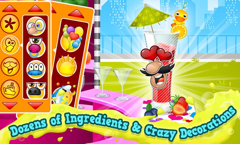 Crazy Chef Smoothie Maker! Get Groovy Smoothie Maker Skills With 20 Challenging Levels from Rookie to Master! Make Smoothies FAST and funky & Win Rewards for All that You Accomplish! Make Hundreds of Smoothies, Dozens of Ingredients & Crazy Decorations, Awesome Arcade Features & Effects!