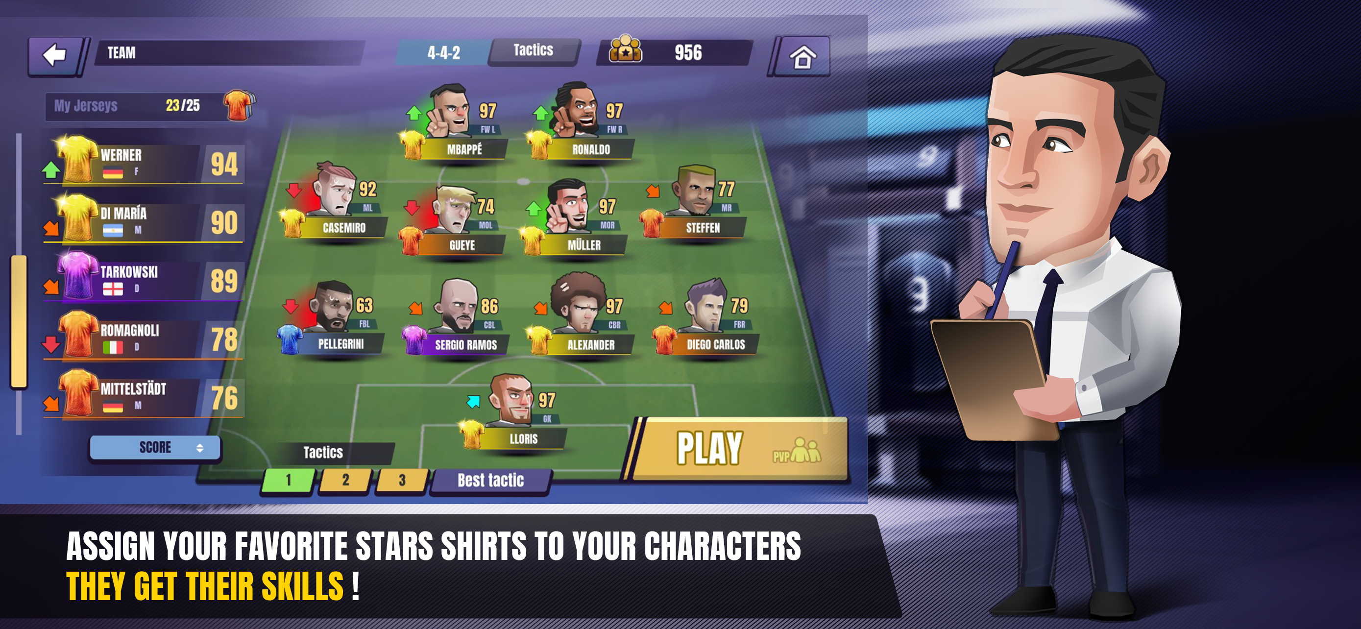 Verbessere dein Team, indem du mehr Budget freischaltest, legendäre Hemden kaufst, ihre Statistiken auf dem Markt analysierst, aber sei wirklich vorsichtig: Diese Statistiken werden sich jede Woche abhängig von den realen Leistungen echter Spieler weiterentwickeln! Wähle die besten Hemden für deine Strategie und perfektioniere dein Handwerk in Live-Spielen gegen Spieler aus der ganzen Welt.