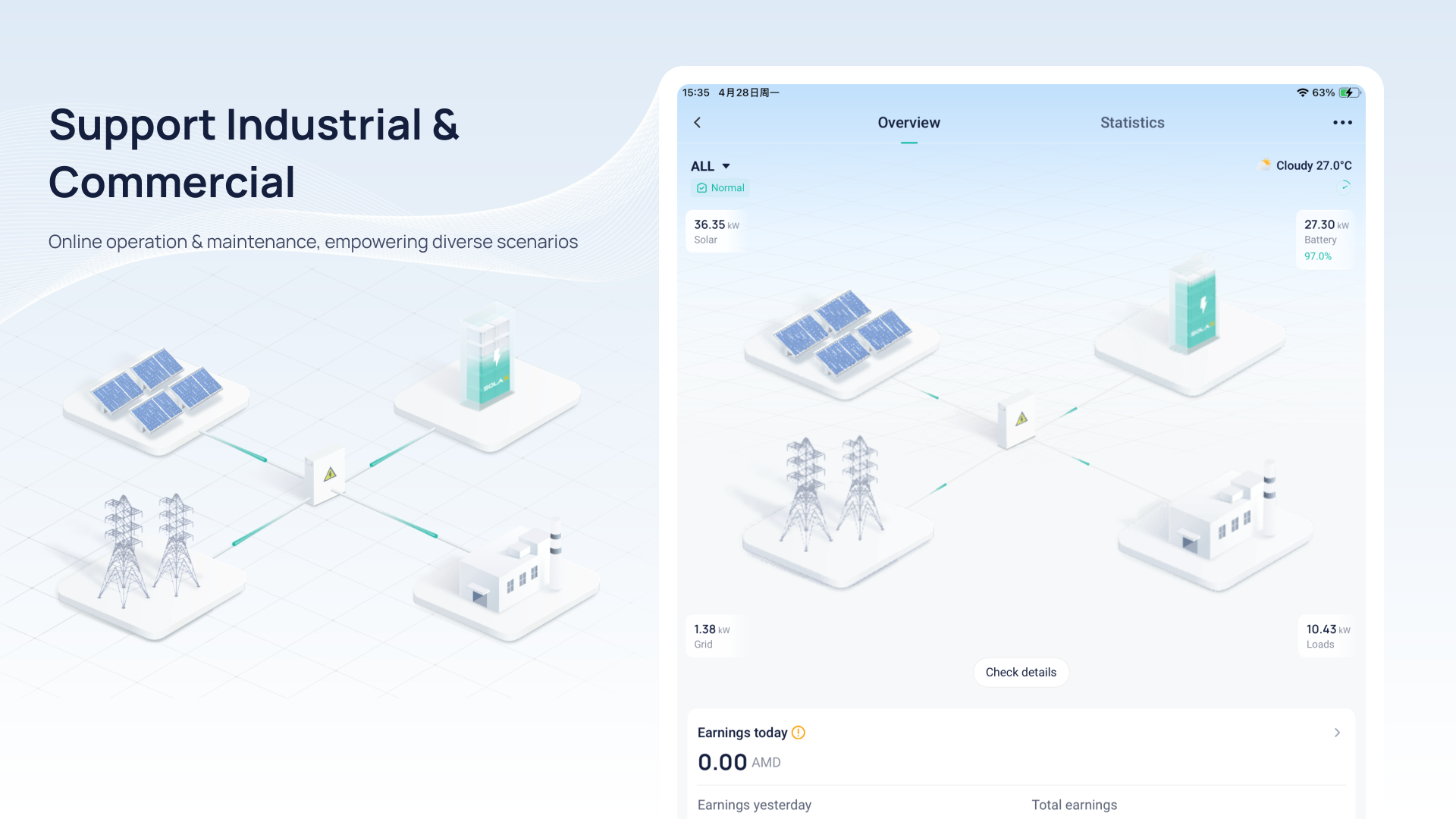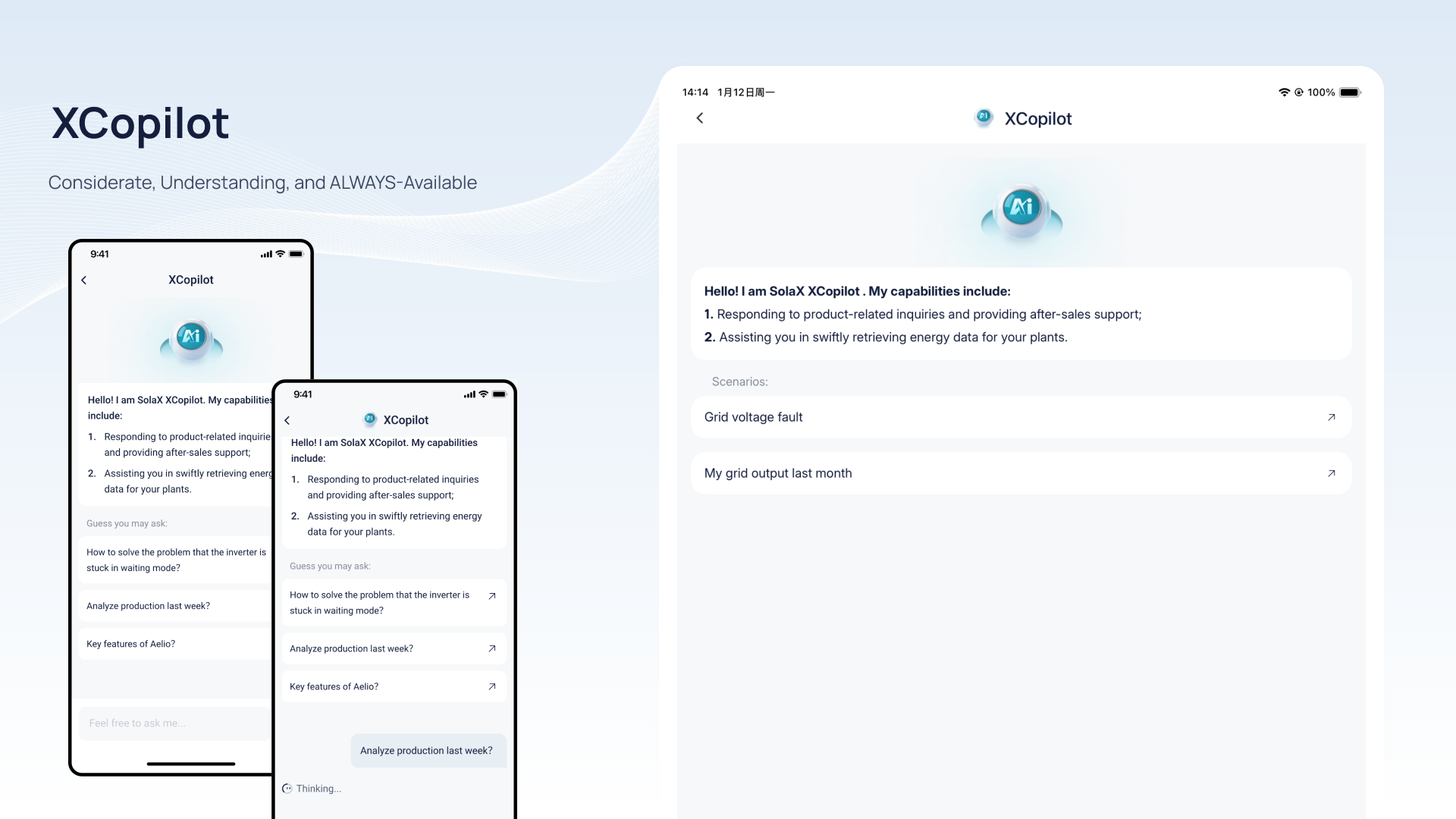 Residential 1. Optimized device access and data 2. Optimized TOU (Time-of-Use) function 3. Added email alerts for low equivalent generation Commercial & Industrial 1. Optimized device access and data 2. Added device feature matching 3. Added email alerts for low equivalent generation Installer 1. Upgraded service providers' permissions 2. Added email alerts for low equivalent generation 3. A new plant management interface Other business 1. Enhanced XCopilot and XSchedule