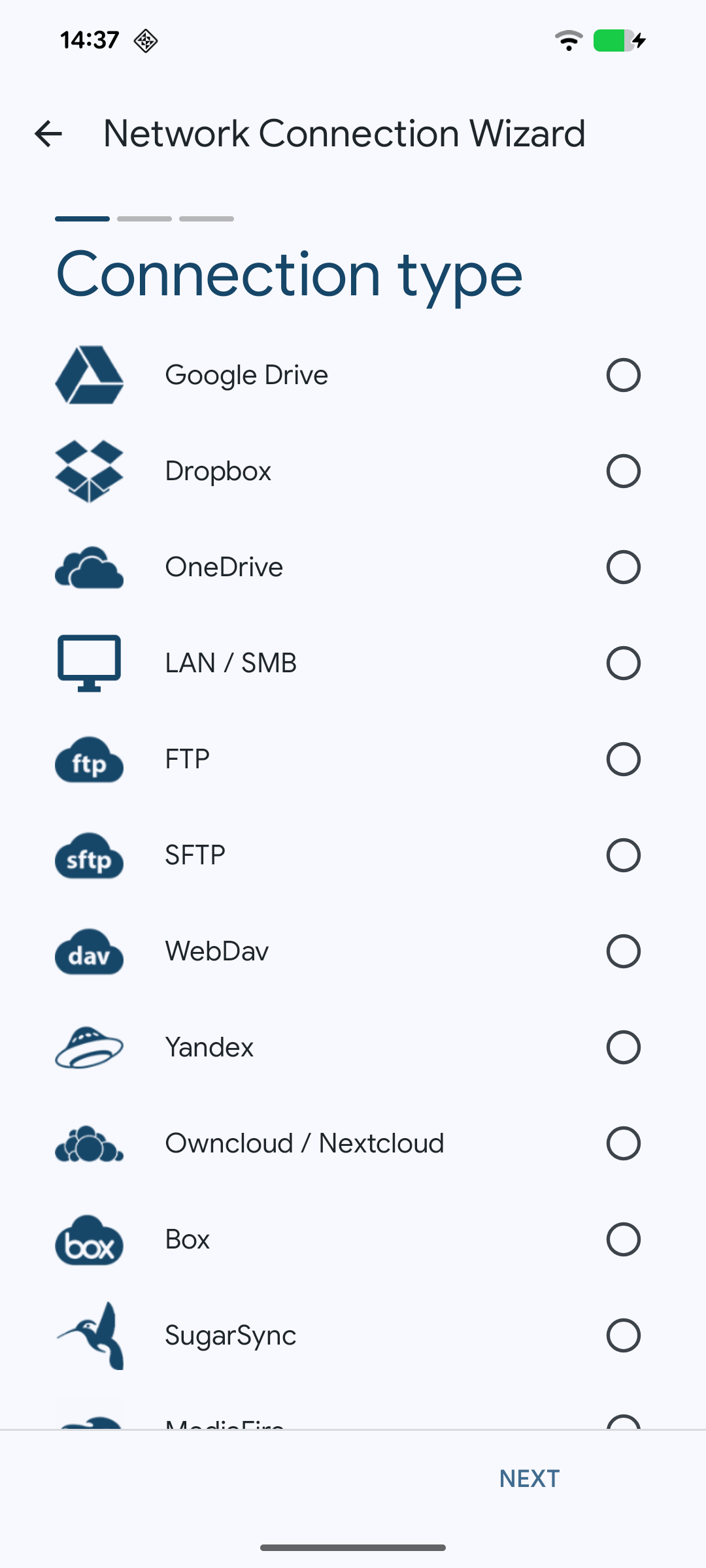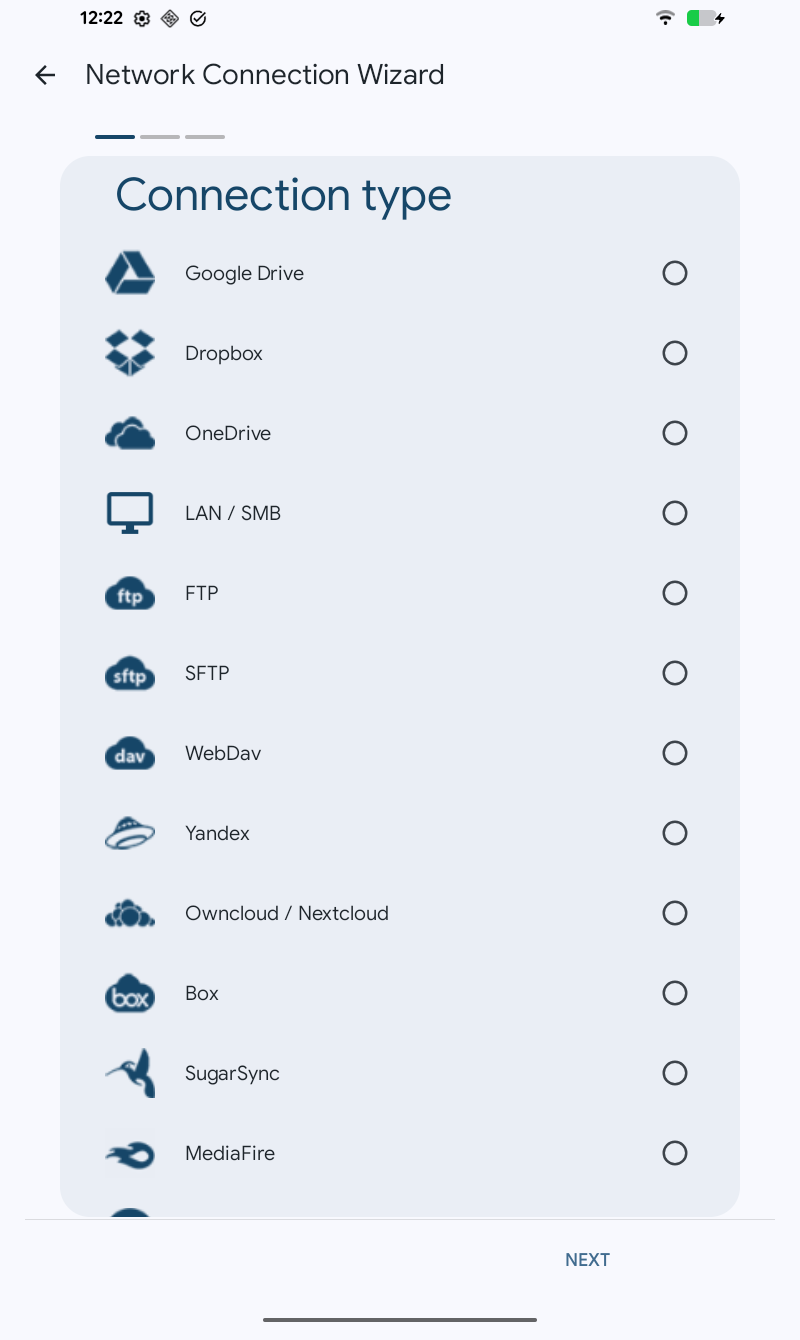 Solid Explorer unterstützt wichtige Netzwerkprotokolle und Cloud-Anbieter, mit denen Sie mehrere Remote-Dateispeicherorte von einem Ort aus, organisieren können. Sie können Dateien einfach zwischen Cloud-Standorten/Servern übertragen, indem Sie sie von einem Bedienfeld in ein anderes ziehen.
