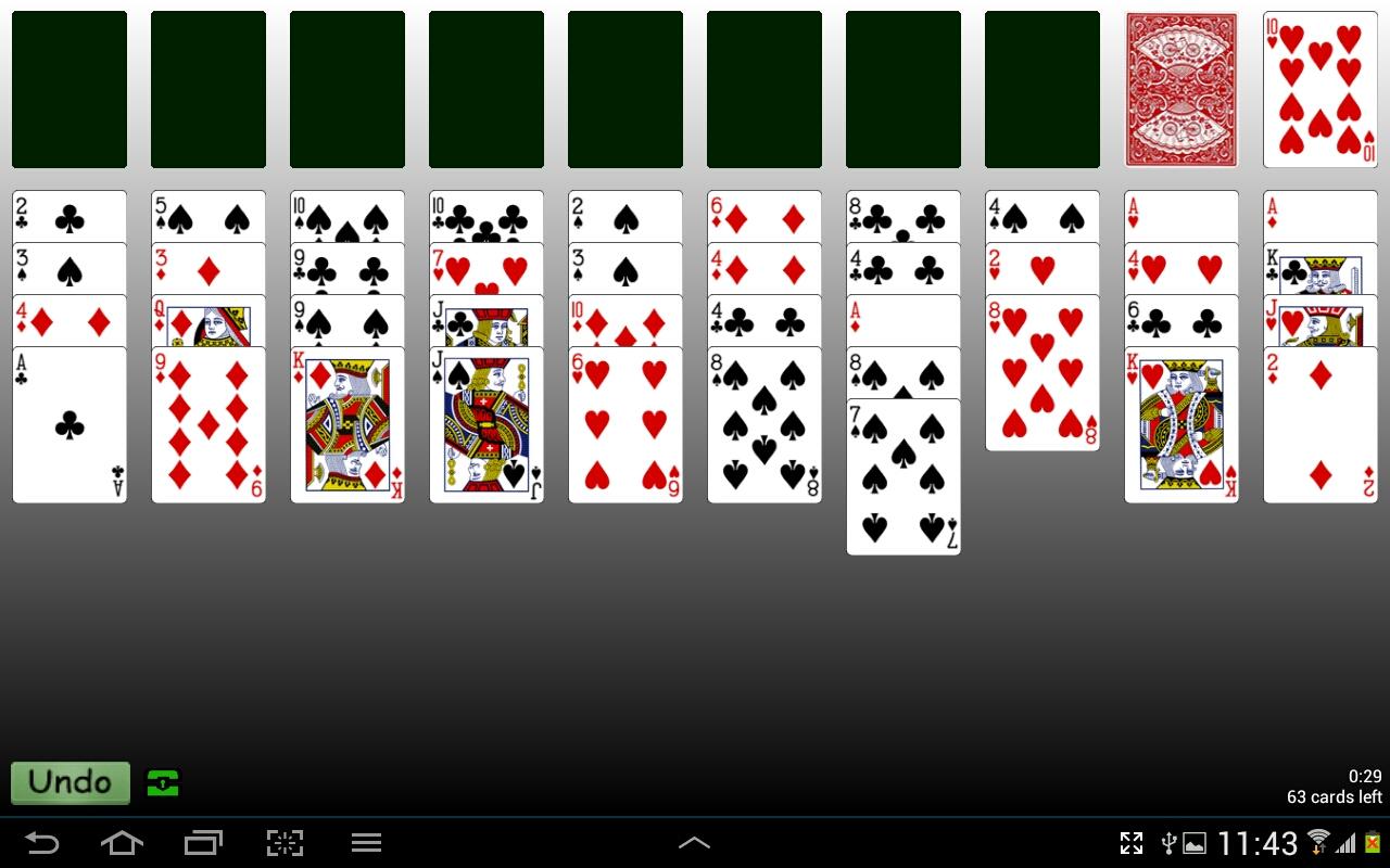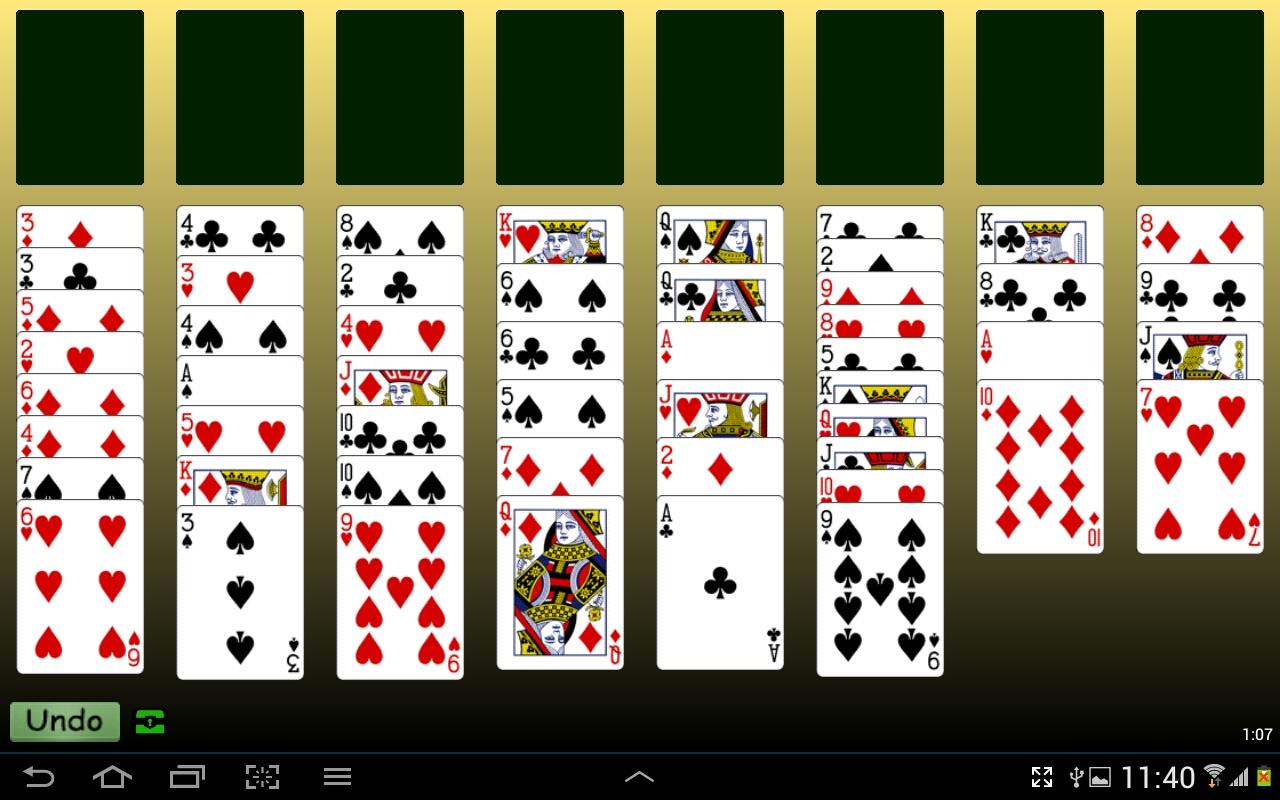 Solitaire Pack Karten ist groß und süchtig Kartenspiel Spiele, ist Solitaire-Spiele als die besten Karten Spiele auch als Geduld Pack Spiele bekannt zu betrachten. Solitaire -Karten Pack enthalten Klondike Solitaire , Spider Solitaire , FreeCell , Golf Solitaire , Forty Thieves Solitaire und Yukon Solitaire , werden wir hart arbeiten, um weitere große Solitär-Spiele zu dieser großartigen Solitaire Pack hinzufügen. Solitaire -Karten für die besten Spiel Experience Pack entworfen , unbegrenztes Undo bewegt wird Ihnen helfen, bis das Spiel , verwenden Sie die Reset- Option, um das gleiche Spiel von vorne beginnen , die neuen Spiel-Option , um neue Marke Spiel zu starten , auch nicht über unsere Hintergrund -Option vergessen unser Hintergrund Option bietet sich an Ihr Bildschirm Farbe von beliebig vielen Farben Variationen wählen, können Sie auch wählen, um unsere eigene Hintergründe verwenden , stellen Sie Ihren Bildschirm Farben Ihr wählen . Es gibt auch spezielle Optionen in einigen Spiele wie Klondike Solitär , wählen Sie 1 oder 3 Karten umzugehen. In Spider Solitaire können Sie wählen, mit 1 , 2 oder 4 Farben zu spielen, müssen Sie auch den Deal -Taste, um das Spiel noch interessanter . In Golf Solitaire können Sie wählen aus 3 Schwierigkeitsstufen , leicht , normal, hart und spielen . Nutzen Sie unsere mehr Apps Option, um unsere neue Marke Spiele zu entdecken , fühlen Sie sich frei , um unsere Spiele zu downloaden , spielen und genießen , senden Sie uns bitte Ihre Rückmeldungen , so können wir die richtigen Einstellungen . Solitaire -Karten -Pack , Spaß haben, sagen Sie uns Bescheid.