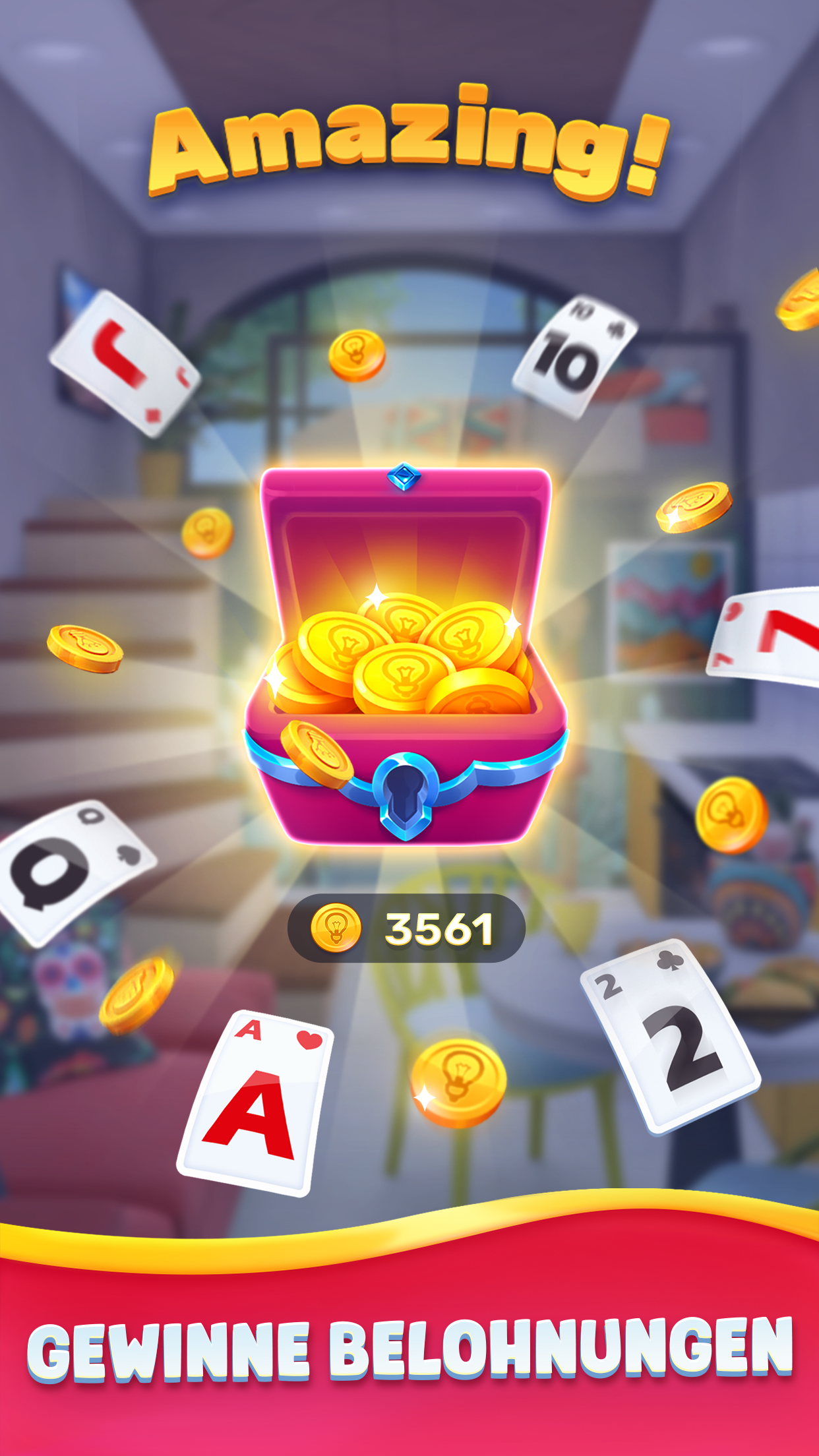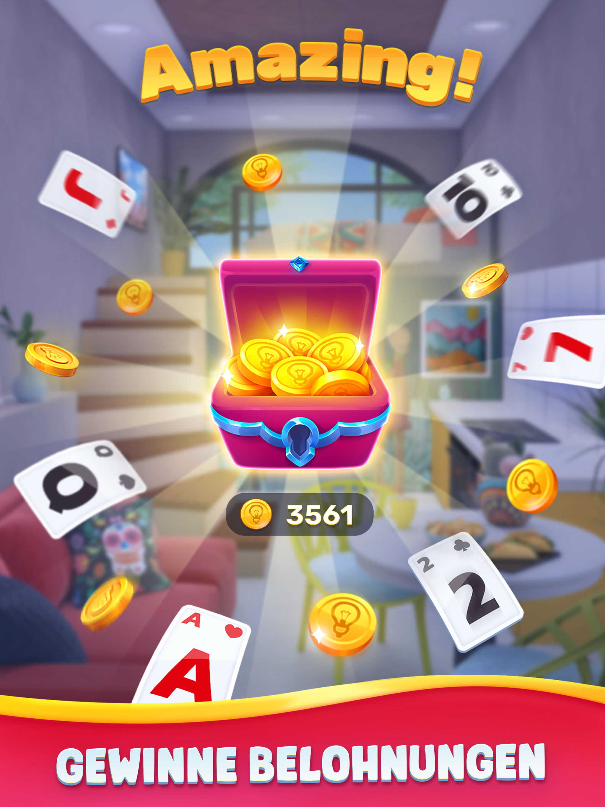 Spielen Sie ein Solitaire-Kartenspiel, renovieren Sie Ihr Haus und dekorieren Sie alle Arten von Orten! Genießen Sie klassische Pyramiden-, Tripeaks- oder Solitär-Spinnenspiele. Übrigens finden Sie hier verschiedene Wohndesign-Ideen, die mit dem Solitaire-Geschicklichkeitsspiel verknüpft sind. Erleben Sie mit uns unterhaltsame Designergeschichten mit dem klassischen Tripeaks-Solitaire! Funktionen des Solitaire-Kartenspiels: - Das Spiel kombiniert klassisches Themen-Solitaire und Wohndesign; - Tägliche Veranstaltungen und exklusive Räume; - Das Kartenspiel macht Spaß und macht süchtig; - Solitaire-Tripeaks-Rätsel sind in verschiedenen Schwierigkeitsgraden erhältlich; - Moderne Artikel zur Renovierung und Dekorationsinspiration; - Wunderschöne Spielgrafiken; - Verschiedene Orte mit unzähligen interessanten und herausfordernden Levels in einer Solitärwelt; - Fesselnde Geschichten Ihrer Kunden; - Leistungsstarke Booster, um Levels schneller zu durchlaufen; - Tonnenweise Belohnungen und Boni. Tripeaks Solitaire ist ein süchtig machendes Spiel, das allen Spielertypen viel Freude bereitet! Es kann Ihnen helfen, Ihr Gehirn zu trainieren und Ihren Geist bei einem Kartenspiel auf entspannende Weise zu schärfen. Holen Sie sich Belohnungen für das Bestehen der Level-Reise! Beginnen Sie das lustige Kartenabenteuer, bei dem Sie herausfordernde Level bestehen und Einrichtungsgegenstände auswählen, die zu Ihrem Stil passen, um das Zuhause Ihrer Träume zu gestalten. Werden Sie jetzt ein wahrer Design-Meister für Solitaire-Kartenspiele! Holen Sie sich so viele Sterne wie möglich, erhalten Sie Belohnungen für Ihre Siege, erhalten Sie tägliche Boni und nutzen Sie Booster für größeren Erfolg! Tägliche Boni und andere Sonderfunktionen werden Ihr Kartenspielerlebnis erweitern und Ihr Spiel noch unterhaltsamer machen! Genießen Sie mehrere Ebenen, die Ihnen helfen, intelligenter zu sein. Darüber hinaus verbessern Sie Ihre Designfähigkeiten mit unseren Solitaire House-Rätseln! Die Designgeschichte von Solitaire House Design & Cards erwartet Sie. Tauchen Sie ein in die Renovierung eines Hauses oder bauen Sie ein riesiges Chalet in den Bergen, oder wer weiß, Ihr Kunde beschließt, ein Haustiercafé einzurichten? Erledige die Aufgaben, verdiene Belohnungen und erlebe deine klassische Kartenspielreise in einem unterhaltsamen Spiel, um deine Gehirnleistung zu testen. Renovieren Sie Ihre Zimmer, personalisieren Sie Ihren Stil, entwerfen Sie ein Haus und einen Garten Ihrer Träume und dekorieren Sie Ihr Herrenhaus. Dekorieren Sie verschiedene Arten von Räumen, vom eleganten Herrenhaus bis zum grünen Garten oder Gewächshaus, aus dem niemand fliehen möchte. Entspannen Sie sich und genießen Sie die Welt des Tri-Peaks-Spiels Solitaire House Design & Cards!