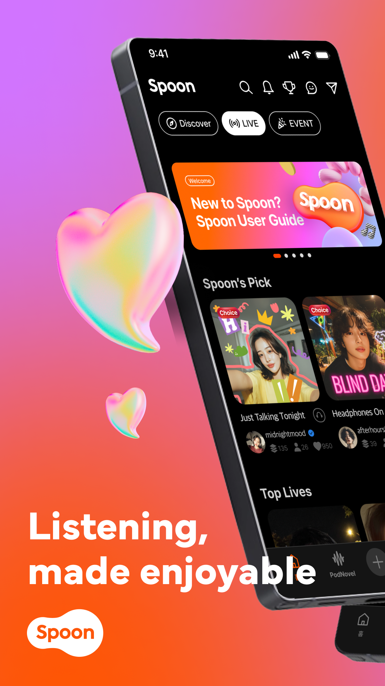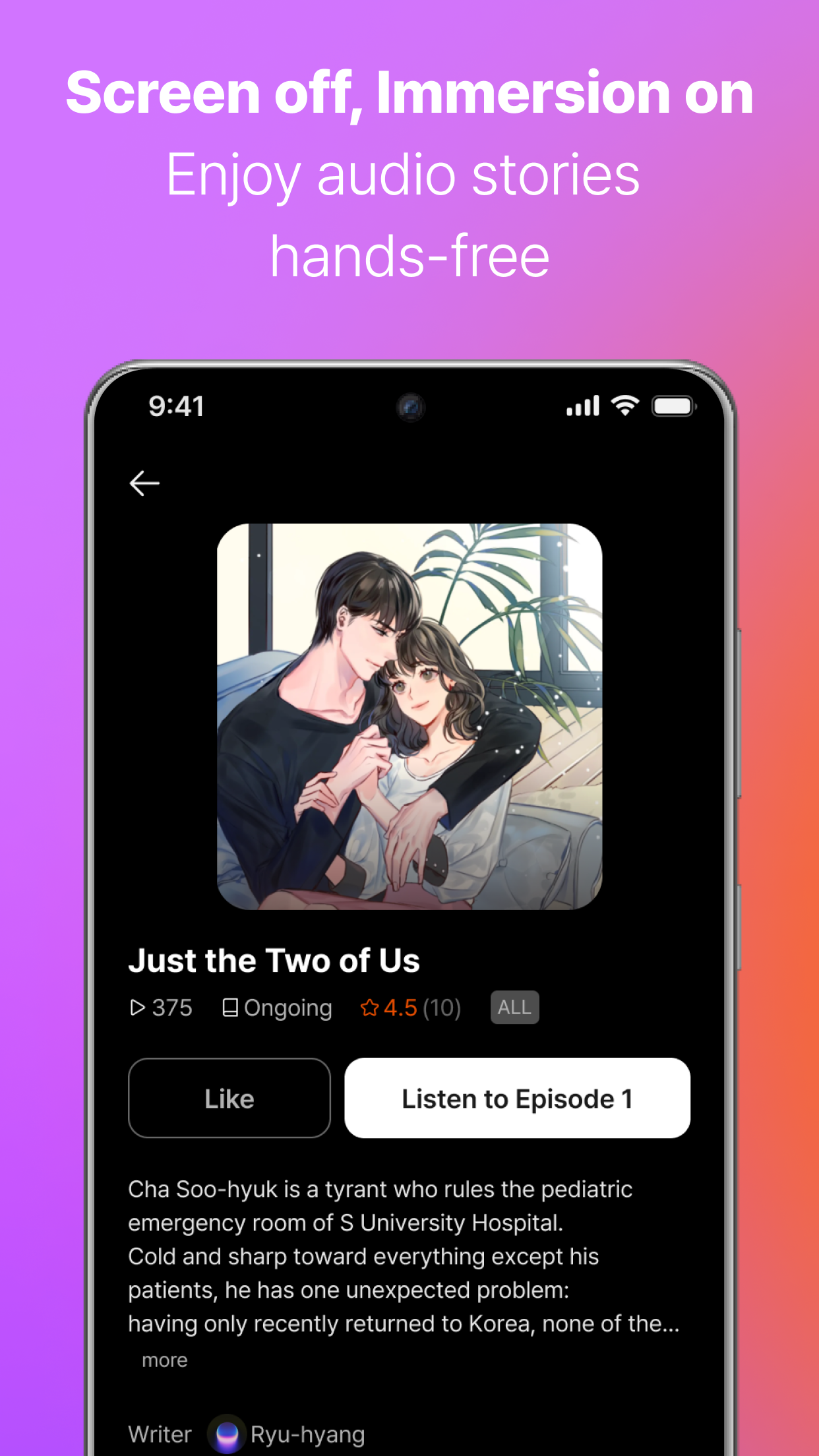 Introducing Spoon Podnovel – audio novels you can enjoy anytime. Just listen and immerse yourself in the story, even when you're on the move or your eyes need a rest. Listen episode by episode or binge-listen to multiple episodes. Enjoy Spoon Podnovel, screen-free.