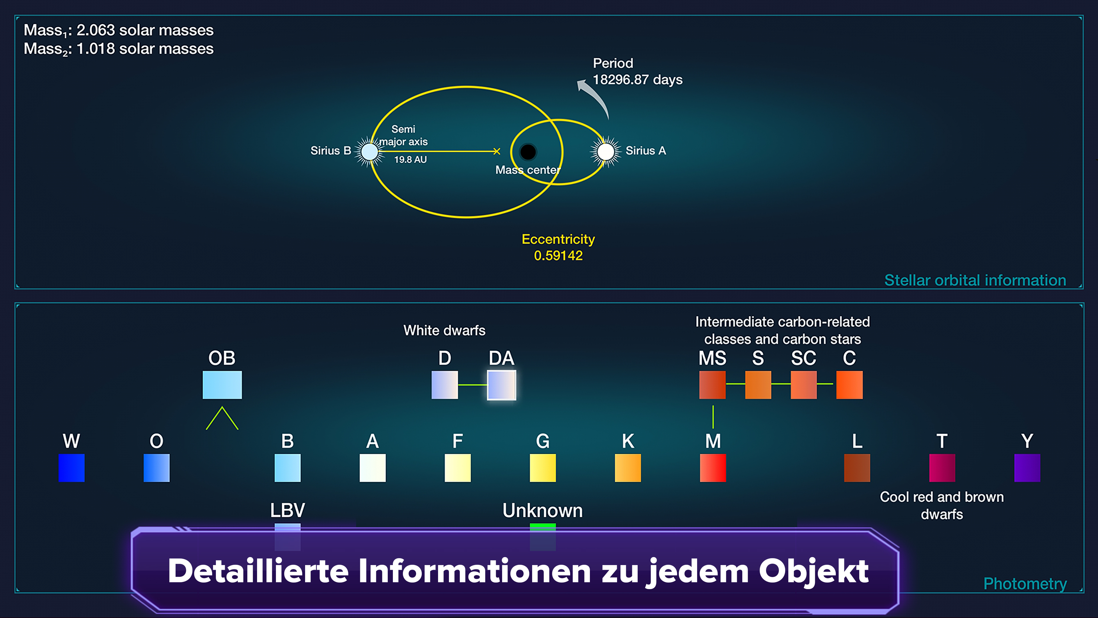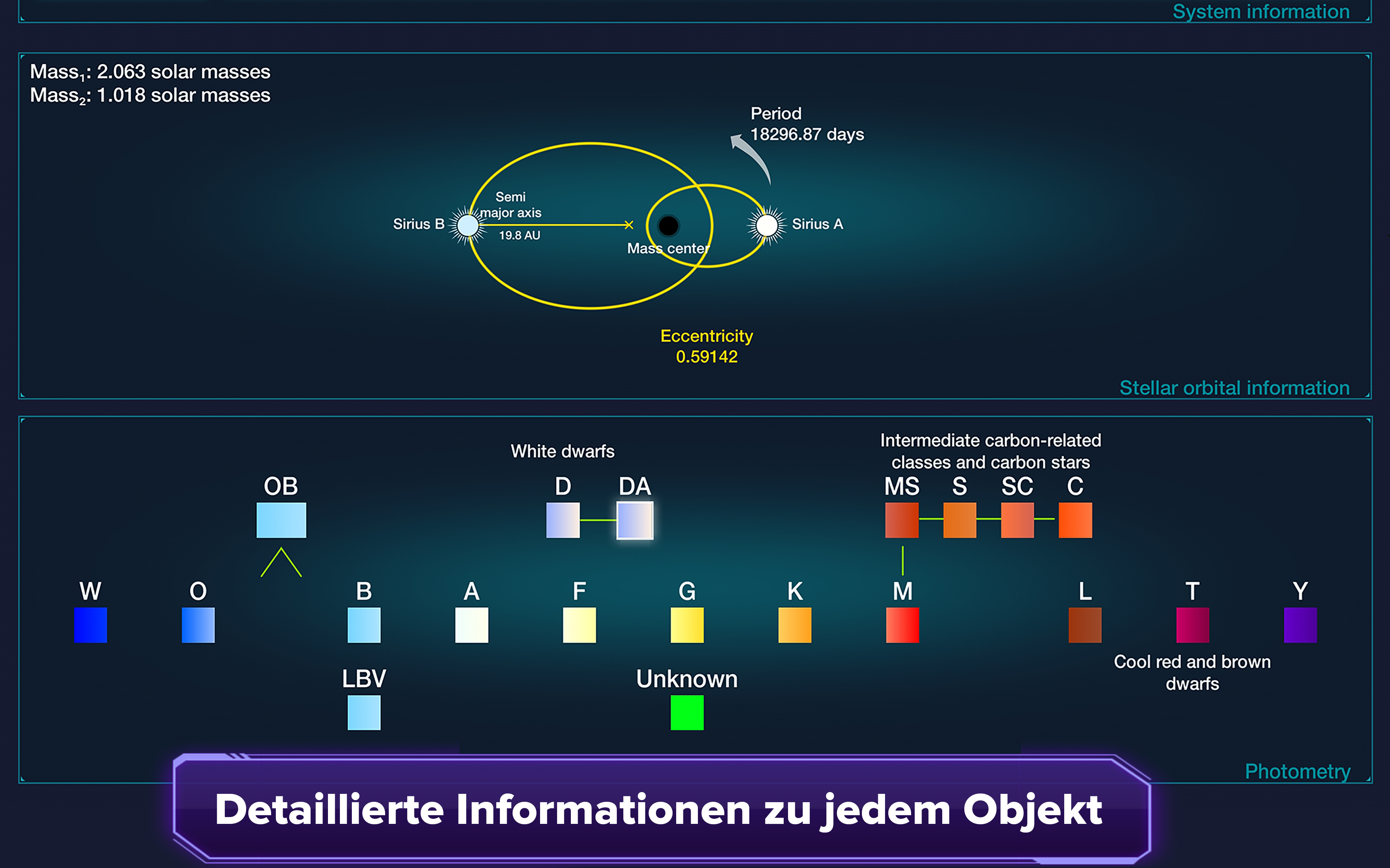 Erleben Sie die faszinierenden Wunder des Kosmos mit Sterne und Planeten, einem interaktiven 3D-Planetarium, das auf präzisen Daten von NASA- und ESA-Weltraummissionen basiert. Begeben Sie sich auf eine tiefgründige Expedition durch die unendlichen Weiten des Weltraums, wo eine Fülle an Wissen verfügbar ist, das direkt von der Spitze der bahnbrechenden Weltraumforschung stammt. Durchqueren Sie die Weiten der Galaxie und schweben Sie durch den Sternenstaub, während Sie zu Millionen von Sternen reisen. Landen Sie auf fremden Planeten und Exomoons, wo atemberaubende Landschaften und unermessliche Wunder auf Sie warten. Erleben Sie den Nervenkitzel, in die turbulente Atmosphäre von Gasriesen einzutauchen, um zu ihren schwer fassbaren Kernen zu gelangen. Erweitern Sie die Grenzen der Erforschung, indem Sie sich Schwarzen Löchern, Pulsaren und Magnetaren nähern, wo die Gesetze der Physik an ihre Grenzen stoßen. Mit Stars and Planets wird das gesamte Universum zu Ihrem Spielplatz und bietet eine unvergleichliche Plattform für Entdeckungen und Erleuchtung. Funktionen ★ Fesselnde Raumfahrzeugsimulation, die es Benutzern ermöglicht, zu verschiedenen Planeten und Monden zu fliegen und die Tiefen von Gasriesen zu erkunden ★ Landen Sie auf Exoplaneten, übernehmen Sie das Kommando über einen Charakter und erkunden Sie die einzigartigen Oberflächen dieser fernen Welten ★ Täglich aktualisierte Informationen zu Exoplaneten aus mehreren Quellen, sodass keine manuellen Anwendungsaktualisierungen erforderlich sind ★ Umfangreiche Online-Datenbank mit etwa 7,85 Millionen Sternen, über 7400 Exoplaneten, 205 zirkumstellaren Scheiben, 32868 Schwarzen Löchern, 3344 Pulsaren und über 150 Monden in unserem Sonnensystem ★ Umfassendes Suchsystem zur effizienten Datenbeschaffung von stellaren und substellaren Objekten ★ Globale Zugänglichkeit mit Unterstützung für über 100 Sprachen Daten aus verschiedenen Quellen importiert, darunter: SIMBAD, The Extrasolar Planets Encyclopedia, NASA Exoplanet Archive, Planet Habitability Laboratory Treten Sie meinem Discord-Server bei, damit Sie sehen können, welche neuen Funktionen in der Zukunft geplant sind, oder wenn Sie einfach nur über weltraumbezogene Dinge sprechen möchten: https://discord.gg/dyeu3BR Wenn Sie einen PC/Mac haben, können Sie auch hier über Ihren Browser auf Sterne und Planeten zugreifen: https://galaxymap.net/webgl/index.html