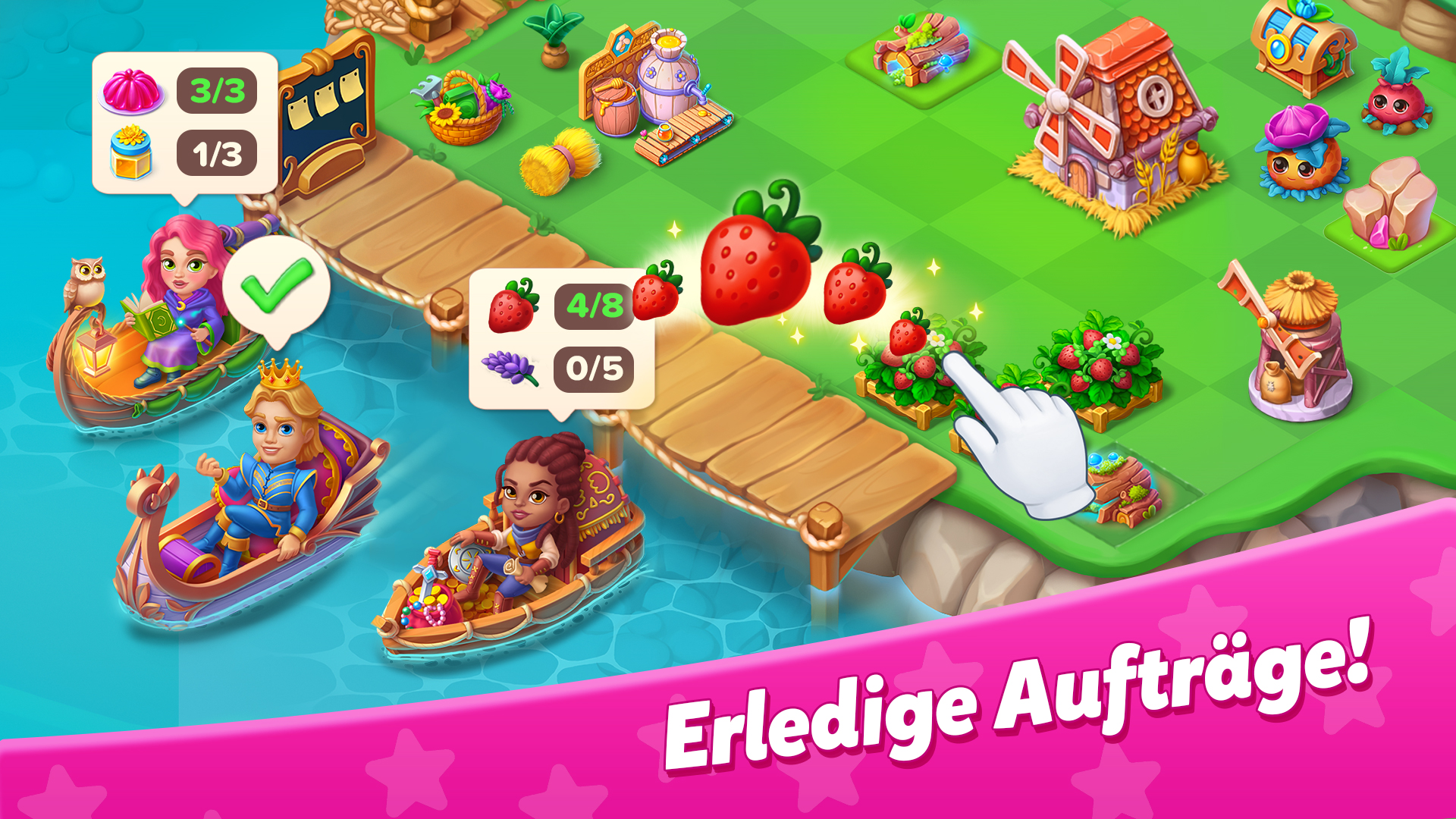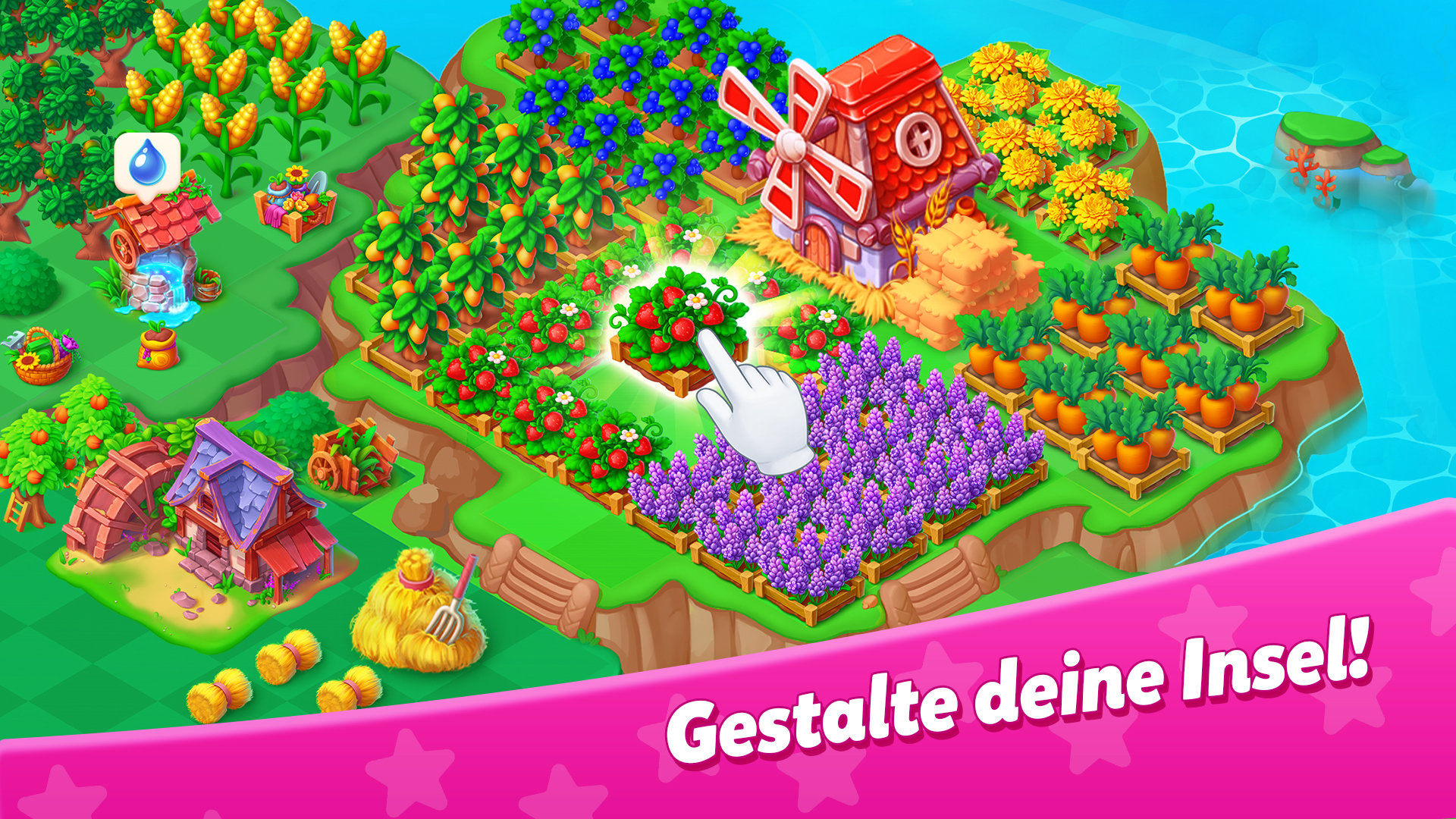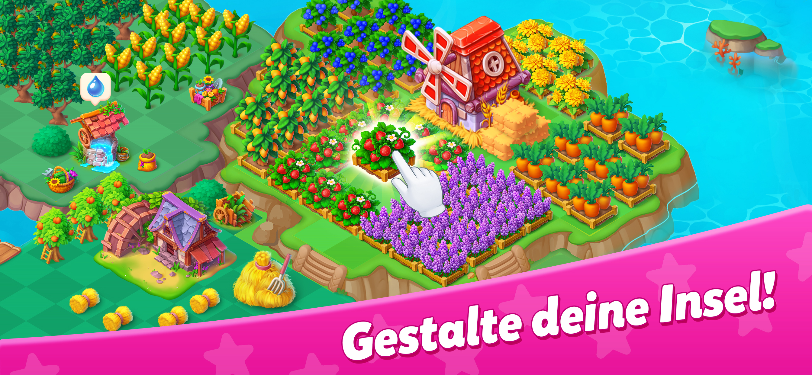 • Gieße Pflanzen, ernte Obst & Gemüse, kombiniere alles für magische Produkte.