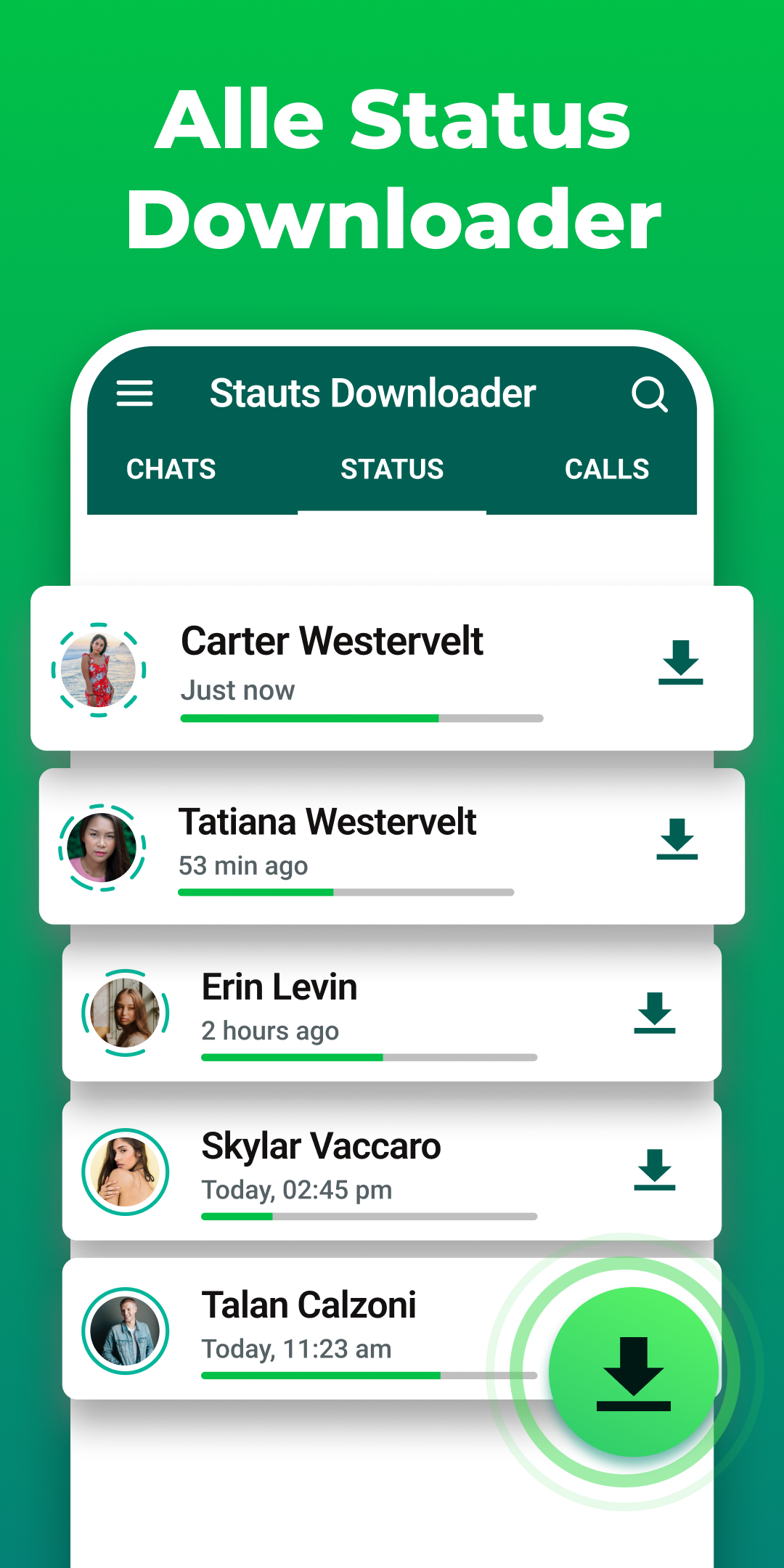 Schnell Status Downloader zum WhatsApp Multi Speichern Bild und Videos zu teilen Sie mit welcher Status Downloader. Spielen Videos mit das Beste Video Spieler und schnell Status Downloader zum WA. Download alle das Video Status wie Jubiläum, Unterbrechung hoch, komisch, l Liebe Sie, die Ehe, fehlschlagen Sie, glücklich Geburtstag Status, romantisch Liebe, traurig Lieder mit welcher Status Downloader. Tat Sie brauchen zu Aussicht gelöscht Mitteilungen? Download Video Status App und welcher Status Downloader es Wille informieren Sie von wie auch immer Videos, Fotos, und Mitteilungen erhalten gelöscht.