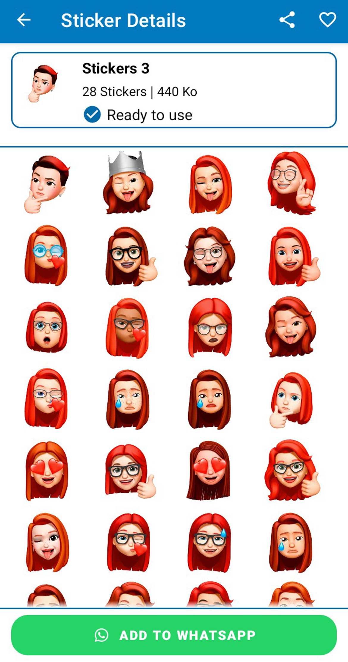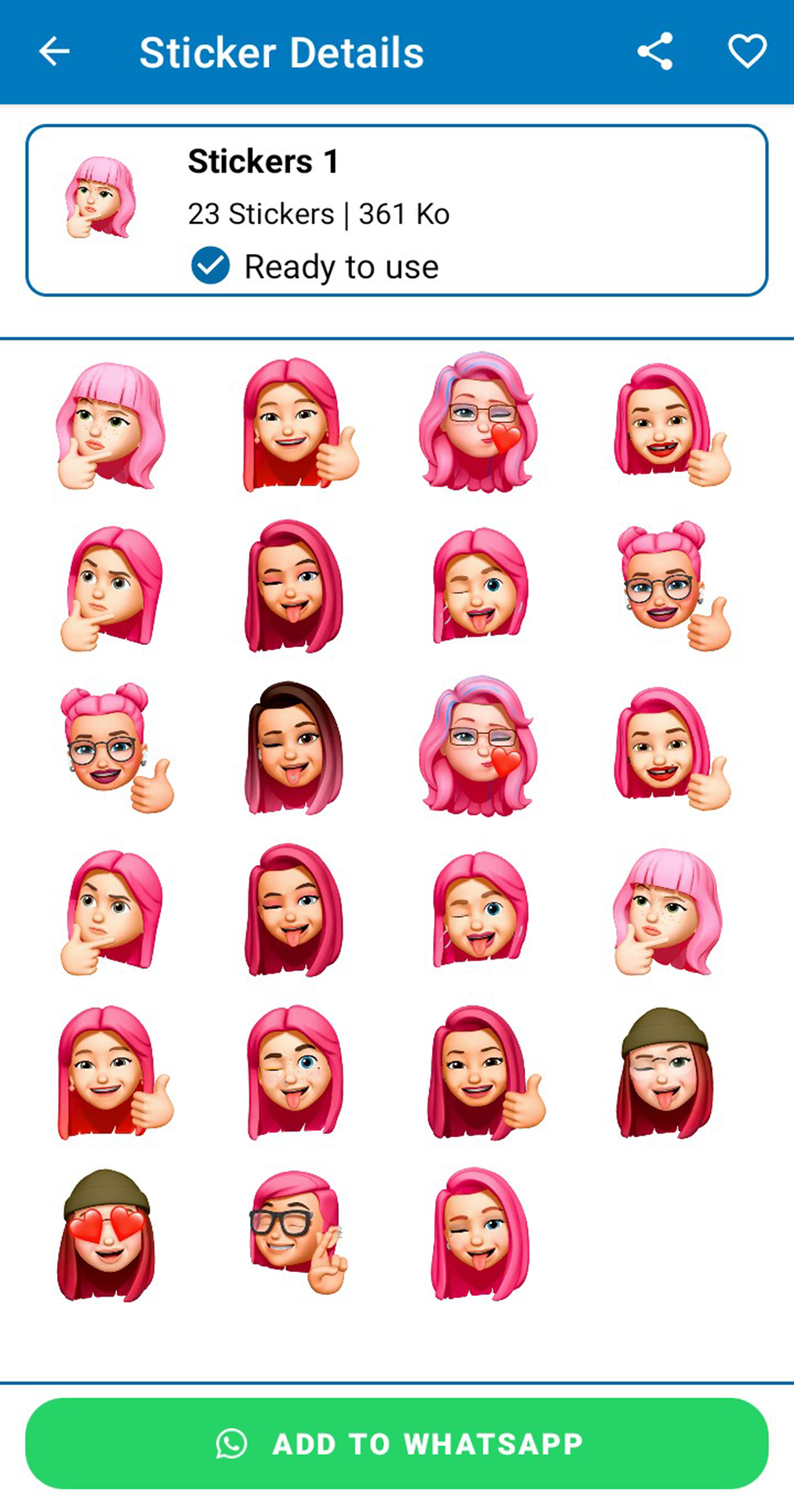 Stickers Memoji (Paketname: lovesticker.coolmemes.funnystickers) wird von Wonderful Design entwickelt und die neueste Version von Stickers Memoji : WASticker 22.0 wurde am 15. Oktober 2025 aktualisiert. Stickers Memoji : WASticker liegt in der Kategorie von Kommunikation. Sie können alle Apps von dem Entwickler der Stickers Memoji : WASticker durchsuchen. Derzeit ist diese APP kostenlos. Diese App kann auf Android 6.0+ auf APKFab oder Google Play heruntergeladen werden. Alle APK/XAPK Dateien auf APKFab.com sind original und 100% sicher, schnell herunterzuladen.