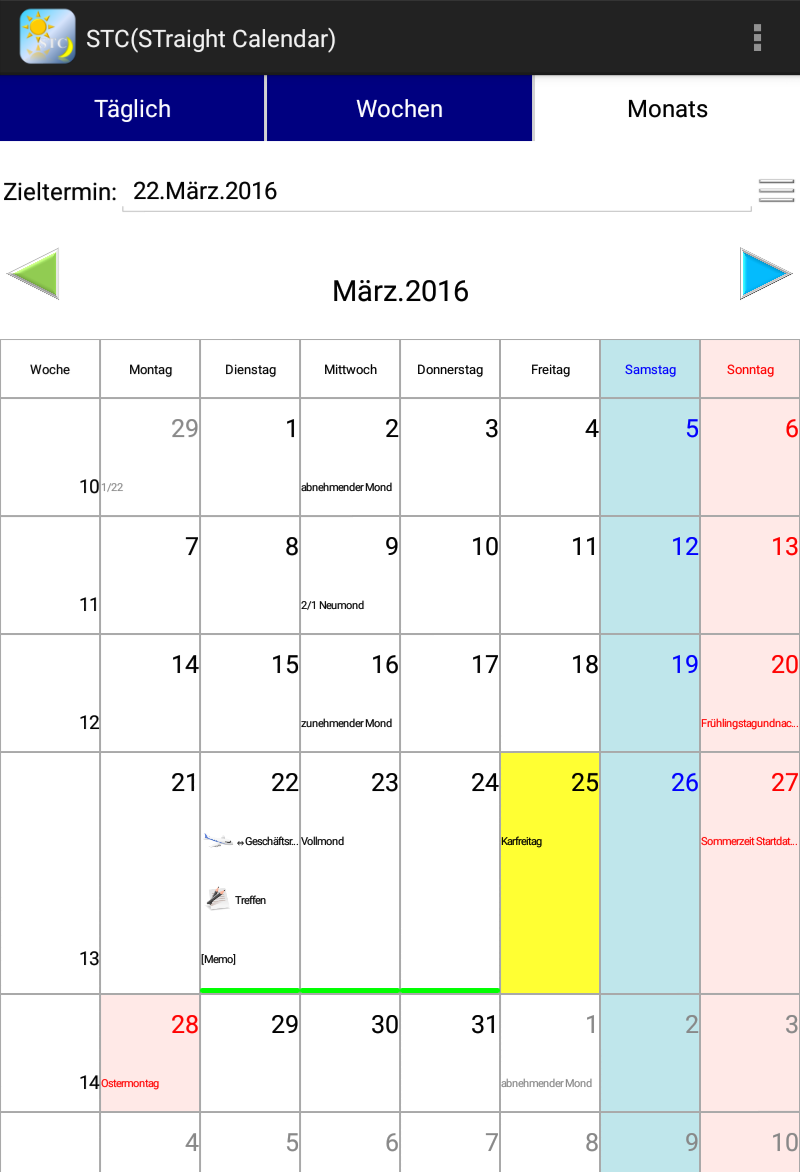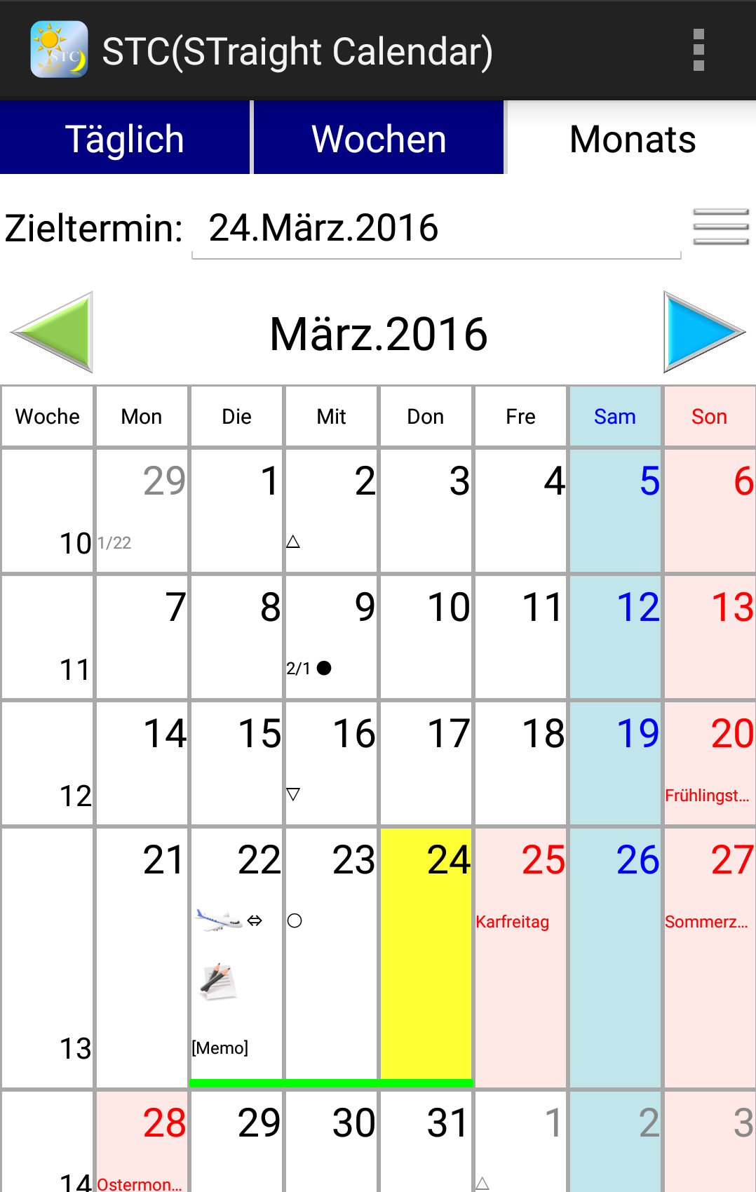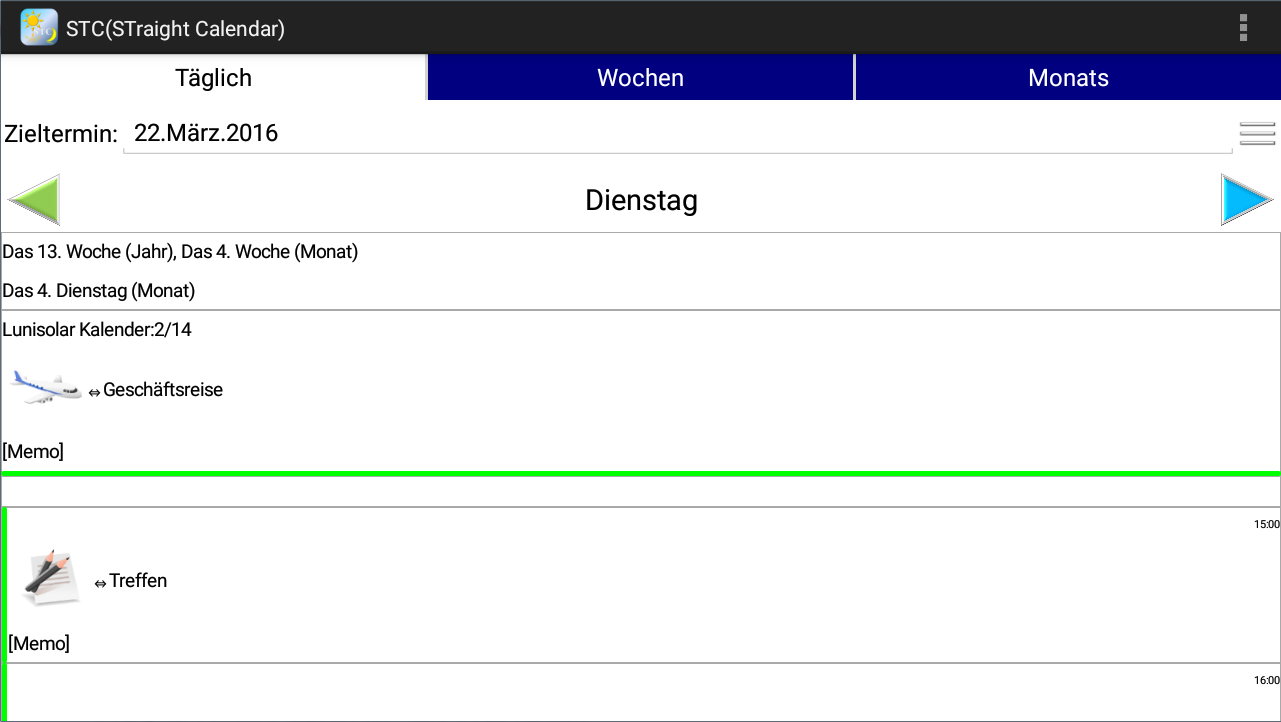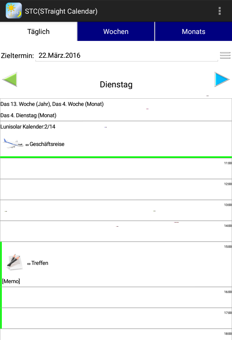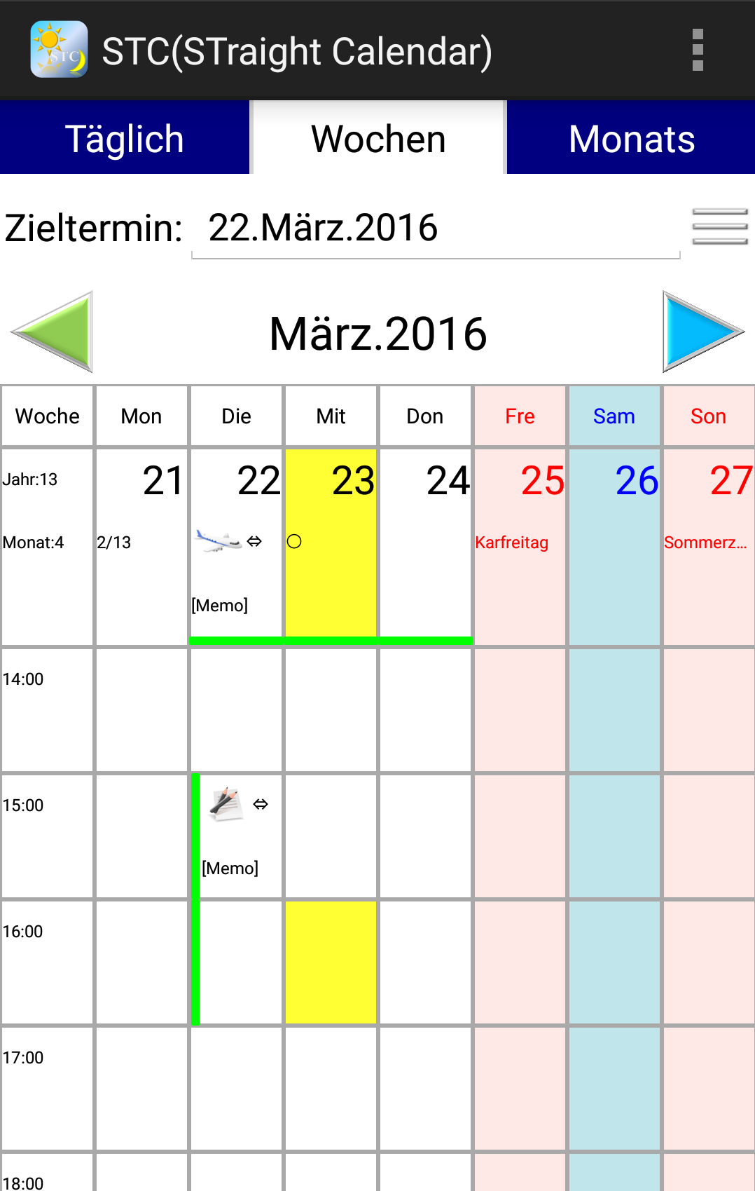 - Es entspricht dem Widget. (Um den Täglich Kalender anzuzeigen.)