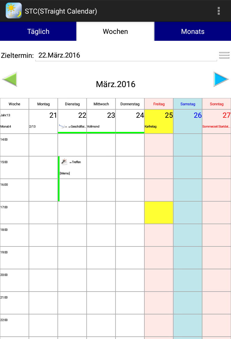 STC(STraight Calendar) (Paketname: com.straightcalendar) wird von AStIS entwickelt und die neueste Version von StraightCalendar 2.1.9 wurde am 15. September 2025 aktualisiert. StraightCalendar liegt in der Kategorie von Lifestyle mit der Funktion von Exchange. Sie können alle Apps von dem Entwickler der StraightCalendar durchsuchen und 197 alternative Apps zu StraightCalendar auf Android finden. Derzeit ist diese APP kostenlos. Diese App kann auf Android 5.0+ auf APKFab oder Google Play heruntergeladen werden. Alle APK/XAPK Dateien auf APKFab.com sind original und 100% sicher, schnell herunterzuladen.