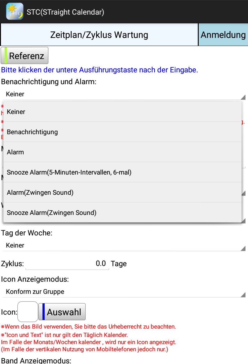 Um das Land/Region des Anzeigeziel zu ändern?, Um einen Snooze Alarm registrieren?, Um angeben ein Icon in den Zeitplan/Zyklus?,