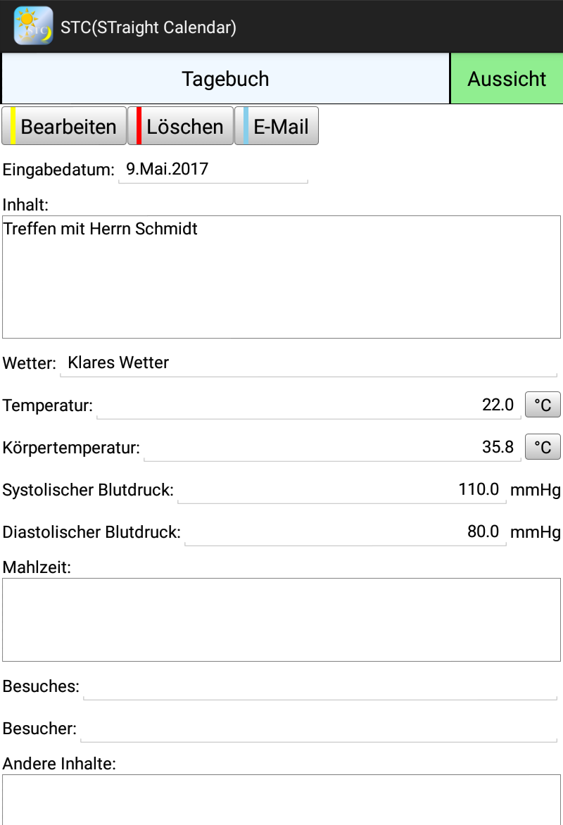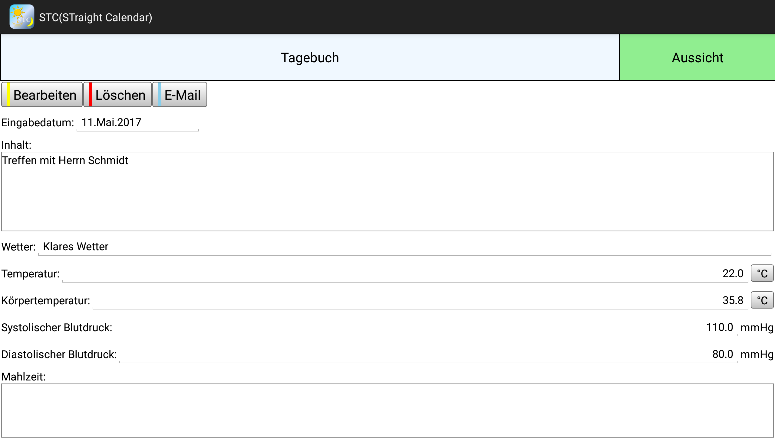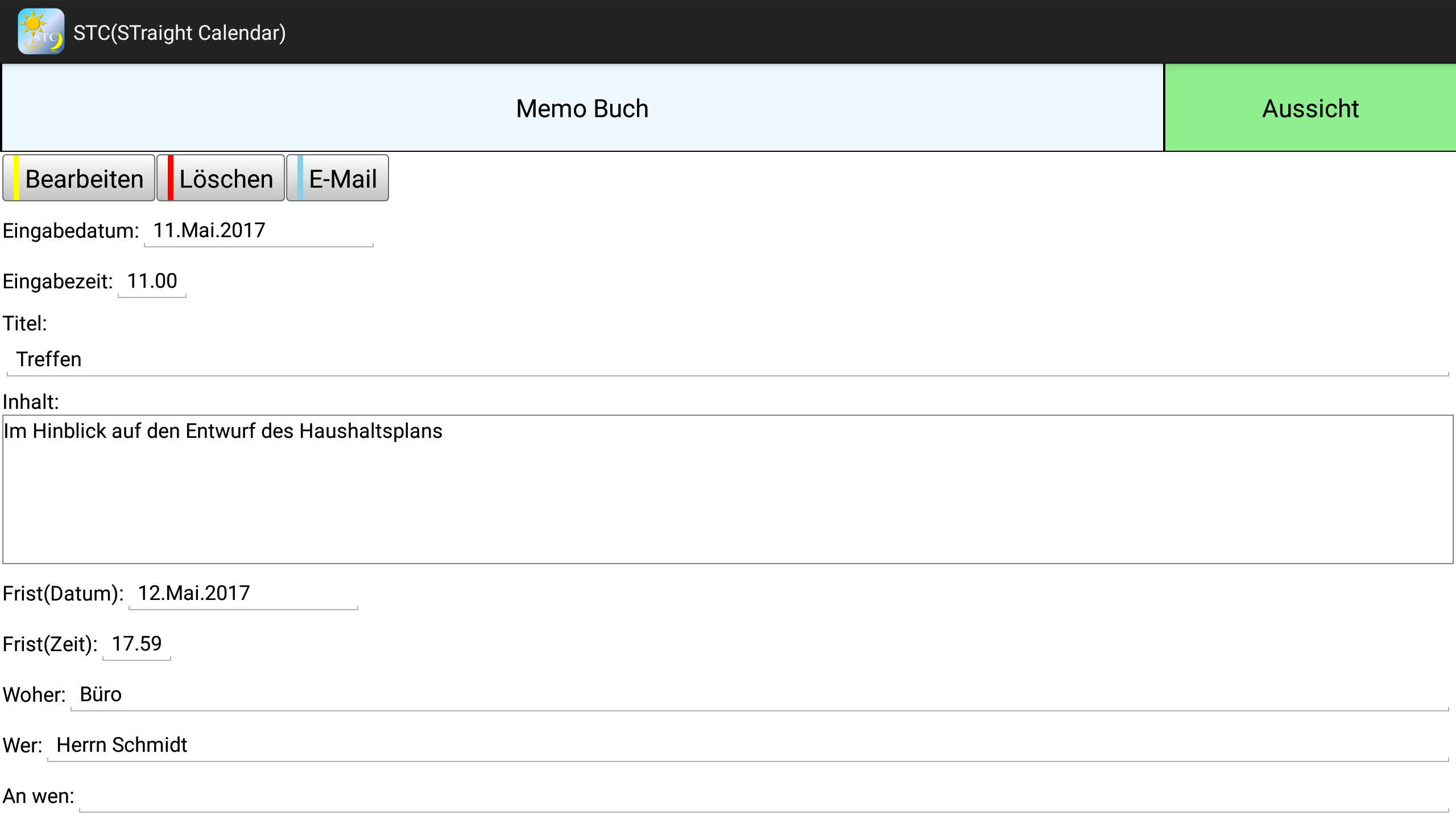 - Tagebuch und Memo (kann verwendet werden, wie ein ToDo) umfasst.