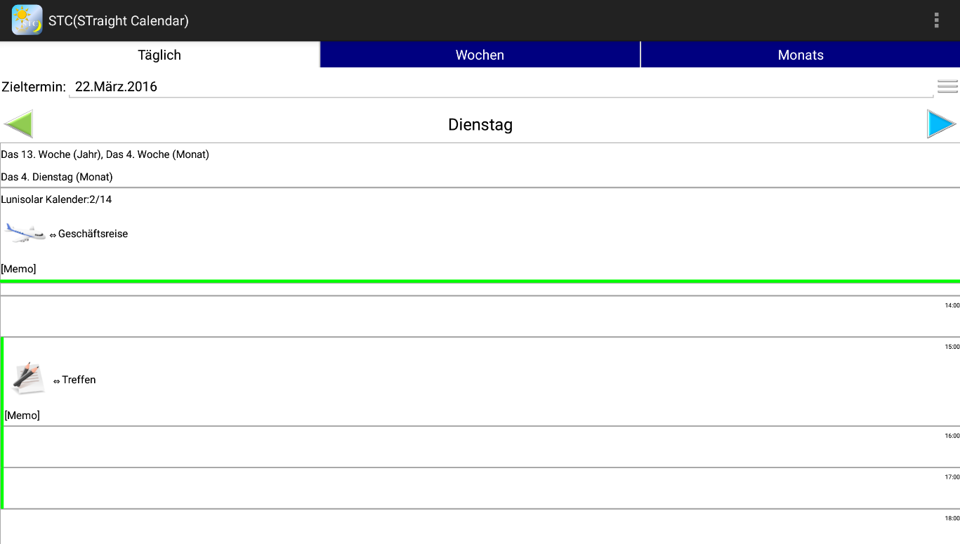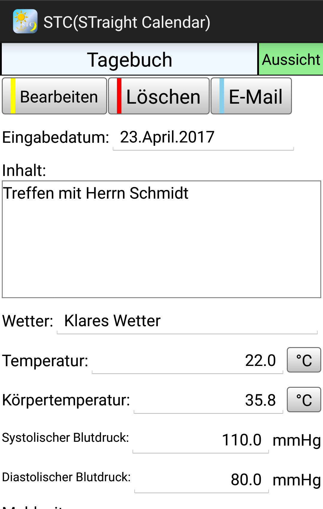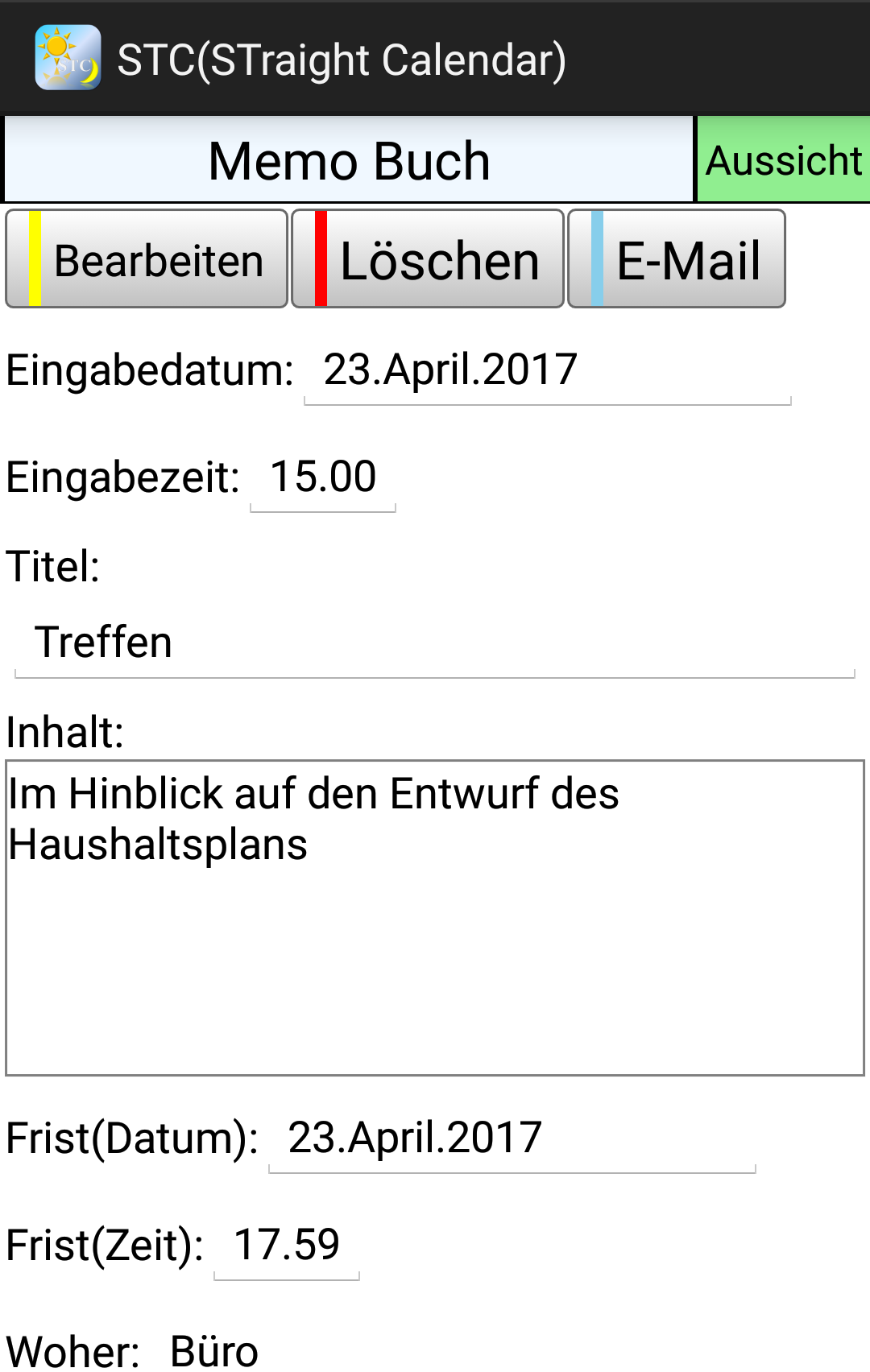 - Tagebuch und Memo (kann verwendet werden, wie ein ToDo) umfasst.