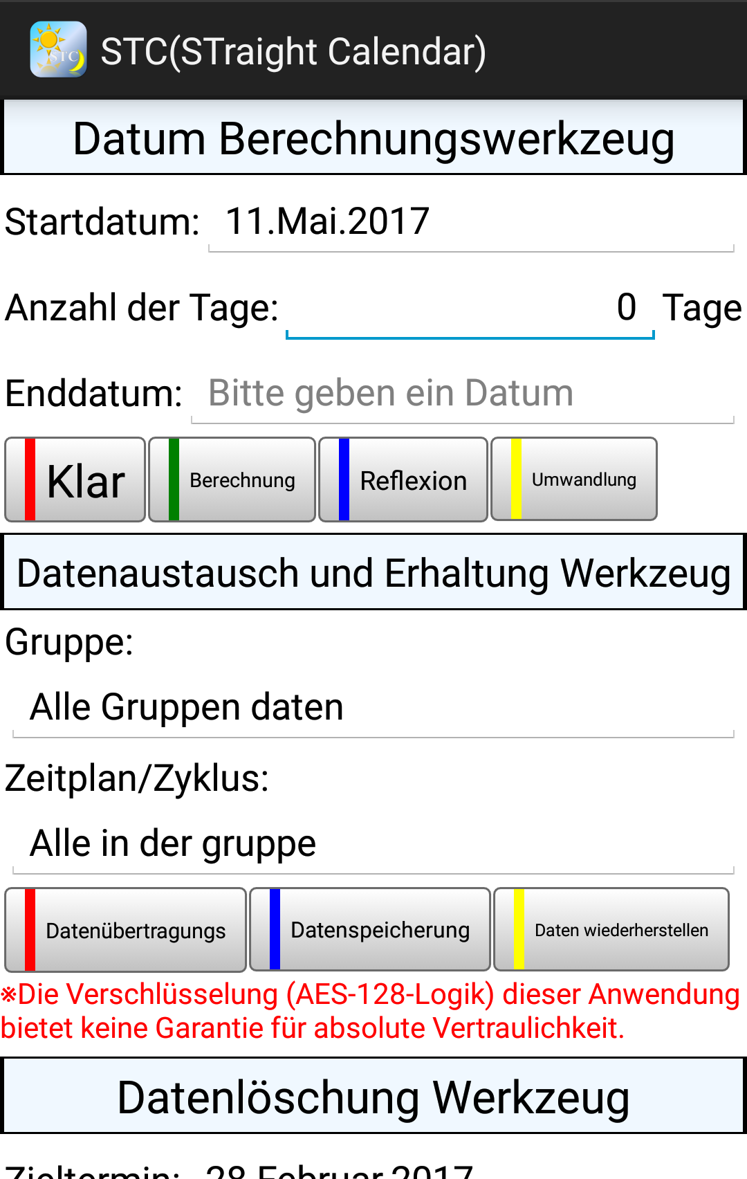 - Die Verschlüsselung (AES-128-Logik) dieser Anwendung bietet keine Garantie für absolute Vertraulichkeit.