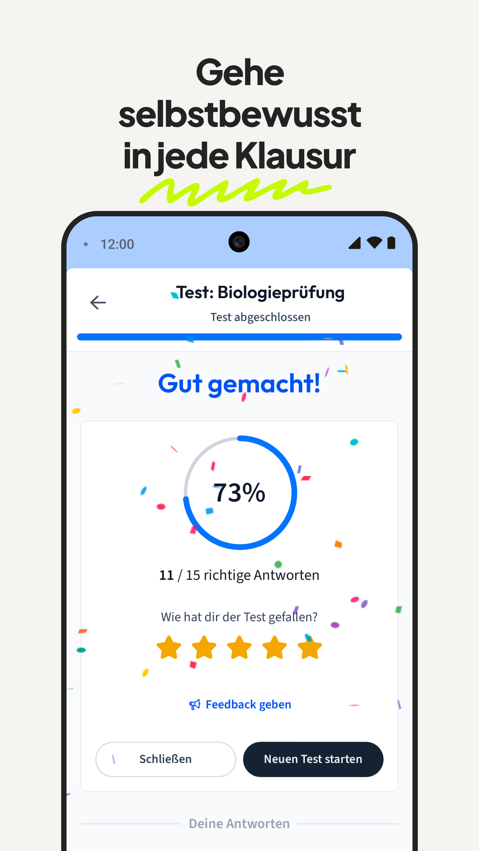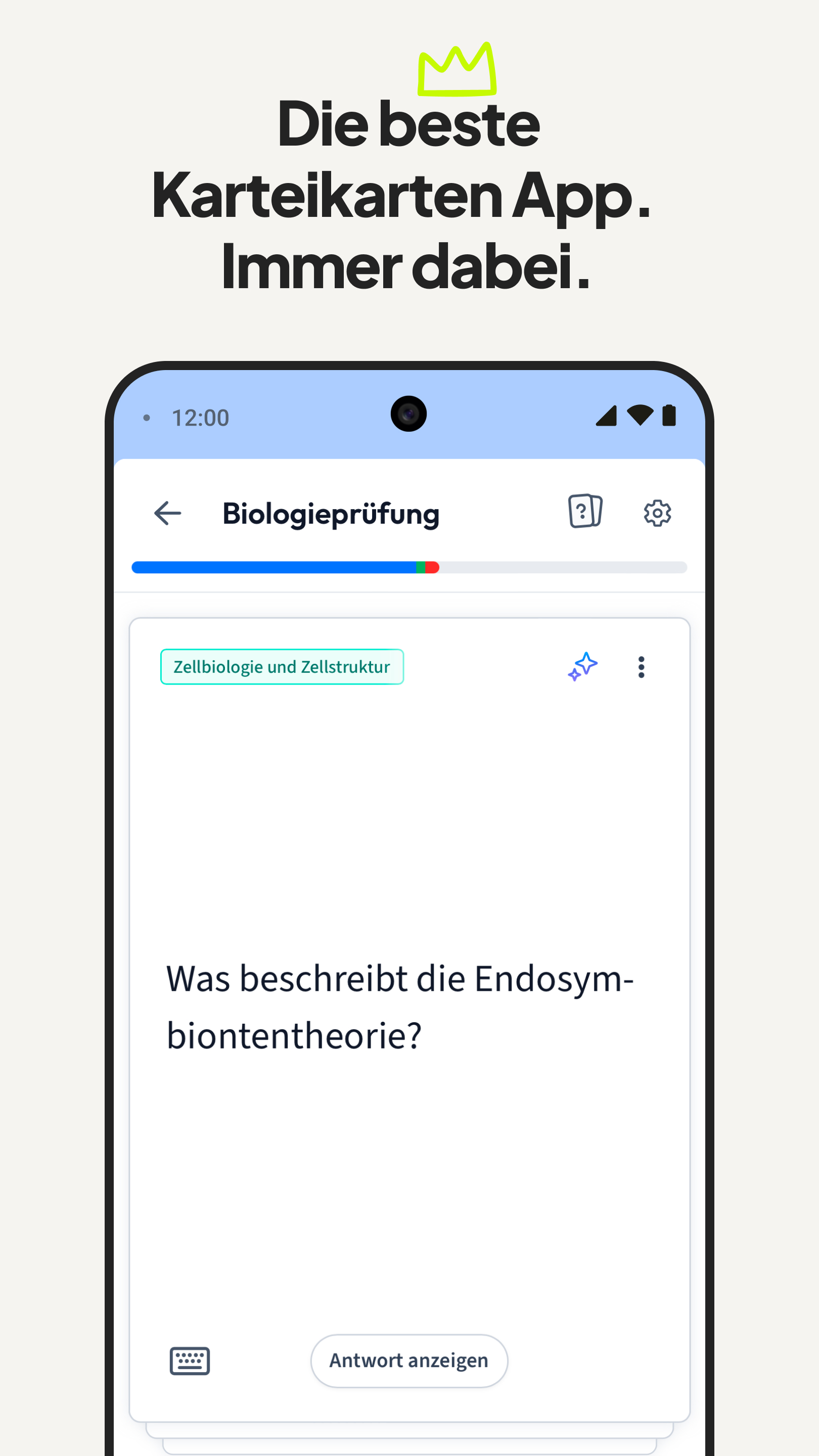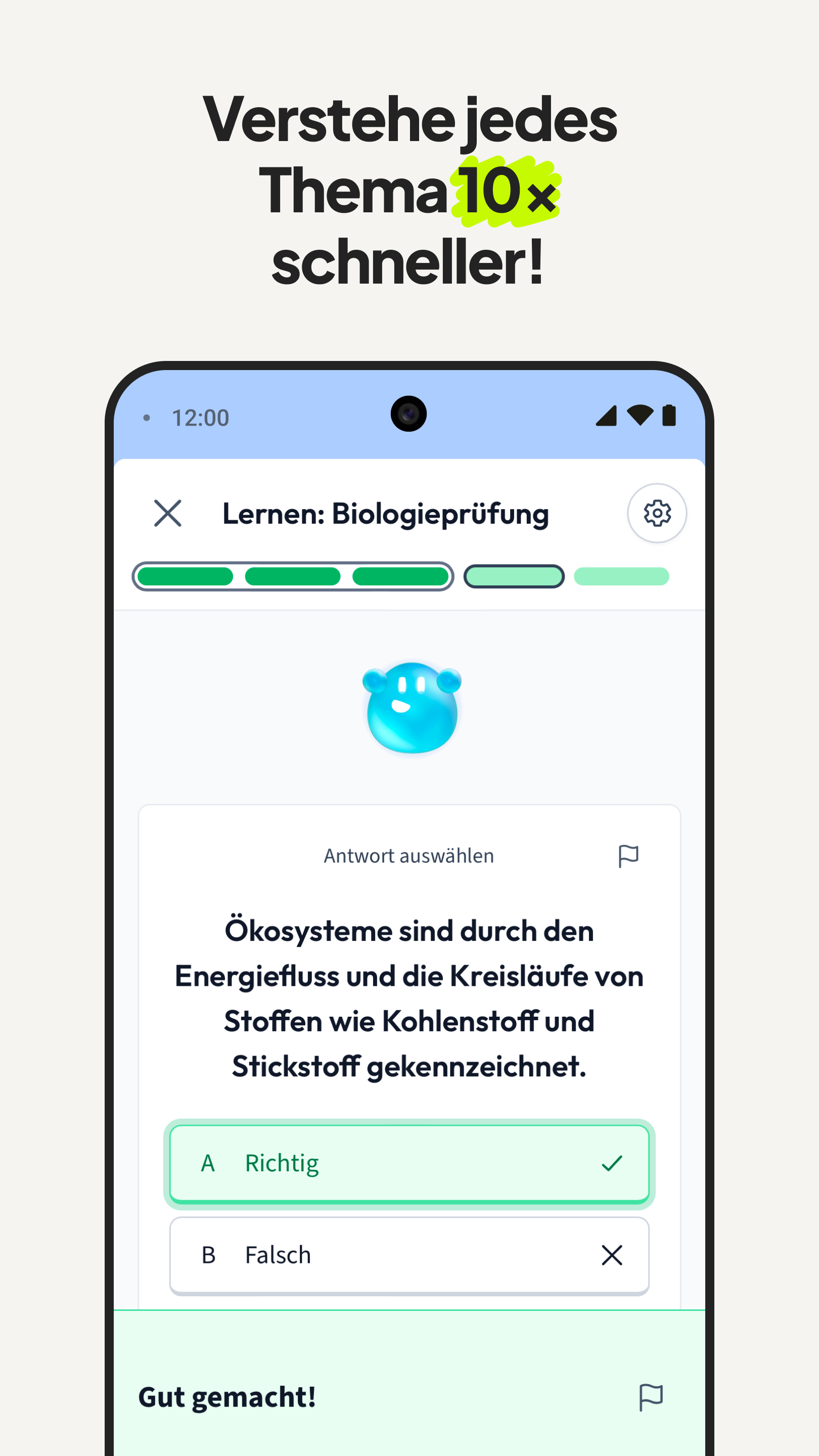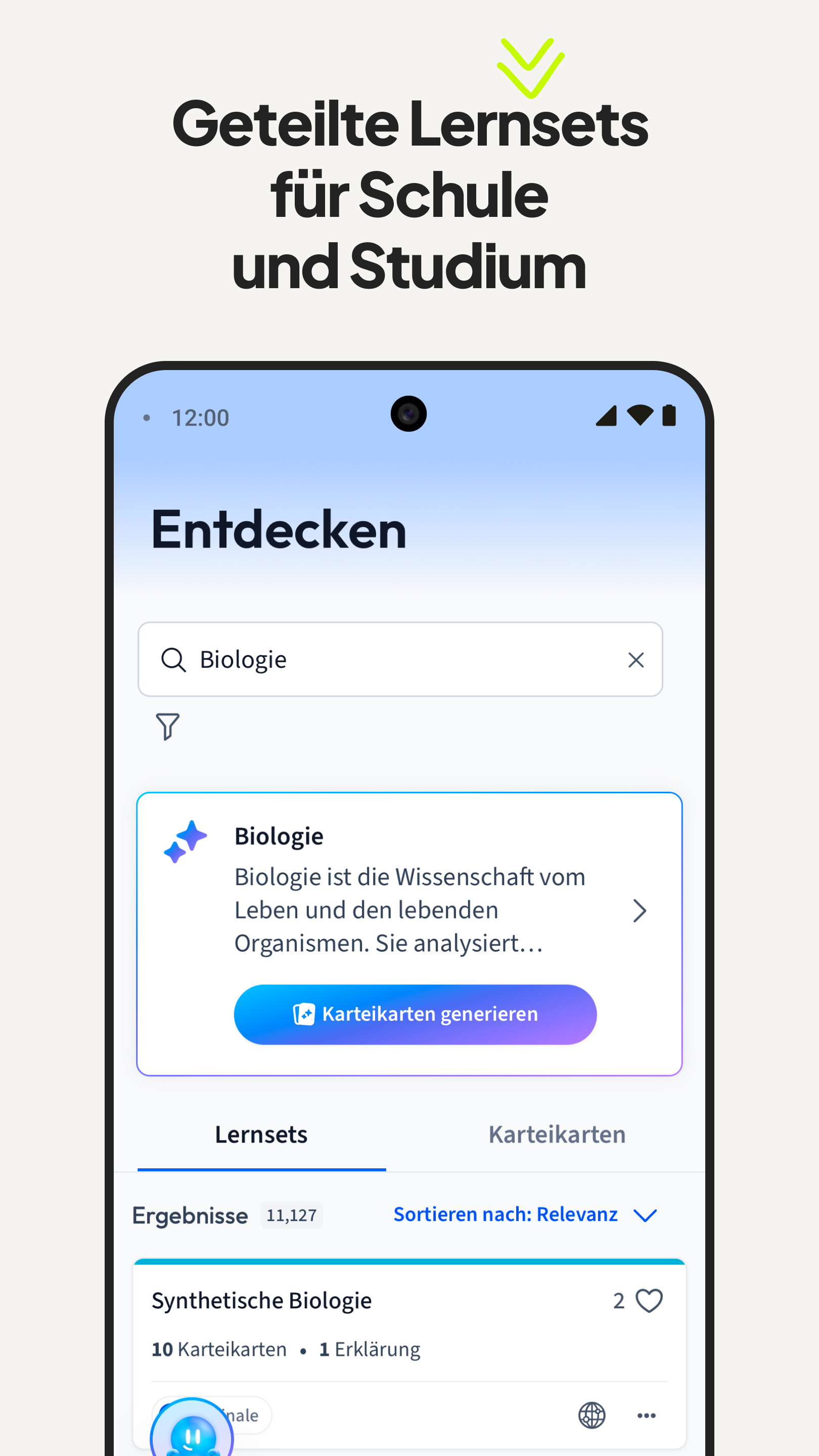 StudySmarter – Bessere Noten. Weniger Stress. Mehr Zeit im Alltag. Mit StudySmarter bekommst du bessere Noten und sparst dir jede Menge Zeit und Stress beim Lernen. Über 40 Millionen Schüler:innen & Studierende nutzen StudySmarter, um jedes Fach, jedes Thema und jede Prüfung zu meistern. 📚Für Schule & Uni 🌍 40 M+ Studierende und Schüler*innen weltweit 🚀 Note 1,0 mit StudySmarter easy Wie hilft dir StudySmarter? Endlich strukturiert und mit Plan lernen. Unsere Lernplan-Funktion hilft dir dabei! 👉 Stell dir Duolingo vor – nur für jedes Fach. Wir erstellen dir automatisch einen Lernplan für jedes Fach, damit du endlich strukturiert lernen kannst. Jeder Lernplan enthält Kapitel mit Erklärungen, Karteikarten, Quizze, Podcasts, und mehr! Wir führen dich durch den Stoff – zur richtigen Zeit, im richtigen Tempo, mit dem Ziel Bestnote. Zeit sparen mit personalisierten Lernmaterialien: Du lädst dein Skript, PDF oder deine Notizen hoch - unsere KI erstellt dir in Sekunden einen kompletten Kurs, inklusive: - Zusammenfassungen - Karteikarten - Probeklausuren - Übungen 👉 Skript rein. Lernmaterialien raus. Du sparst dir stundenlange Klausurvorbereitung. Verstehe alles in Rekordzeit und gehe selbstbewusst in jede Prüfung. Unsere smarten Lernmodi und wissenschaftlich erprobten Methoden wie Spaced Repetition helfen dir, Inhalte nachhaltig zu verstehen - in jedem Fach. Du verstehst mehr, verlierst nie den Überblick und schreibst bessere Noten. ✔️ Besseres Verständnis ✔️ Mehr Selbstbewusstsein in Prüfungen ✔️ Lernen ohne Last-Minute-Stress Und ja: Es macht sogar Spaß. ! Achtung: Suchtgefahr fürs Lernen.! Die #1 Karteikarten-App Keine Lust mehr auf Lernstress? Mit Karteikarten lernst du einfacher, schneller - und ohne Stress. Erstelle deine eigenen Karteikarten oder greife auf Millionen geteilte Lernkarten anderer Lernender zu. Egal: - wo - wann - welches Fach StudySmarter ist deine Karteikarten-App für alles. Millionen geteilte Lerninhalte – kostenlos Deine Kommilitonen sind schon dabei und teilen ihre Lernunterlagen. Greife auf Lernmaterialien zu, die Millionen Studierende und Schüler*innen erstellt haben: * Lernzettel * Karteikarten * Altklausuren * Zusammenfassungen * Und Und Und! 👉 Suchen. Finden. Lernen. Let’s go! So macht Lernen mehr Spaß. Spielerische Lernmodi, Abwechslung und klare Fortschritte sorgen dafür, dass du dranbleibst – sogar in der Prüfungsphase. Egal, ob Ja/Nein-Fragen, Lückentext, Multiple-Choice, …, mit unseren Lernmodi wird es dir garantiert nicht langweilig! Ja, auch das Lernen für Klausuren kann sich gut anfühlen. 😉 Für wen ist StudySmarter? ✔️ Für alle in der Uni – jedes Fach, jeder Abschluss ✔️ Für alle in der Schule ✔️ Für alle, die Sprachen lernen ✔️ Für alle, die wirklich etwas lernen möchten Schließ dich Millionen an, die schon smarter lernen! Deine Noten werden dir danken. Jetzt kostenlos starten! https://www.studysmarter.de/en/privacy/