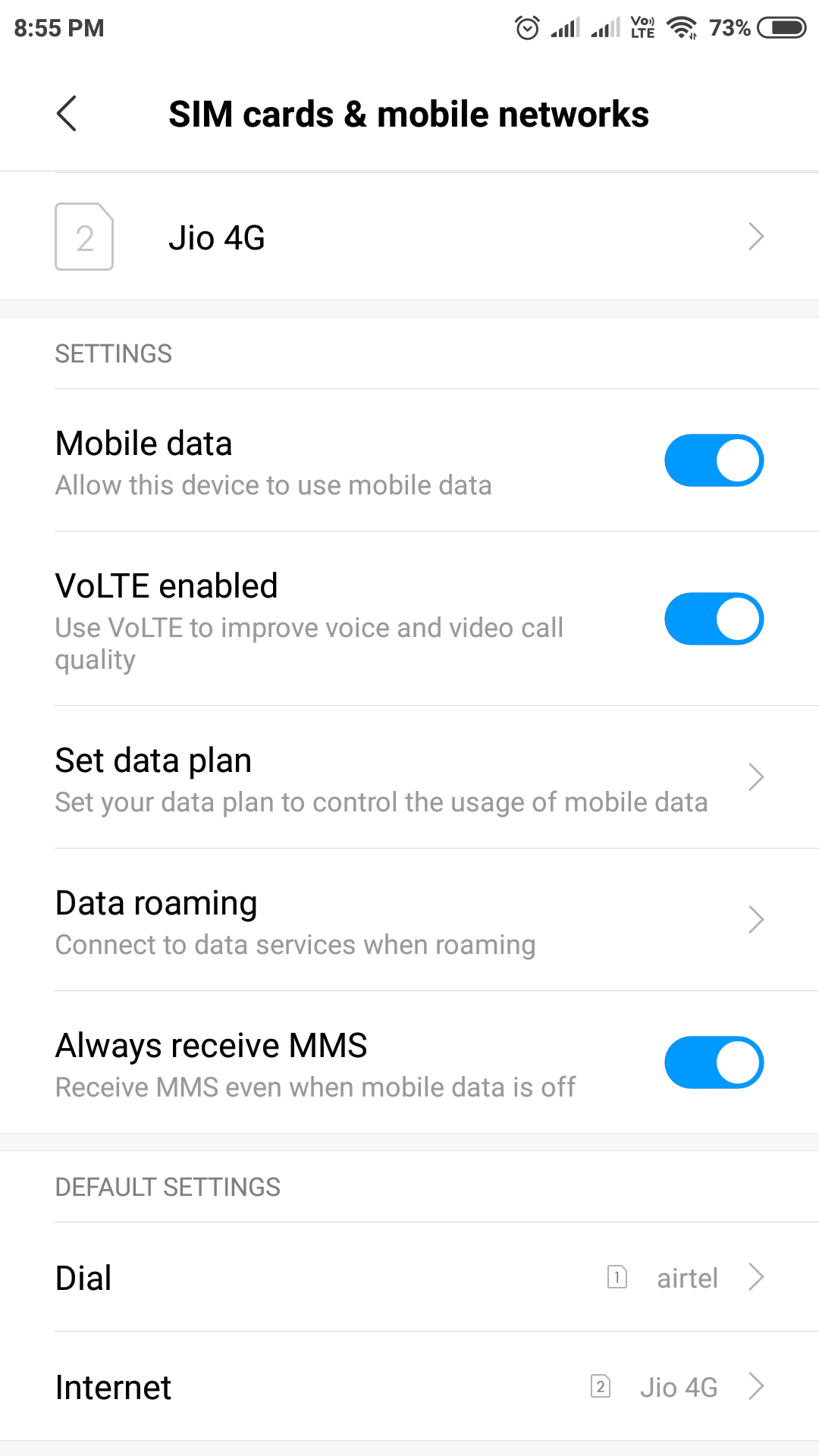 Switch Mobile Data and Roamin