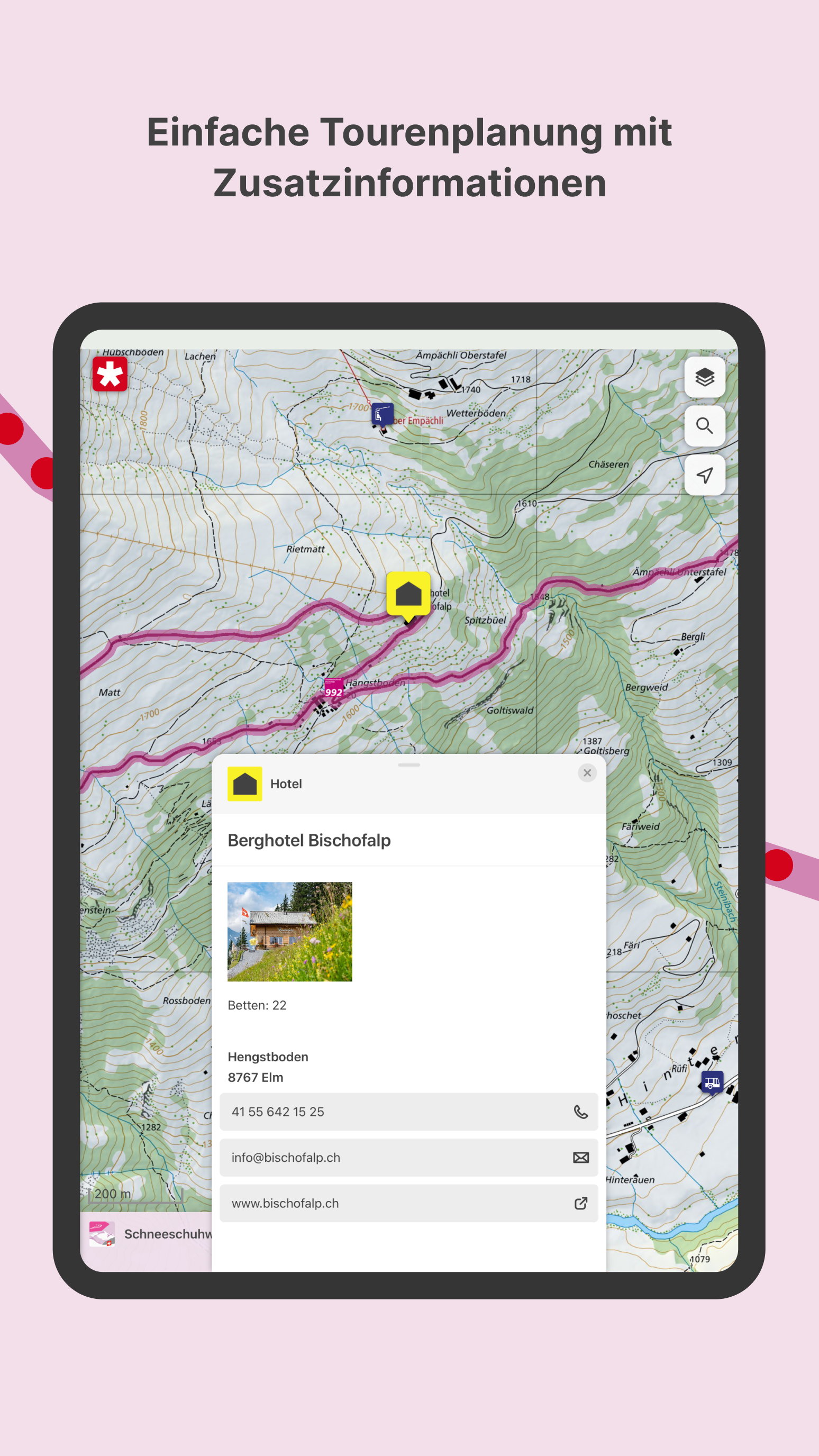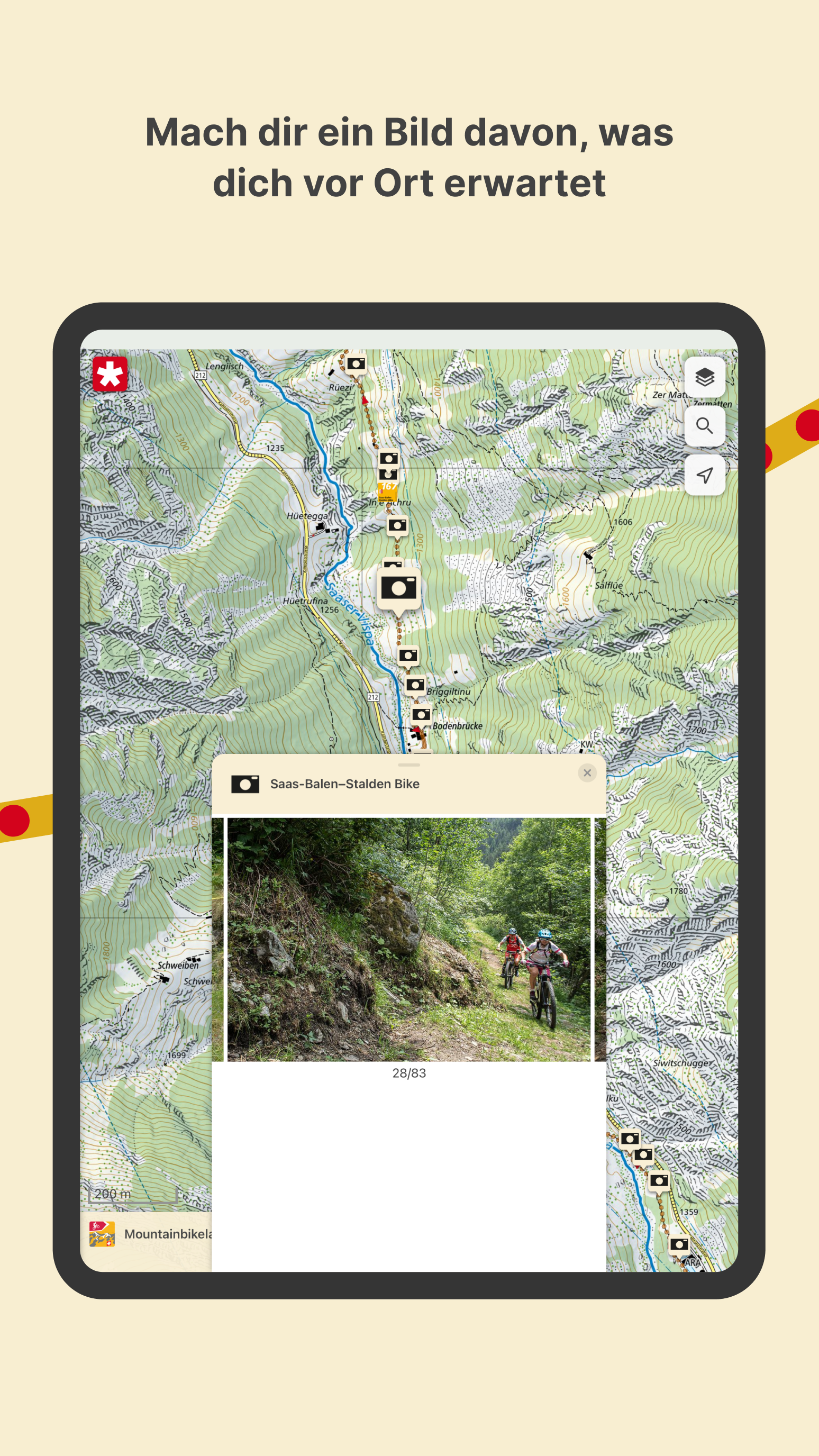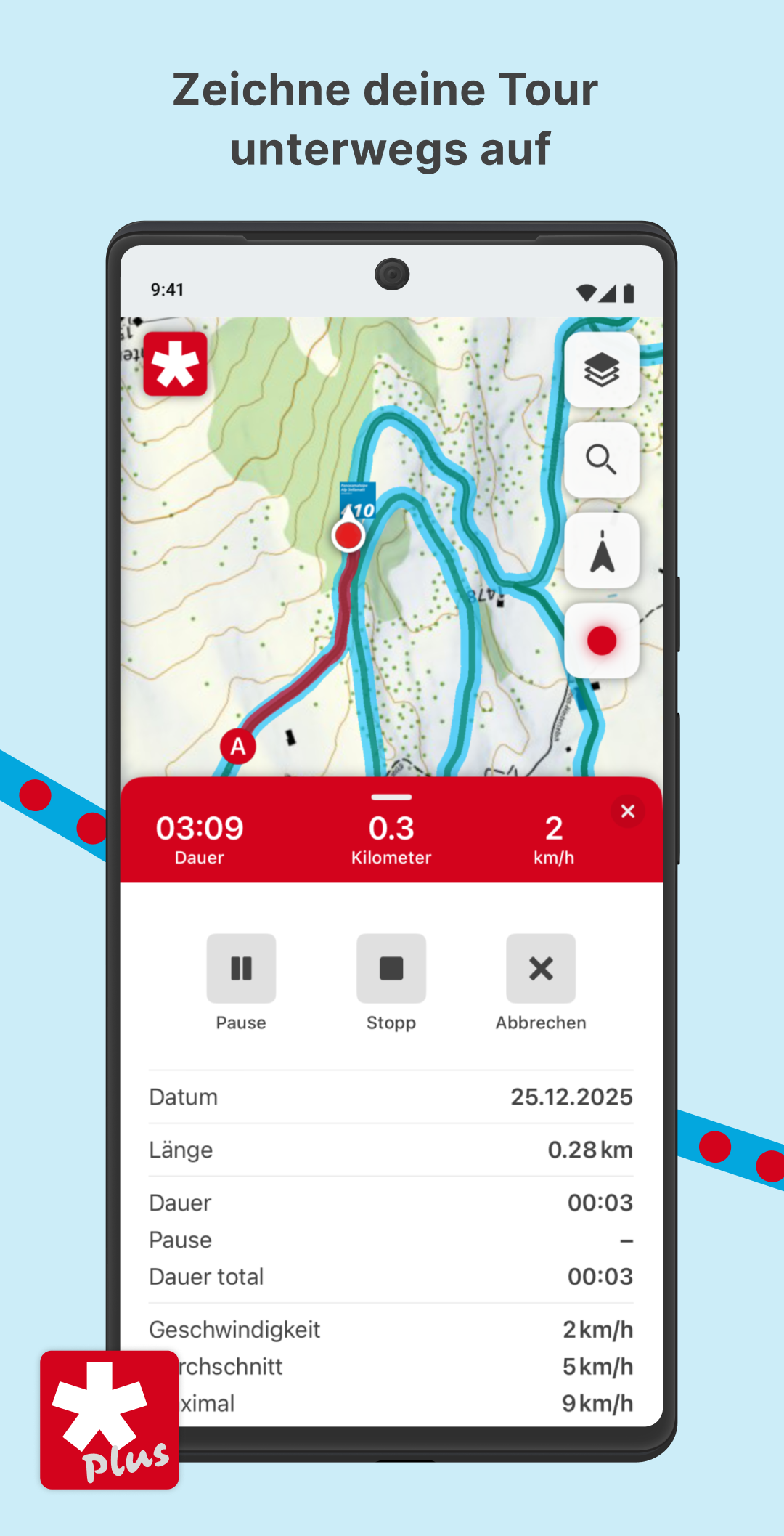 Die App SchweizMobil ist die perfekte Begleitung für alle, die gerne draussen unterwegs sind. Entdecke Routen, die zu dir passen, plane eigene Abenteuer und teile sie mit Freunden. Entdecke die schönsten Routen der Schweiz Lass dich inspirieren: Bei uns findest du 1500 ausgewählte Routen in der ganzen Schweiz und im Fürstentum Liechtenstein. Egal ob Wandern, Velofahren, Mountainbiken, Skating, Kanu oder Wintersport – unser Routennetz steht dir in höchster swisstopo- Kartenqualität zur Verfügung. Einfache Tourenplanung mit Zusatzinformation Sei immer top vorbereitet: Zu jeder SchweizMobil-Route findest du ausführliche Beschreibungen und Fotoreportagen. So kannst du dir ein Bild davon machen, was dich vor Ort erwartet. ÖV-Haltestellen inklusive nächster Abfahrtszeiten sowie Zusatzinfos zu Übernachtungen, Sehenswürdigkeiten, Orten, Velomiete und Veloservice-Stationen machen die Reisevorbereitung zum Kinderspiel. Unbeschwert unterwegs dank unserer Wegweisung Stets aus Kurs: Die SchweizMobil-Routen sind offiziell und vor Ort signalisiert. In der App findest du zudem aktuelle Wegsperrungen und Umleitungen – so bist du immer auf dem neusten Stand. Standortbestimmung und Kompass Nie mehr auf dem Holzweg: Dank der Standortbestimmung kannst du dir einfach anzeigen lassen, wo du dich auf der Karte befindest. Der integrierte Kompass richtet die Karte in Blickrichtung aus, damit du deiner geplanten Tour folgen kannst. Hab noch mehr Spass in der Natur! Mit SchweizMobil Plus profitierst du von praktischen Zusatzfunktionen (kostenpflichtig): Eigene Touren planen Mach’s passend für dich: Zeichne eigene Touren auf der Karte von swisstopo. Dabei werden die Distanz, Auf- und Abstiege, das Höhenprofil sowie die benötigte Zeit automatisch berechnet. Speichere deine Karten offline Geh mal offline: Du kannst beliebige Kartenausschnitte schon vor deiner Tour herunterladen. Die entsprechenden Karten und Routeninformationen stehen dir danach offline zur Verfügung - ideal für alpines Gelände ohne Netzempfang. Touren unterwegs aufzeichnen Tracke deinen Weg: Du kannst deine Tour in der App automatisch aufzeichnen lassen (Tracking-Funktion). Alle wichtigen Angaben wie Distanz, zurückgelegte Höhenmeter und die benötigte Zeit hast du so im Blick. Touren teilen und exportieren Teile deine Erlebnisse: Selbst gezeichnete Touren und aufgezeichnete Tracks kannst du mit anderen via Link teilen. Wer bei SchweizMobil-Plus registriert ist, kann deine Tour in die eigene Tourenliste importieren. Du kannst Touren auch als GPX-Datei exportieren und auf dein GPS-Gerät oder die Smartwatch übertragen. Erfahre mehr zu den Vorteilen und Zusatzfunktionen von SchweizMobil Plus: www.schweizmobil.ch/de/schweizmobil-plus