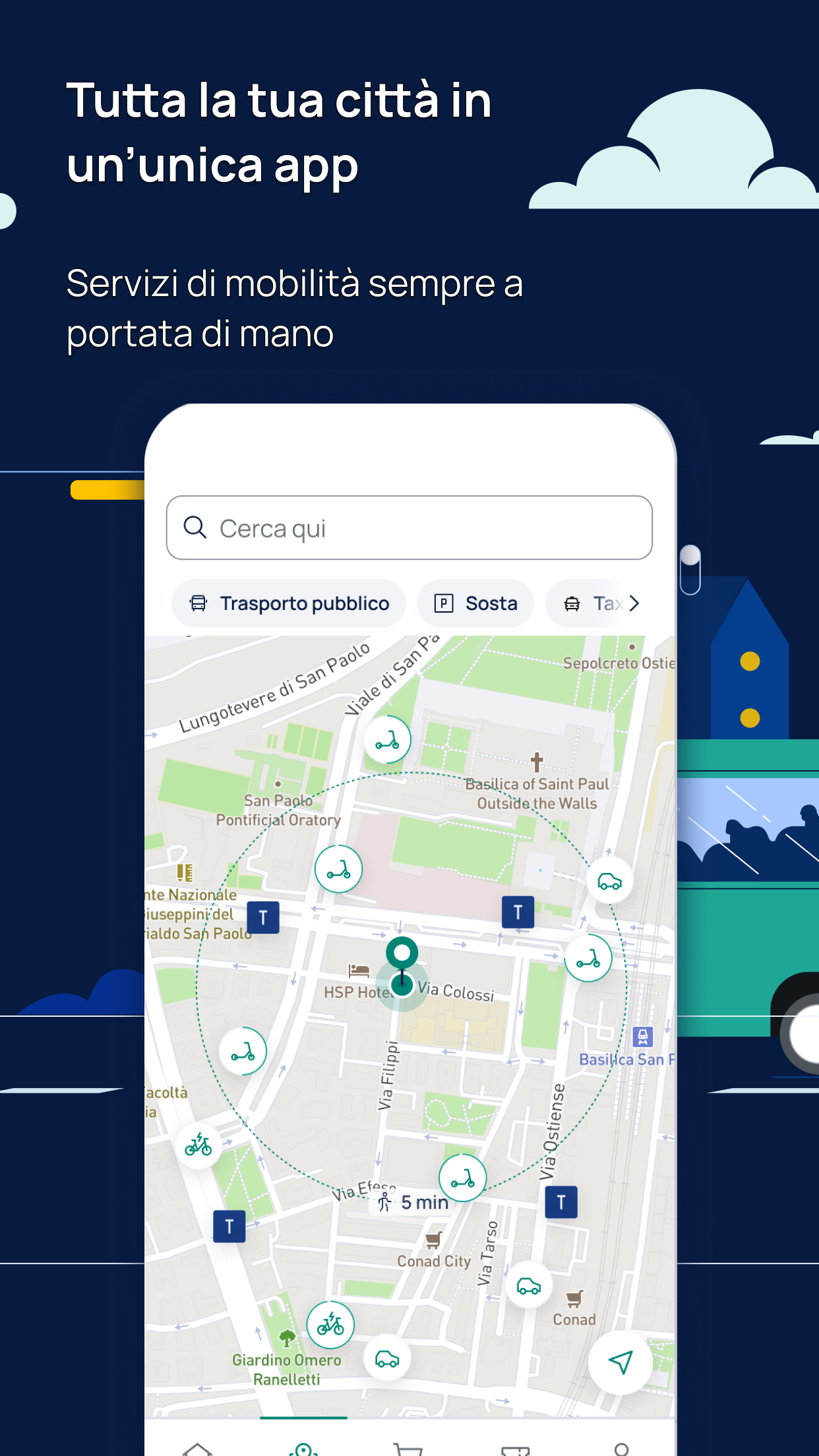 Mit TABNET können Sie Bus-, U-Bahn- und Zugtickets kaufen, Parkgebühren bezahlen und Taxis oder Mitfahrgelegenheiten buchen – alles über eine einzige, sichere und kostenlose App. Laden Sie Ihr digitales Guthaben ganz einfach auf – sogar bar. Sie können Ihr digitales Guthaben gebührenfrei direkt in einer Tabakwarenhandlung mit Ihrer Karte, Debitkarte, Ihrem Portemonnaie oder Bargeld aufladen. Transport, Parken, Reisen. Ganz unkompliziert. Kaufen Sie Fahrkarten für den öffentlichen Nahverkehr, finden Sie die beste Reiselösung und verwalten Sie Ihr Parken auf blauen Parkplätzen intelligent: Starten, pausieren oder beenden Sie Ihre Fahrt, wann immer Sie möchten – ganz ohne Papiertickets. Offizieller Partner führender Mobilitätsanbieter. TABNET integriert die Dienste von ATAC (Rom), GTT (Turin), Cotral, Trenitalia, ARST, ATAM, Autolinee Toscane (Florenz), FAL und Ferrotramviaria (Bari) sowie weiterer lokaler Anbieter. Die Tickets sind gültig, aktuell und werden in allen bedienten Städten anerkannt. Sichere Zahlungen und eine zertifizierte App. Jede Transaktion ist geschützt, nachvollziehbar und entspricht den Sicherheits- und Datenschutzstandards. Nachhaltige Mobilität mit dem MaaS-Projekt. Mobility as a Service (MaaS) ermöglicht den Zugriff auf verschiedene öffentliche und private Transportdienste über eine einzige Plattform. TABNET beteiligt sich an der Pilotphase in den Städten Bari, Florenz, Rom und Turin sowie in den Regionen Abruzzen und Piemont. Dort werden Anreize, Cashback und Eintrittsboni angeboten, um die Nutzung öffentlicher Verkehrsmittel und Carsharing-Angebote zu fördern. Neue Erlebnisse dank der Partnerschaft mit Tiqets. Mit TABNET können Sie Tickets für Museen, Sehenswürdigkeiten und kulturelle Veranstaltungen direkt in der App kaufen – ganz ohne Anstehen oder Ausdrucken. Laden Sie TABNET herunter und entdecken Sie Ihre Stadt einfacher, smarter und nachhaltiger.