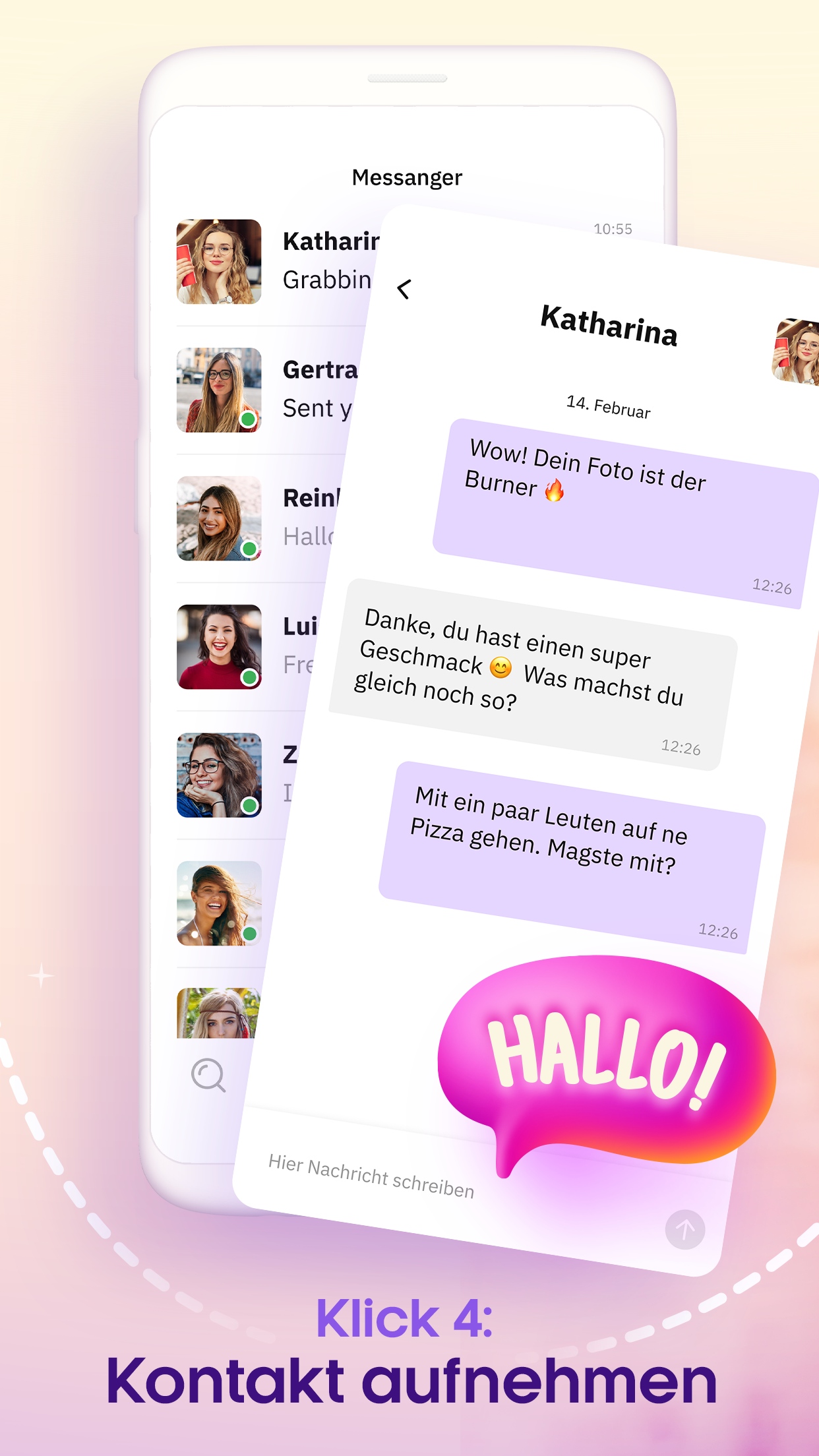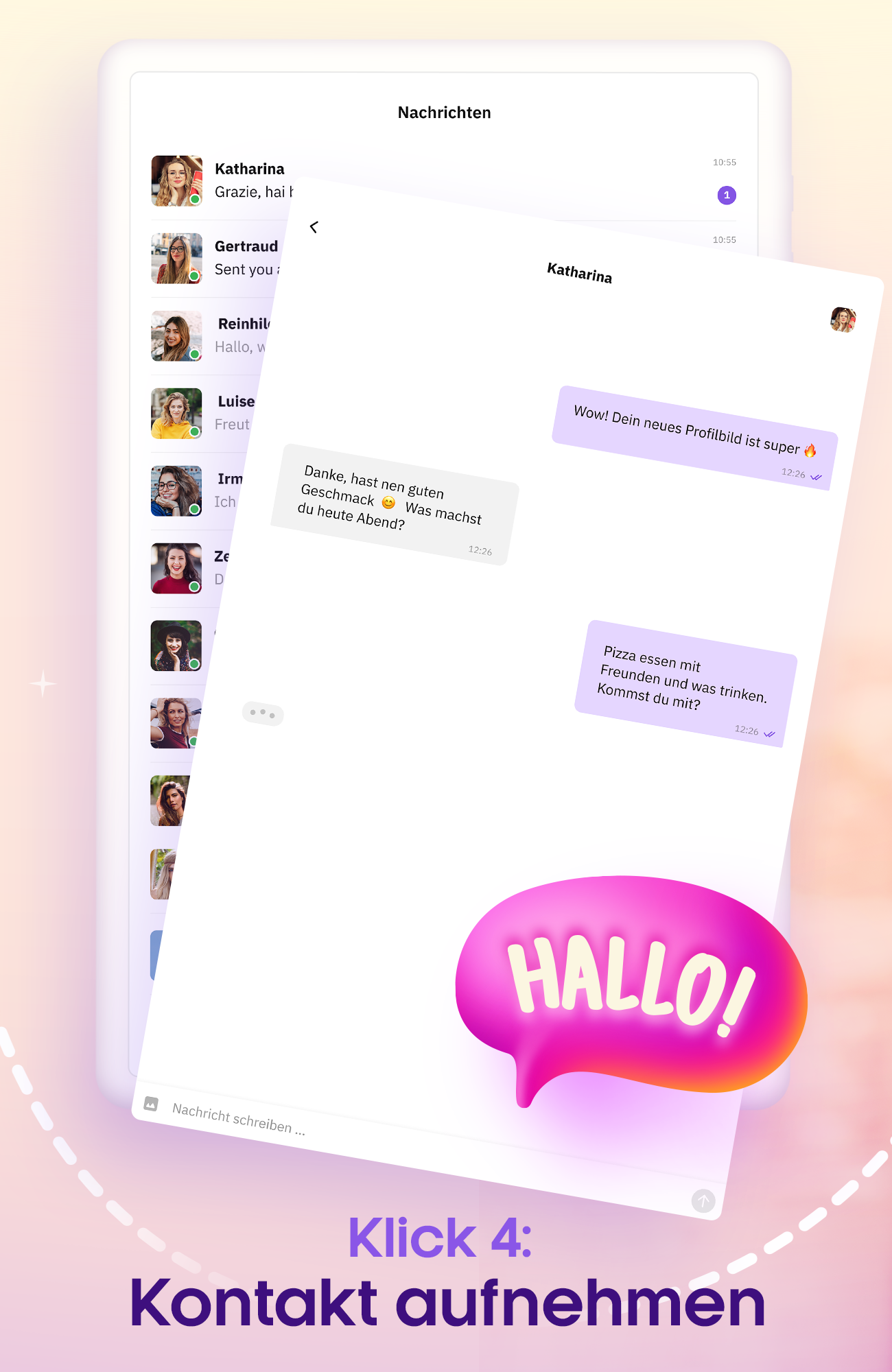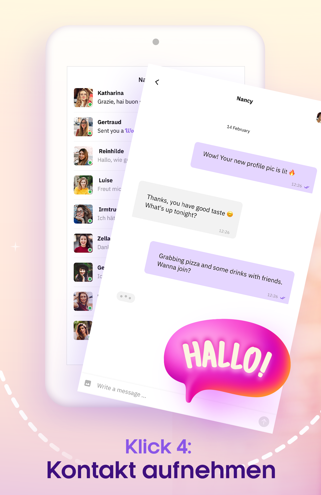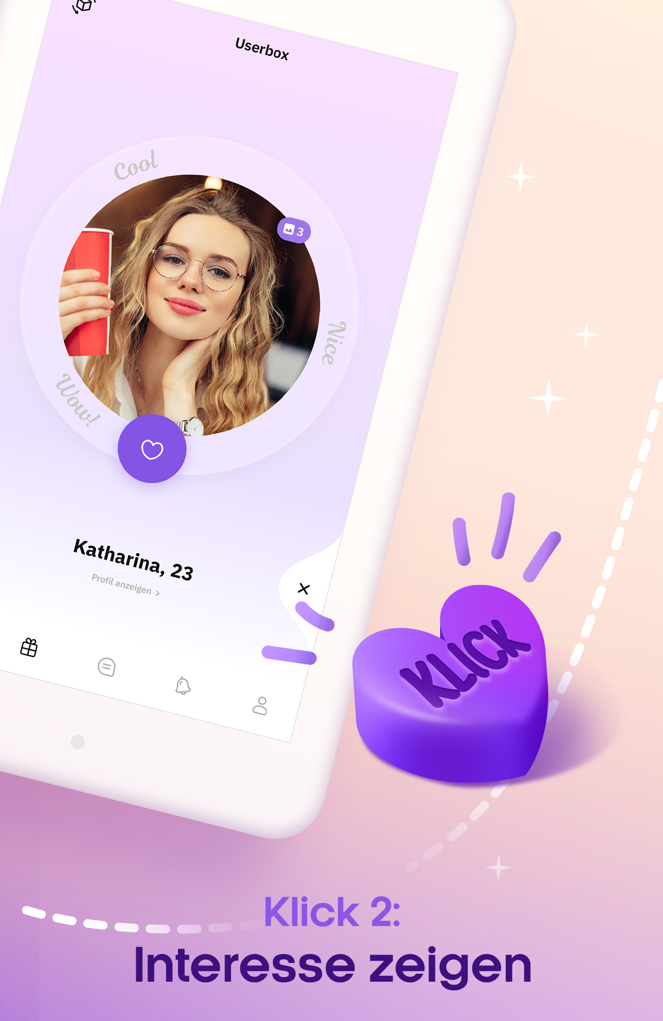 Ihre neue Liebe ist nur ein Fingertippen entfernt! Lernen Sie neue Menschen kennen, finden Sie die perfekte Partnerin oder den perfekten Partner und beginnen Sie eine neue Beziehung mit einem Menschen auf gleicher Wellenlänge. Entdecken Sie mit TapToDate die Welt des Online-Datings! ❤️TapToDate ist der Ort, an dem Sie Verabredungen, Freunde oder Partner fürs Leben finden. Alles, was Sie tun müssen, um Kontakt mit Singles aus Ihrer Gegend zu bekommen: sich die App herunterladen und kostenlos anmelden. TapToDate ist anders als meiste soziale Netzwerke. Hier können Sie im echten Leben testen, ob eine neue Liebe wirklich Zukunft hat. Zuerst können Nutzer ganz im Handumdrehen in Chatrooms mitmischen und Profile durchstöbern, um neue Leute kennenzulernen und mit ihnen zu chatten. Sobald sie sich besser kennen, können sie ihre frische Beziehung im echten Leben weiter ausbauen, indem sie an ihrem Wohnort ein romantisches Treffen vereinbaren. ❤️Bei TapToDate bekommt jeder seine Chance: Ob Sie heterosexuell, schwul oder lesbisch sind, hier finden Sie Ihren Partner (Dating-Möglichkeiten für die gesamte LGBTQ-Community). Einige Männer wollen Frauen kennenlernen, die schon etwas älter sind. Deshalb bietet TapToDate auch eine Online-Partnersuche für reifere Erwachsene an. Natürlich gibt es viele kostenlose Dating-Sites, die ähnliche Dienstleistungen anbieten. Eine kostenlose Dating-App mit so vielen Funktionen, wie TapToDate Sie bietet, werden Sie allerdings nicht finden. Mit Hilfe von Suchfiltern können Sie blitzschnell genau die Personen nach Ihrem Geschmack finden. Geben Sie einfach ein Suchwort wie 'Fitness-Singles' ein, und die Suchergebnisse zeigen Ihnen alle sportbegeisterten Partner aus Ihrer Nähe an. Außerdem stehen Ihnen wahlweise anonyme Chats, Live-Chats und Zufalls-Chats zur Verfügung. Hier wird Flirten zum Kinderspiel, auch wenn Sie keine Übung mit Internetkontakten und dem Online-Dating haben. TapToDate hat sich verschiedene Liebesspielchen für seine Community ausgedacht, um das App-Erlebnis noch spannender zu gestalten. ❤️TapToDate bietet viele Möglichkeiten, damit hier alle ihre romantische Seite zeigen können. Beschreiben Sie so ausführlich wie möglich, wie Sie leben und welche Vorlieben Sie haben, und beenden Sie Ihre Texte am besten mit einer Aufforderung, z.B. "Verabrede dich mit mir!" oder etwas Kreativem, um Ihren potenziellen Partnern zu zeigen, dass Sie offen für neue Kontakte und Begegnungen sind. ❤️TapToDate unterscheidet sich von anderen Social-Media-Apps und Dating-Websites durch seine drei besonderen Power-Likes: Nice, Cool und Wow. Damit können Sie noch leichter Ihre Sympathien ausdrücken. Wählen Sie die Art von Single, die Ihnen vorschwebt. Sie entscheiden, wie Ihre potenzielle Partnerin aussehen soll. Das ist für kostenlose Online-Dating-Plattformen eine echte Besonderheit. Wenn Sie eine Chat-App suchen, um Online-Dating gratis auszuprobieren, ist TapToDate für Sie ideal. Neben einem freundlichen lila-rosa Design bieten wir coole Funktionen und Tools, mit denen Singles schnell und einfach flirten und neue Leute kennenlernen. Vergeuden Sie auf der Suche nach dem Partner nicht länger Ihre Zeit mit kostenlosen Dating-Plattformen, die nichts bringen. Kommen Sie zu TapToDate und erreichen Sie mit uns Ihre Ziele 10-mal schneller!