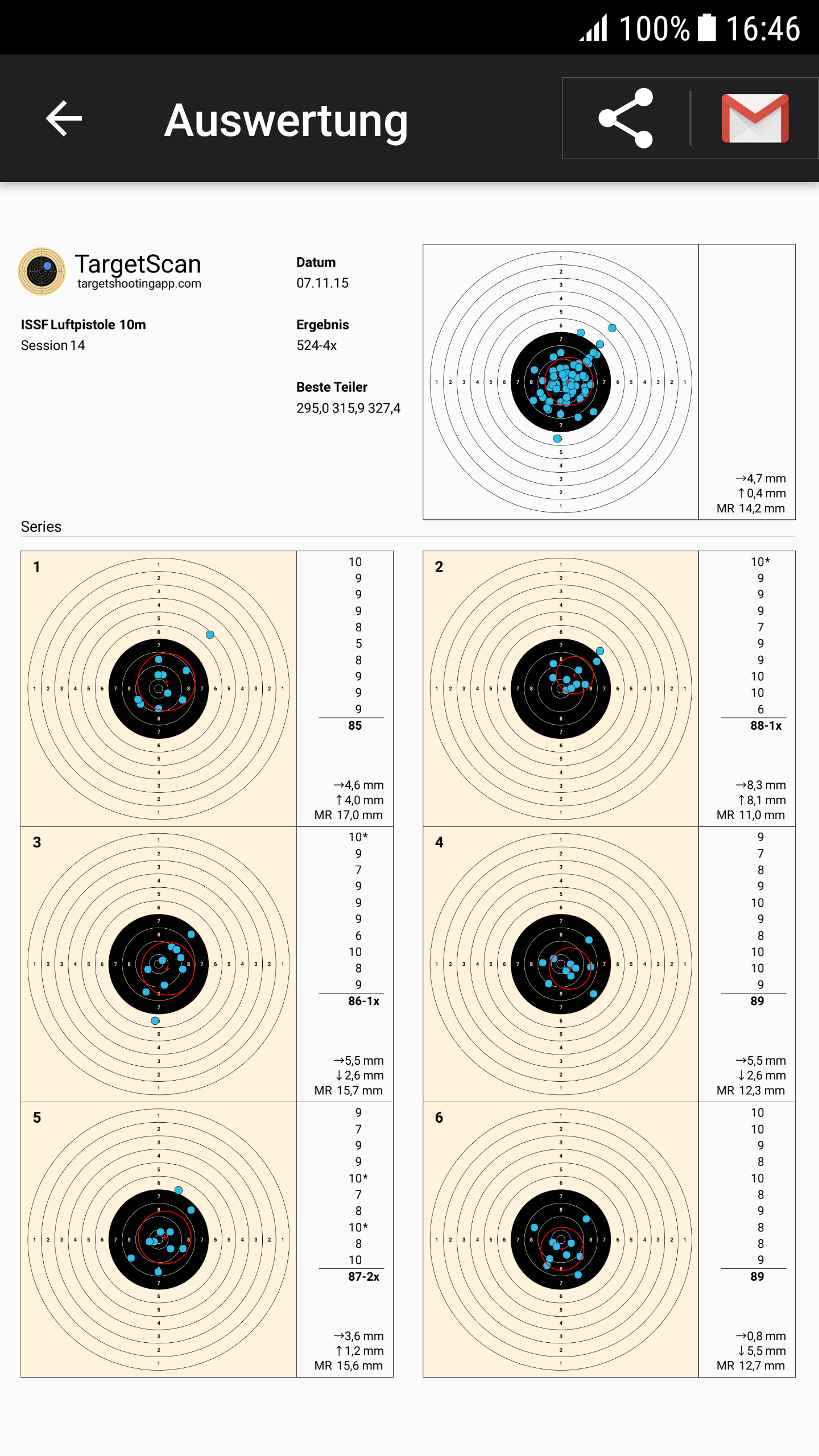 • Summary Target Plot showing all shots in the session