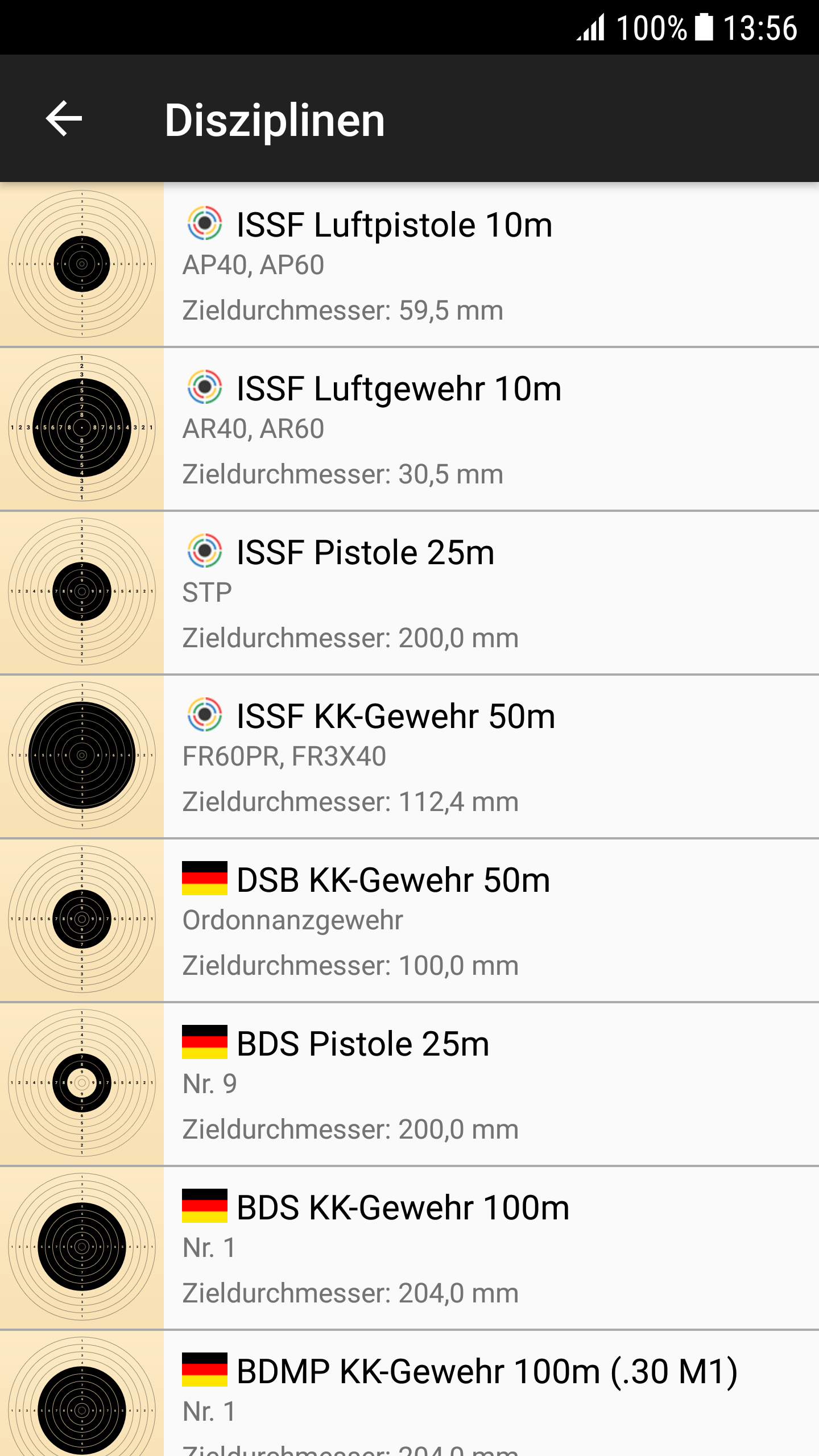 - BDS 100m Rifle (Nr. 1, Nr. 5 ISSF)