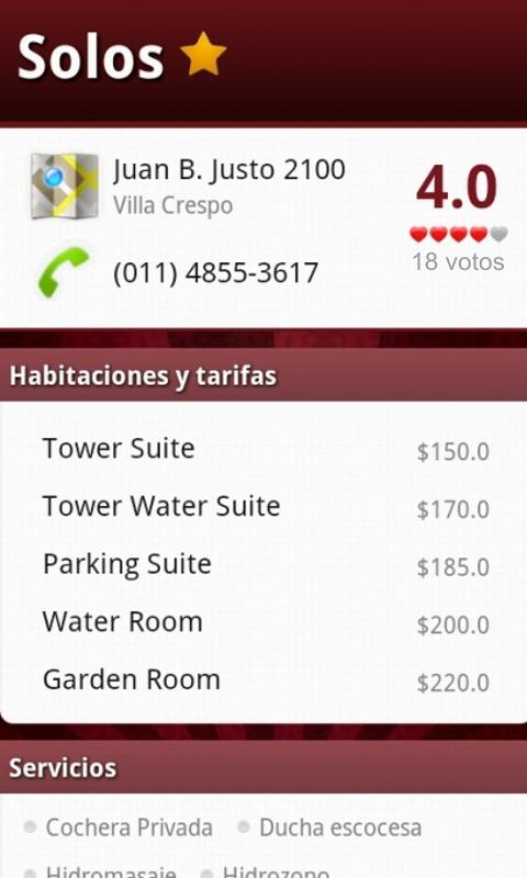 The first motels' social community for your mobile device in Argentina. Find the nearest motels using geolocation services and view them in a totally interactive map. Get all the detailed information of each motel and compare its reviews and ratings among different users. Save your favourite motels so that they're always handy. Manage and edit all your profile information safely at any time.
