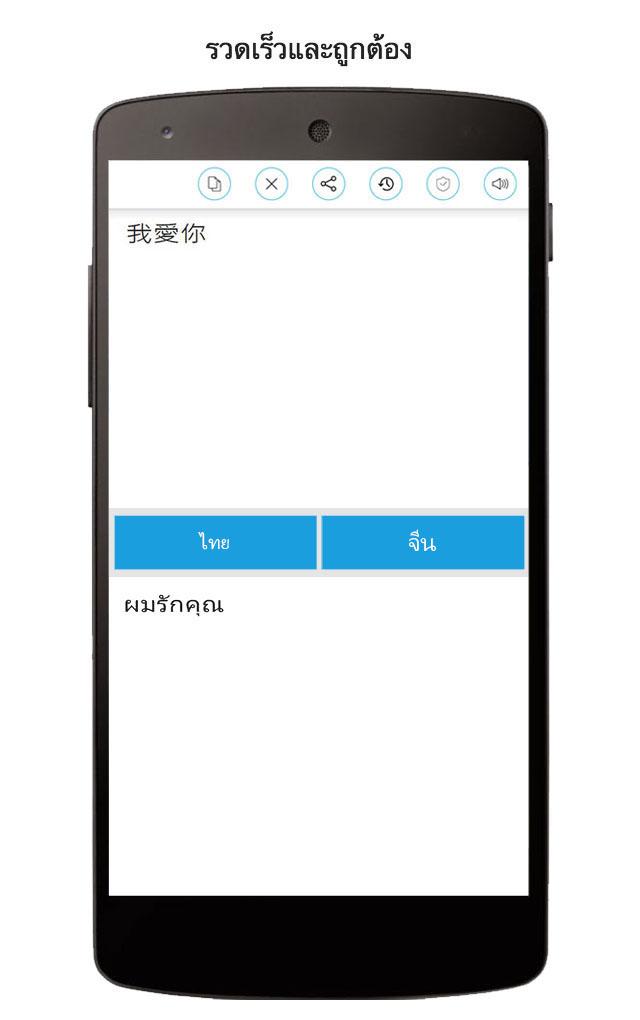 Thai Chinese Translator. Chinese Thai Translator. Text to Speech. Audio Feature. Can be used as a Dictionary. Offline access for translated words, text and sentences. Social Media - Easily share with Friends and Family. Easy to use translator.