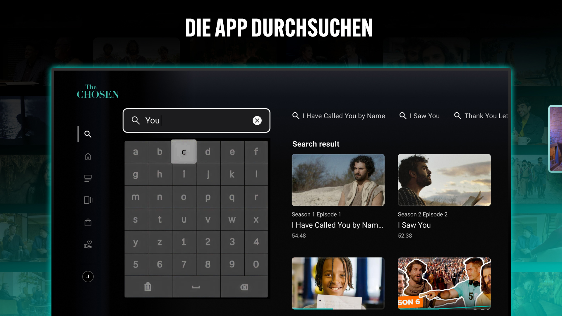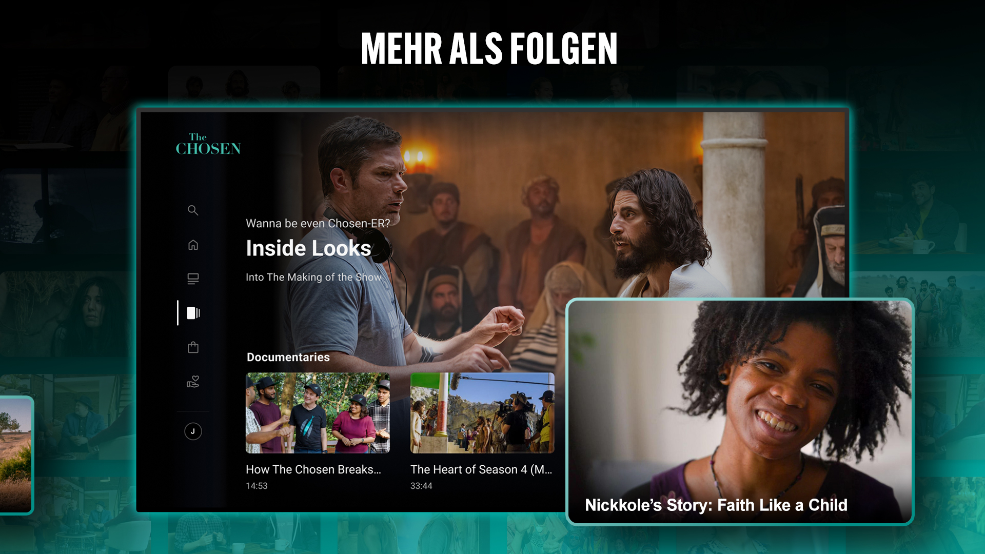 Kommen Sie und sehen Sie die Serie, die Millionen weltweit erreicht hat. Ein dreckiges mehrsaisonales Drama über das Leben Jesu durch die Augen derer, die Ihn am besten kannten. Im Israel des ersten Jahrhunderts unter römischer Herrschaft gelegen, bietet das Gewählte eine intime, authentischer Blick auf Seinen Dienst, Wunder und das Volk für immer durch Seine Gegenwart verändert. Beobachte jetzt alle Jahreszeiten. 100% werbefrei, mit Nullunterbrechungen. Kein Konto erforderlich. Was Sie an der App lieben: Global langauge support Genießen Sie die App in 197 Sprachen mit der Sendung durch Untertitel oder Audio in 135 übersetzt alles entworfen, um Sprache und Inhalte perfekt in synchronisieren App-exklusive Bonusinhalte Aftershows, Bibel-Rundtische, hinter den Kulissen Extras, und mehr Cross-Device Ansicht abholen wo Sie aufgehört haben auf jedem Gerät Accessibility-forward Design Plattformübergreifende Screenreader-Unterstützung, besser Kontrast und intuitive Navigation Mächtige Suche nach Folgen, Zeichen oder Themen 100% werbefreier Stream mit Null-Unterbrechungen Keine Abonnements. No paywalls. Just the story brought to life, beautiful, made to you by Come and See.
