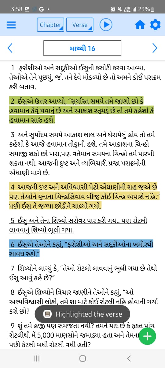 -Menüs, um auf die hervorgehobenen, mit Lesezeichen versehenen Verse zu verweisen.