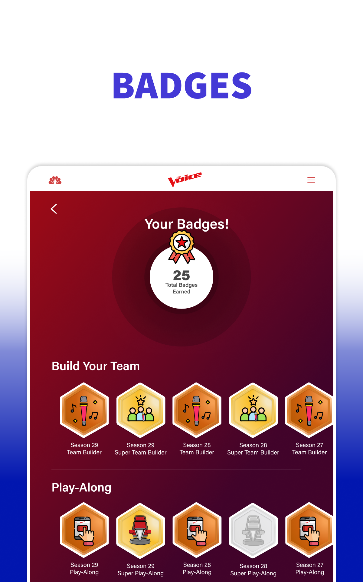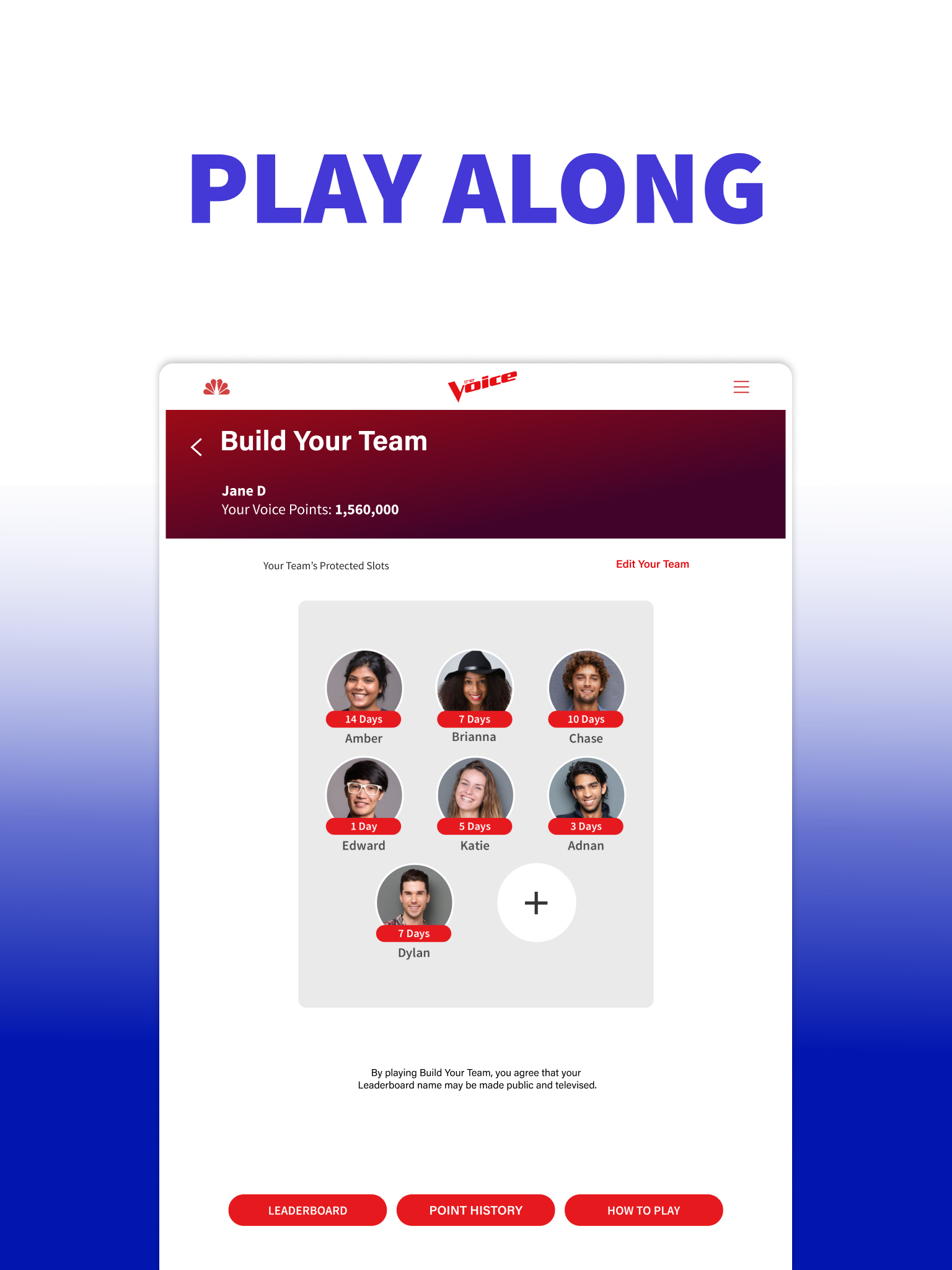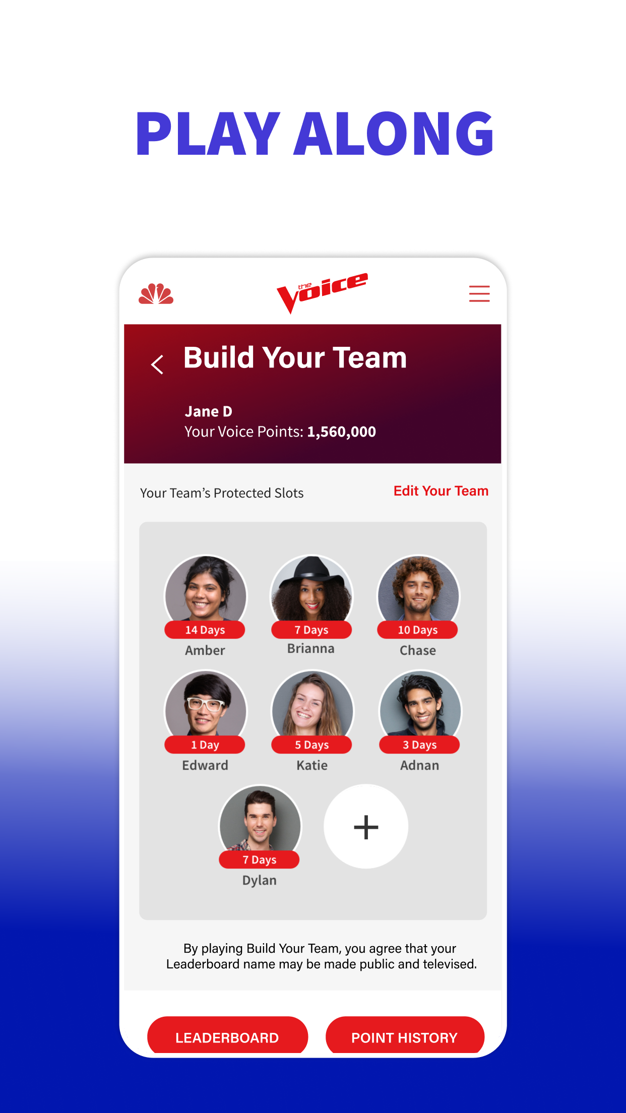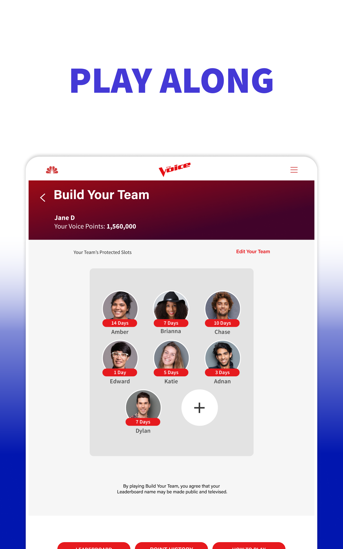 Glaubst du, du hast das Zeug dazu? Werde selbst Coach und erlebe die Live-Auftritte bei The Voice! Es ist ein völlig neues Spiel. Die Erfolgscoaches Adam Levine, Kelly Clarkson und John Legend sind zurück, um in einer mitreißenden Staffel voller spannender Wendungen, Publikumslieblingen und spektakulärer Performances unglaubliche Talente zu entdecken. Werde Teil des Teams, das neue Superstars entdeckt und fördert. Verfolge den Wettbewerb und stelle dein Traumteam aus Künstlern zusammen. Messe dich mit anderen Fans, indem du Quizfragen zu The Voice beantwortest und an Umfragen teilnimmst, um Punkte zu sammeln. Sieh dir deine Punktzahl in der Rangliste an und verfolge den Fortschritt deines Teams im Laufe der Staffel! Erlebe die Castings und Auftritte live mit den Erfolgscoaches Adam Levine, Kelly Clarkson und John Legend und ihren Mentoren auf der Suche nach Amerikas besten neuen Talenten. Besuche die Instagram-, Facebook- und TikTok-Seiten deiner Lieblingskünstler. Sing mit und fühl dich wie ein Coach in der Emmy-prämierten Gesangsshow von NBC! Lade dir jetzt die offizielle The Voice App herunter und schau NBC, um dein Fantasy-Team zusammenzustellen. THE VOICE LIVE IM FERNSEHEN AUF NBC • Schau live zu, während die Show läuft! Sieh dir nach jeder Folge Videoclips der Auftritte deiner Lieblingskünstler an. STELL DEIN TEAM ZUSAMMEN • Wähle deine Lieblingskünstler und stelle dein eigenes Fantasy-Team zusammen. Starte mit 12 Künstlern und verbessere dein Team im Laufe der Staffel – genau wie die Coaches. • Sammle Punkte, wenn deine Künstler im Wettbewerb weiterkommen. • Sammle Abzeichen, wenn du im Laufe der Staffel Meilensteine erreichst. • Beantworte Quizfragen richtig und nimm an Umfragen teil, um weitere Punkte zu erhalten. • SPIEL MIT! Sieh dir die Rangliste an und vergleiche dich mit Spielern aus dem ganzen Land. VERBINDE DICH MIT DEN COACHES UND KÜNSTLERN VON THE VOICE • Verbinde dich direkt über die App mit deinen Lieblingskünstlern. • Folge den Künstlern in den sozialen Medien. • Lerne deine Lieblingskünstler anhand von Profilen mit Biografien und Videoclips kennen. HINWEIS: Wenn auf deinem Gerät ein älteres Android-Betriebssystem als Version 10 installiert ist, aktualisiere es bitte, bevor du die offizielle „The Voice“-App verwendest. Bei Problemen schließe die App bitte vollständig, starte dein Gerät neu und öffne anschließend die offizielle „The Voice“-App erneut. Sollten die Probleme weiterhin bestehen, kannst du uns hier kontaktieren: https://www.nbc.com. Das Video ist über 3G, 4G, LTE und WLAN verfügbar. Es können Datengebühren anfallen. • Datenschutzrichtlinie: https://www.nbcuniversal.com/privacy?intake=NBC_Entertainment • Deine Datenschutzoptionen: https://www.nbcuniversal.com/privacy/notrtoo?intake=NBC_Entertainment • Hinweis für Kalifornien: https://www.nbcuniversalprivacy.com/privacy/california-consumer-privacy-act?intake=NBC_Entertainment