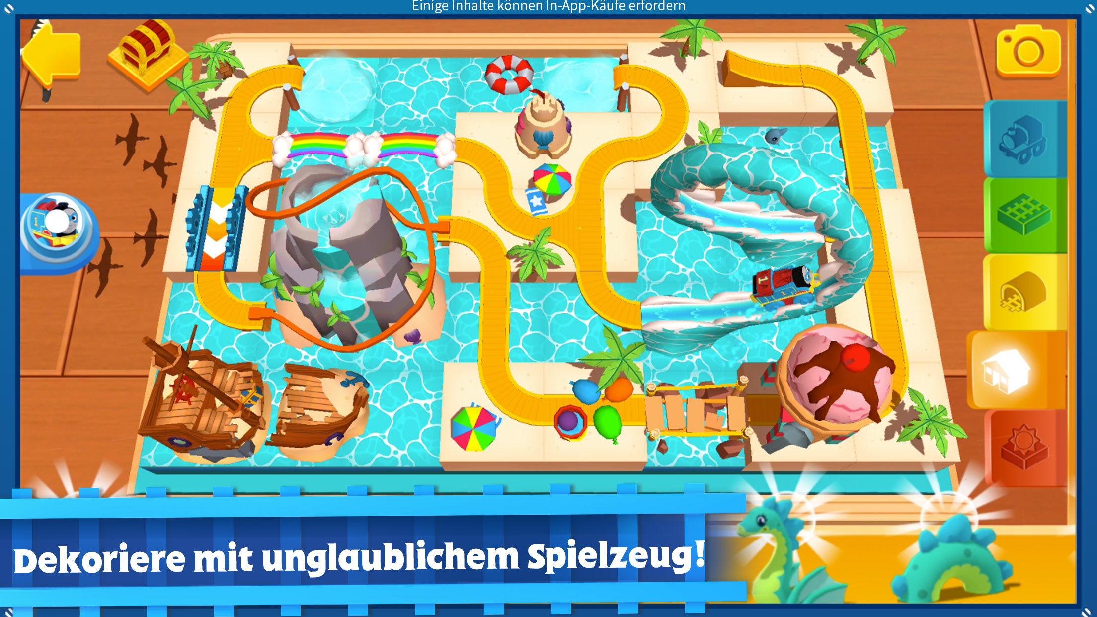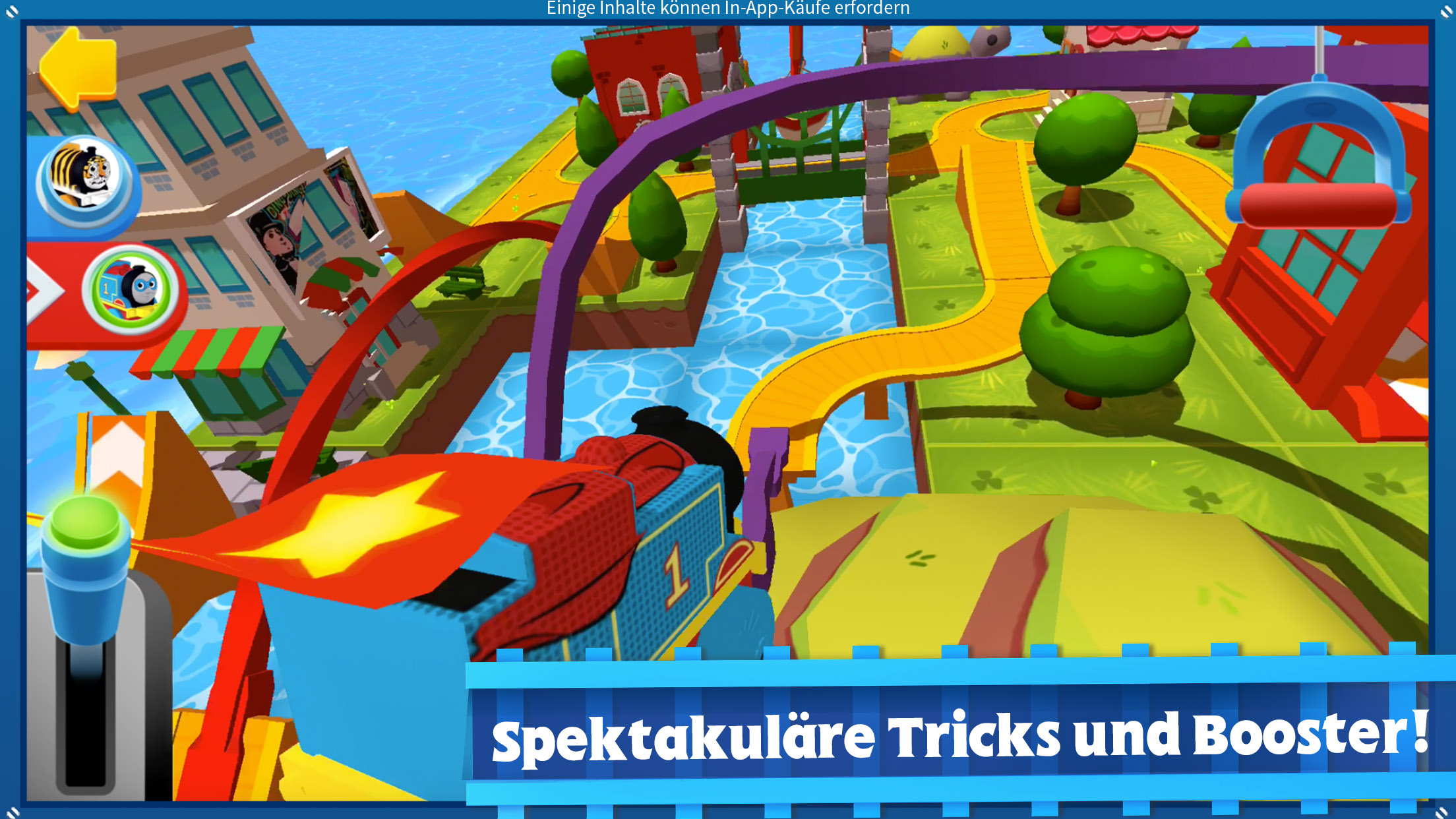 Budge Studios™ präsentiert Thomas & seine Freunde™ Minis! Erschaffe Stück für Stück deine eigene Eisenbahn und lass sie mit Thomas und all seinen Freunden lebendig werden. Gestalte nach Herzenslust und lass deiner Fantasie mit Wirbelwasserrutschen, gefrorenen Loopings, Regenbogenbrücken, Dino-Wirbelsäulen-Schienen und mehr freien Lauf! Klettere auf deine Lieblings-Minis-Lokomotive und erlebe jede Drehung, jede Kurve und jeden Trick mit! Auf die Plätze, fertig, los!