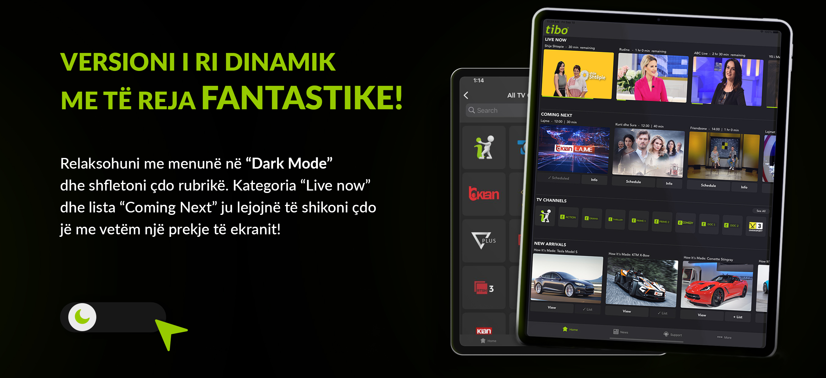 • 100 Kanäle shqiptare dhe të huaja Live TV me një përmbajtje të panumërt filmash, serialesh, dokumentarësh, emisionesh, programesh për fëmijë dhe kampionatesh und eventesh sportlich.
