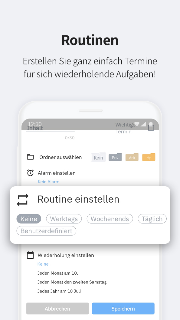 - Erstellen Sie ganz einfach Termine für sich wiederholende Aufgaben wie Sport, Arbeit, Schule usw.