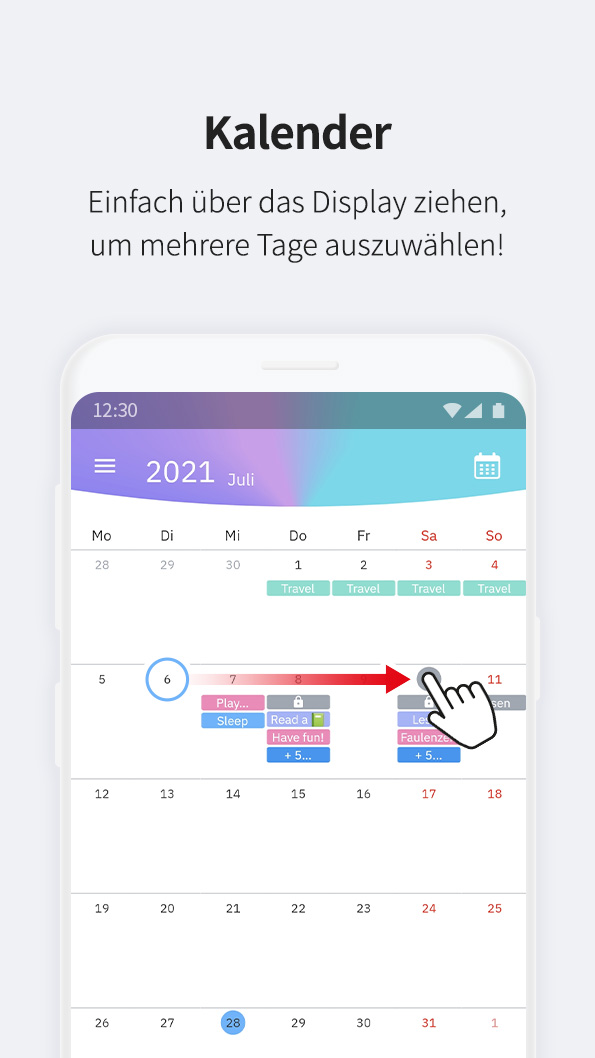 - Gedrückt halten und ziehen, um mehrere Tage auszuwählen.