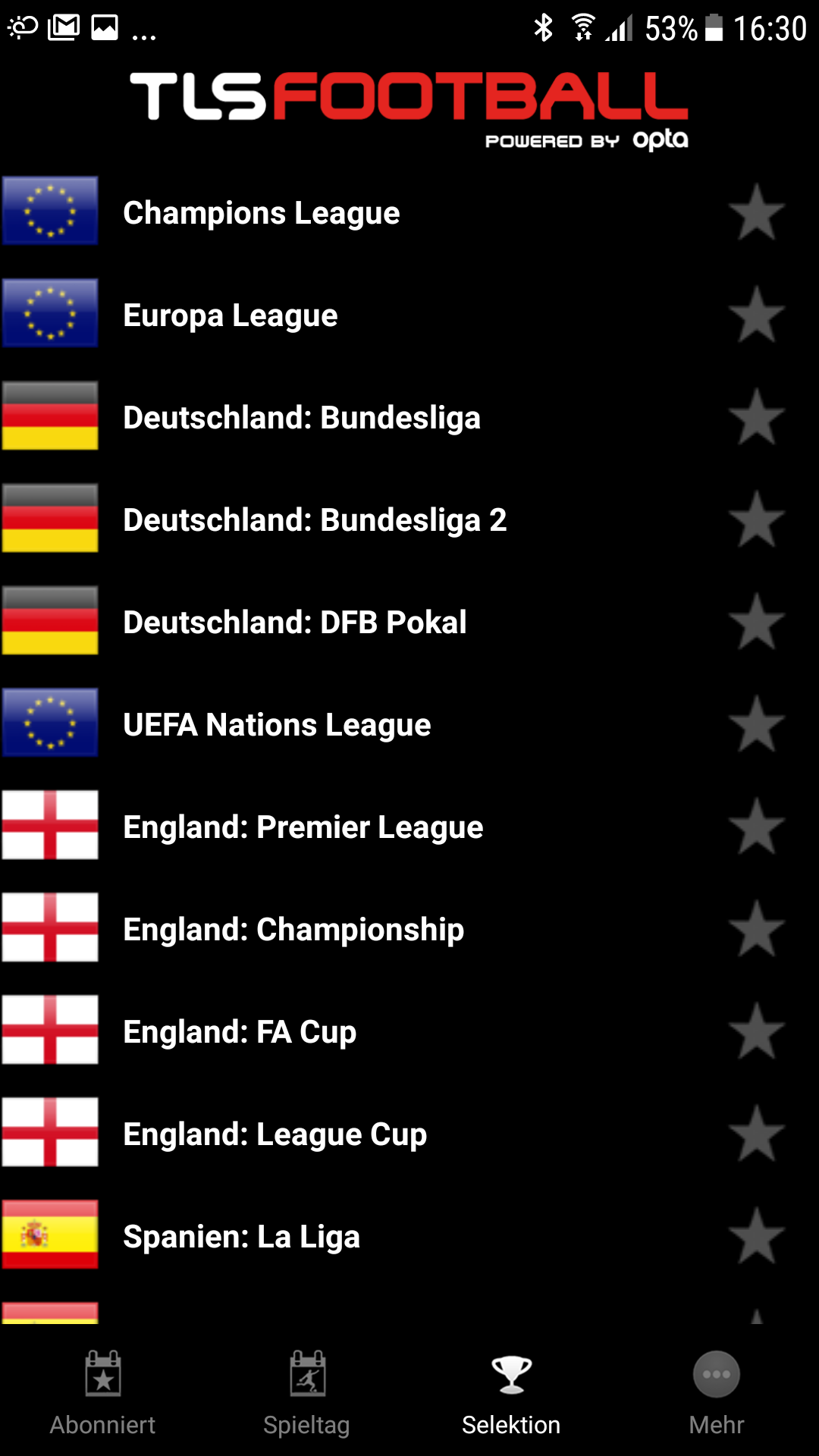 Die Go-to- App für alle Fußball-Statistiken: TLS stellt Ihnen beispiellose Fußballstatistiken sowie detaillierte Spielkommentare und Spielerstatistiken von über 40 Wettbewerben aus aller Welt. Unsere tiefgehenden Live-Fußballstatistiken versorgen Sie mit einzigartigen und Original-Einblicken für Fußball-Fans, Sportwettenzocker, Journalisten, Fußball-Manager und Spieler. Wir haben zudem Fußballtabellen, Live-Punktestände, Spieler mit Top-Leistungen und vieles mehr - gratis! TLS ist interessant und unterhaltsam zu nutzen, weist eine intuitive und simple Navigation auf und gewährt Ihnen schnellen Zugang zu den Statistiken, nach denen Sie suchen. Die Daten werden von Opta, dem führenden Datenanbieter im Fußballsektor, zur Verfügung gestellt. Mit der TLS Fußball-App sind Sie stets über die neuesten und interessantesten Statistiken aus den Top-Ligen und Turnieren informiert. Nur um ein paar zu nennen; - Bundesliga 1, 2 & DFB Pokal - UEFA Champions & Europa League - Prem League, Championship, FA Cup & League Cup Die Spieltag-Sektion in TLS Fußball bietet dir eine umfassende Live-Spielstatistik und die Aufstellung für kommende Fußballspiele. Du bekommst Live-Information über Meisterschaften, Tabellen, Aufstellungen, Ballbesitz, Schüsse, Eckbälle, Freistösse, gelbe und rote Karten, Pässe, Fouls etc. In den kommenden Versionen werden noch mehr Daten zugänglich. Die Statistik wird dynamisch für alle Spiele, Ligen und Meisterschaften erneuert, und wir werden die ganze Saison mit unserer App zugänglich sein.