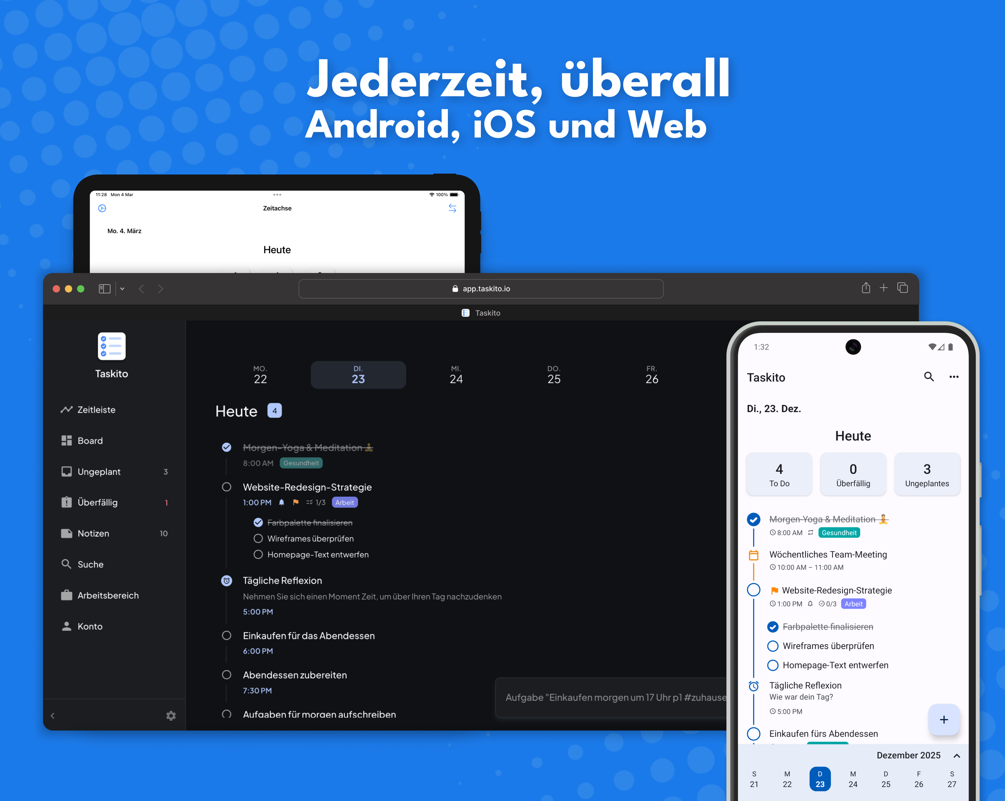 🧠 Ideal bei ADHS & Fokus-Schwierigkeiten: Taskito wurde entwickelt, um mentale Überforderung zu mindern.