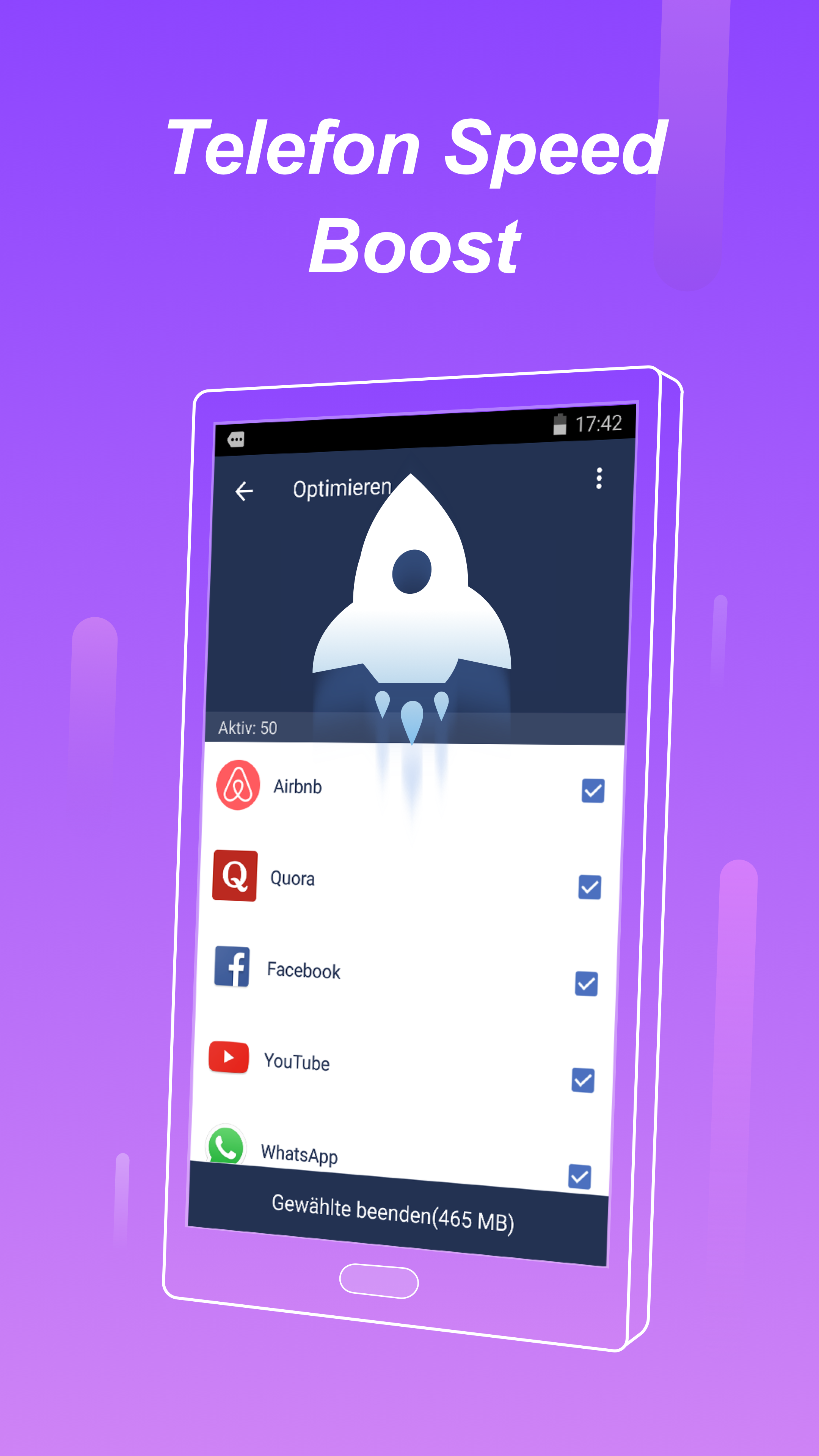 Telefon Beschleunigen Sie können 10-100 Apps auf Ihrem Handy installiert haben und einige von ihnen laufen auf Hintergrund aus verschiedenen Gründen. Nutzlos laufender Prozess wird kostbare Systemressource besetzen und verlangsamen Telefonlaufgeschwindigkeit. Ihr Telefon ist einfach zu Verzögerung und langsam reagiert im Laufe der Zeit. Cleaner hilft Ihnen, alle Speicher und Batterie hungrig App-Prozess in Echtzeit und stoppen sie schnell mit nur 1 Tipp.