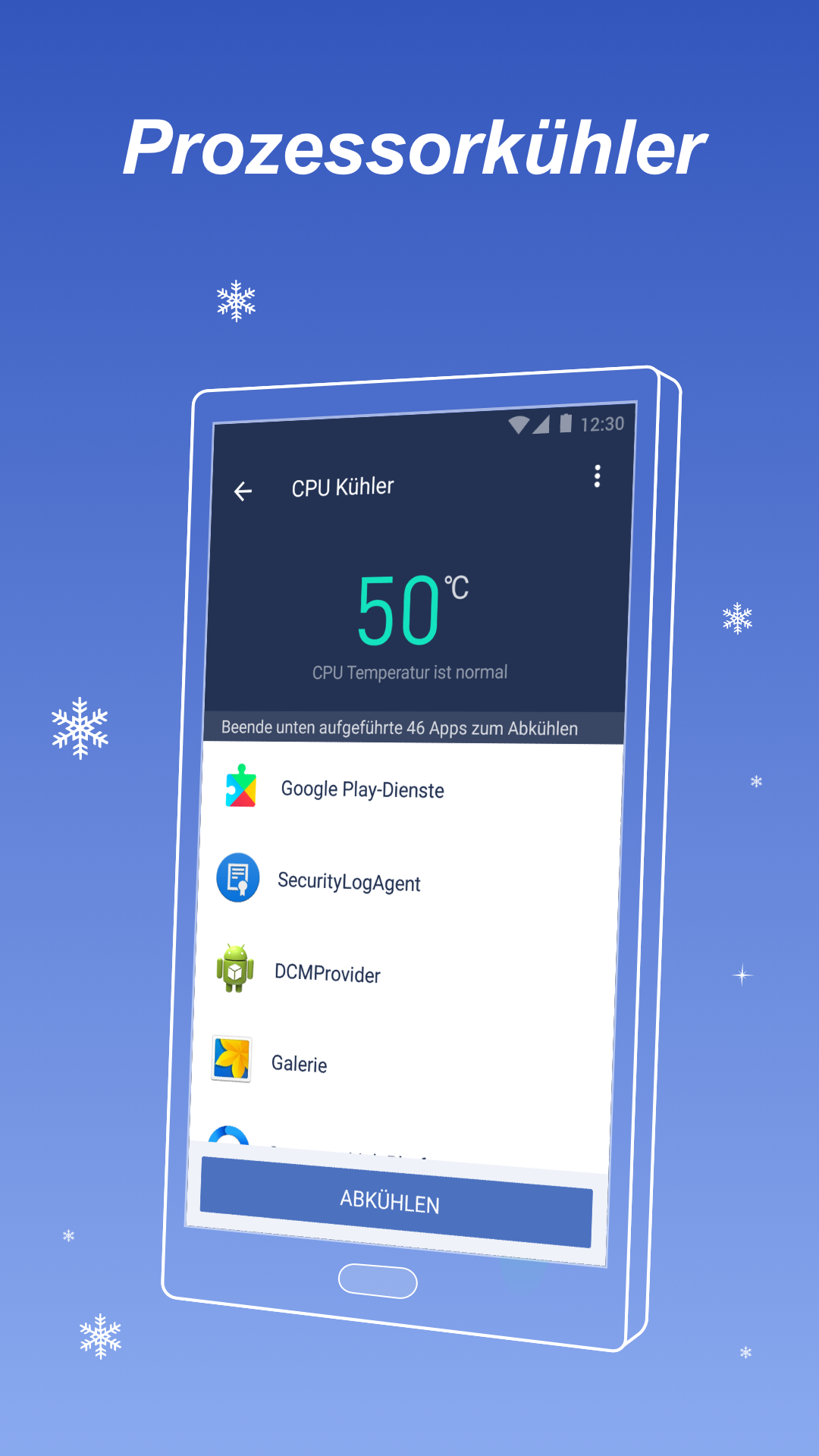 CPU-Kühler Ein Killer-Feature für Hotting- und Overheating-Geräte. Es verringert die CPU-Temperatur durch Schließen des Prozesses.