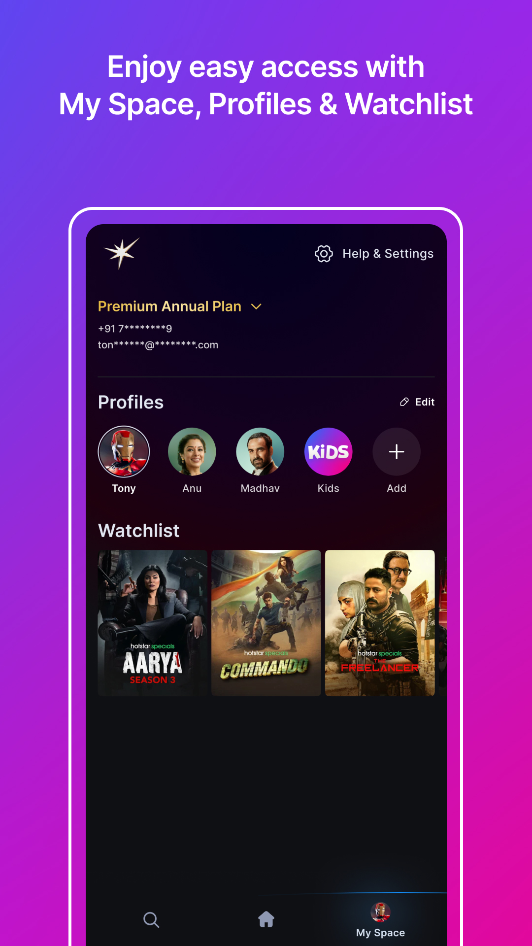 - Find any movie you need by searching its name, category or language, etc.