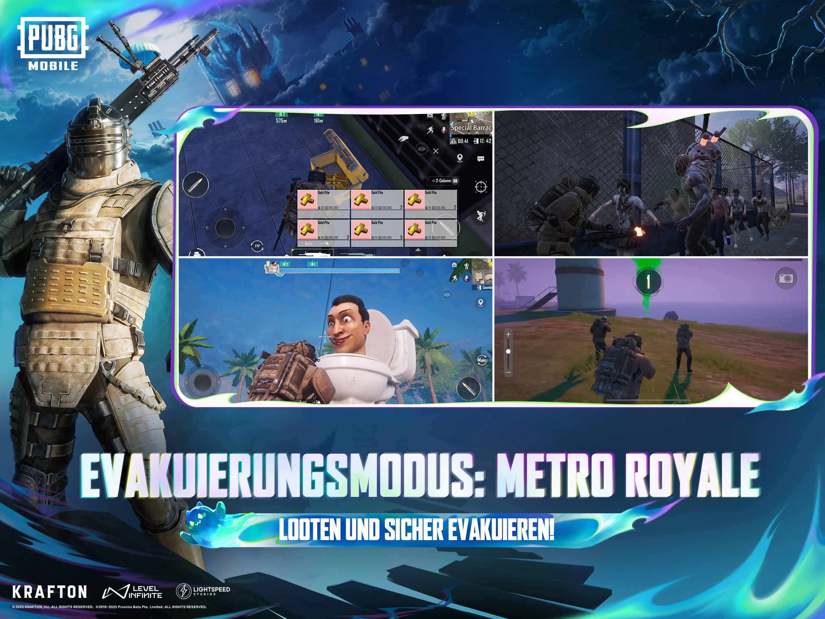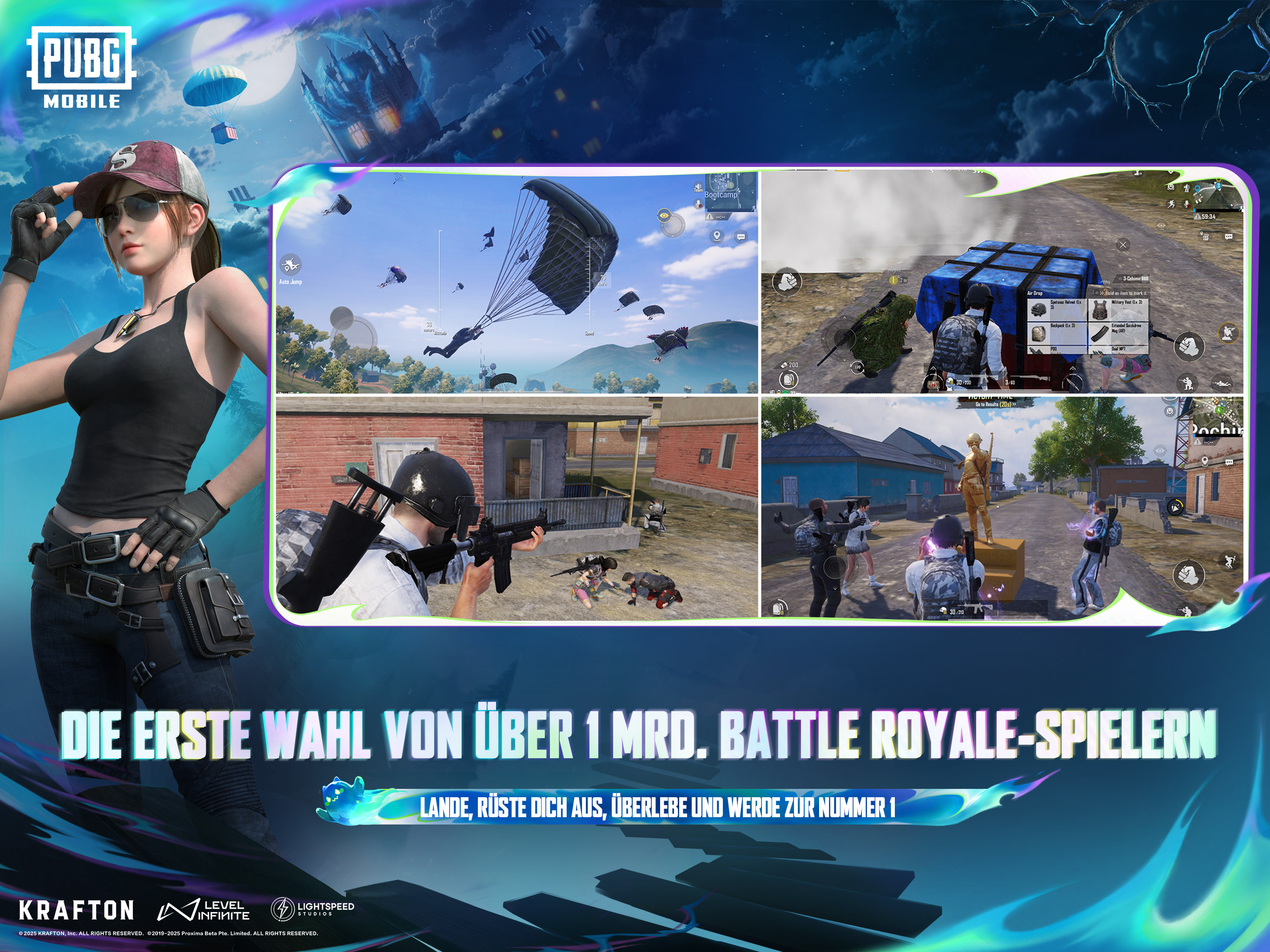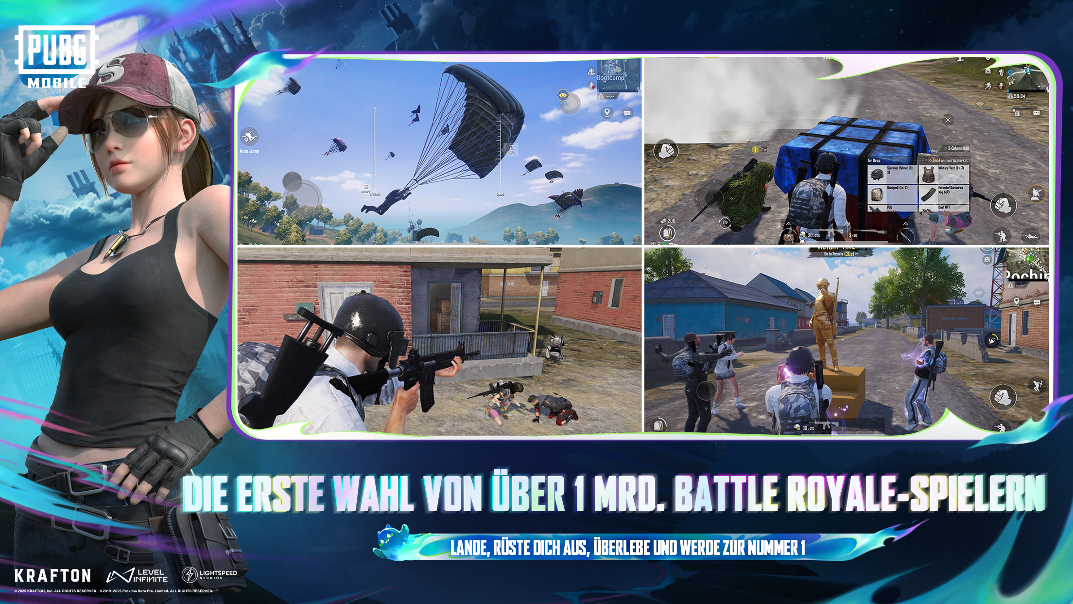 PUGB MOBILE ist ein Battle-Royale-Spiel auf Mobilgeräten. Sammeln Sie so viele Ressourcen wie möglich, um Ihre Gegner zu besiegen und das Hühnchenessen zu gewinnen!