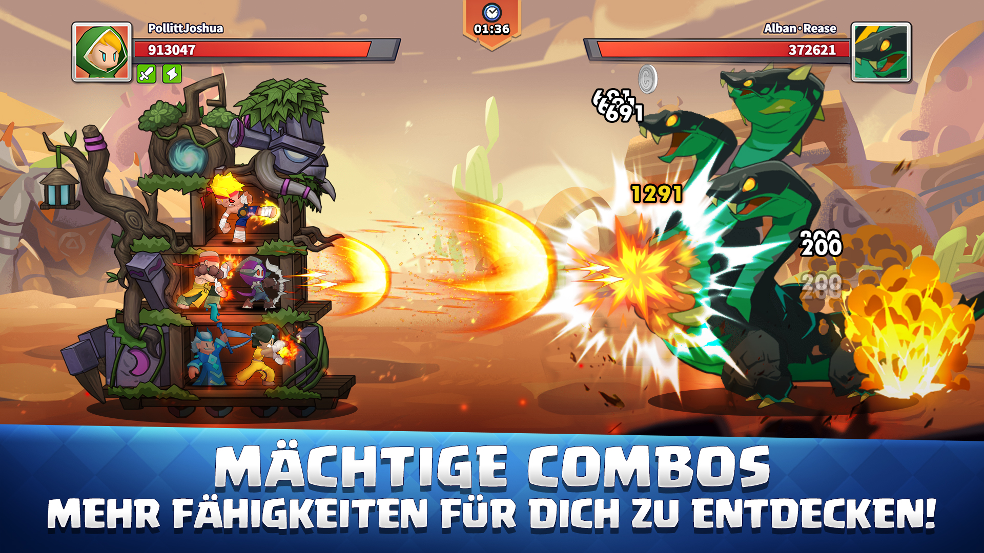 Willkommen bei Tower Brawl! Tower Brawl ist ein entspanntes und wettbewerbsorientiertes Spiel, das die Genres Tower Defense, Echtzeit-Strategie, RPG und Gacha kombiniert. Im Gegensatz zu herkömmlichen Tower-Defense-Spielen bietet Tower Brawl einen neuen und aufregenden Belagerungsturm-Kampfstil mit Synergien und Gegenstrategien zwischen einer riesigen Auswahl an Helden, Fähigkeiten, Zaubern und Klassen! Tower Brawl fördert eine hohe Variabilität durch zufällige Heldenziehungen und Ausrüstungsdrops, die dich und deinen Gegner auf Trab halten! Spieler werden das starke Gleichgewicht zwischen Strategie und Zufall in diesem aufregenden neuen Spiel genießen! [Auto Chess, Tower Defense und Echtzeit-PvP] Tower Brawl ist eine innovative Kombination aus Gacha, Auto Chess, Tower Defense und Echtzeit-1v1-Kämpfen. Du kannst innerhalb von 3 Sekunden in einen Kampf starten! Stelle strategisch ein Deck von 10 Helden zusammen und verbessere deine Helden und deinen Belagerungsturm in Echtzeit, indem du Feinde besiegst oder Truhen mit geheimen Belohnungen öffnest! Im Kampf kannst du deine Heldenaufstellung in Echtzeit strategisch anpassen und Ausrüstungen mit zufälligen Drops verbessern, um deinen Gegner zu besiegen und eine unaufhaltsame Legende zu werden! [Genieße Co-op und PvE mit Freunden] Fordere mehr als 300 Wellen von Monstern und mächtigen, einzigartigen Bossen in den Co-op- und Ausstellungsmodi heraus! Im Co-op-Modus kannst du deine Freunde einladen, deinem Team beizutreten und gemeinsam die beste Strategie zu planen! Jeder Boss hat einzigartige Merkmale und Fähigkeiten. Finde den optimalen Weg, um sie zu besiegen, und du kannst S-Tier-Belohnungen erhalten, einschließlich eines Wisp-Heroes und eines einzigartigen Belagerungsturm-Skins! [Eine Vielzahl von Heldenrollen zum Synergisieren] Es gibt 9 Klassen in Tower Brawl, darunter Magier, Bogenschützen, Krieger, Priester, Beschwörer, Diebe und spezielle Rassen wie Panda, Wisps und Unterstützer. Darüber hinaus hat jede Einheit ihre eigenen einzigartigen Fähigkeiten, die kombiniert werden können, um deine Stärken zu verstärken oder deine Gegner zu kontern. Stelle frei eine dominierende Aufstellung mit hunderten von strategischen Kombinationen zusammen! [Werde eine Legende in verschiedenen PvP-Modi] Brawler versammeln sich in PvP, Arena, Royale und Belagerungskämpfen, um jede Saison um den Titel zu kämpfen. Exklusive Belohnungen, einschließlich Helden und Skins, werden nach jedem Event vergeben!
