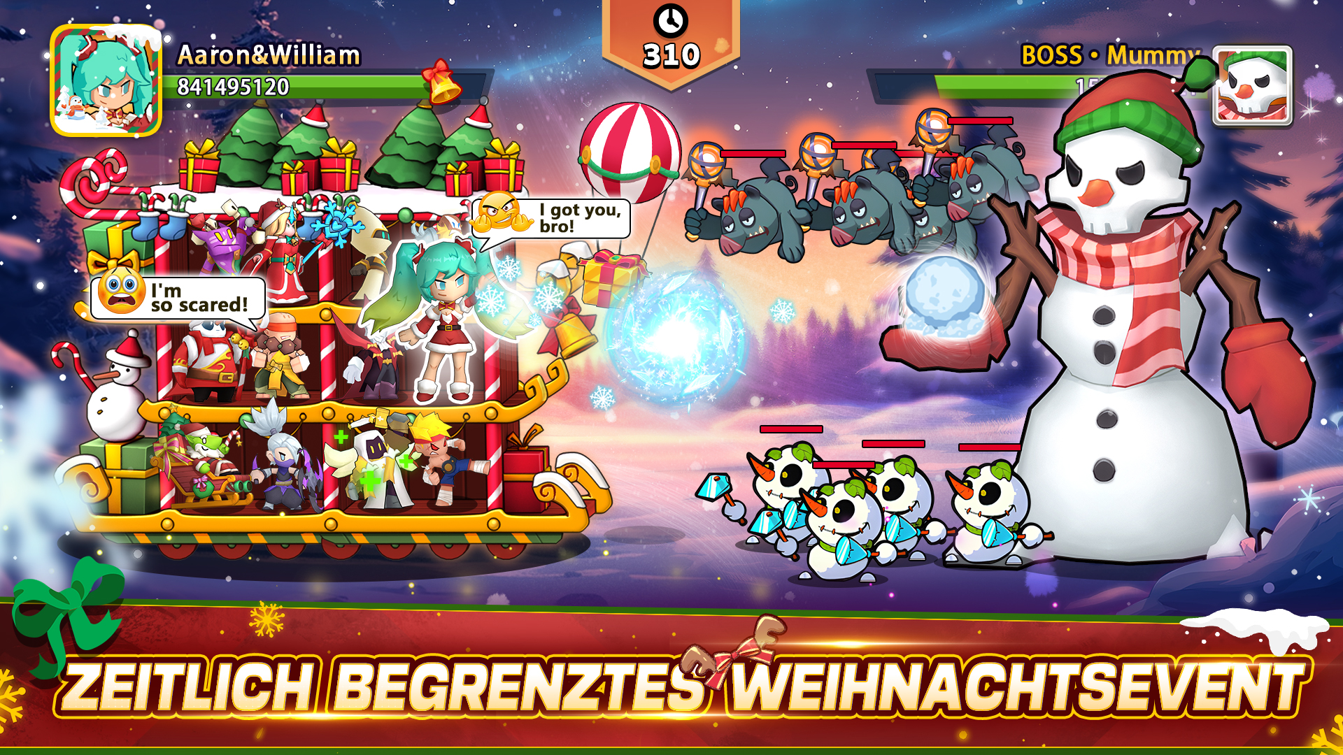 - Weihnachts-Event gestartet - Spannender neuer Roguelike-Spielmodus, in dem Spieler Fähigkeiten kombinieren können, um den ultimativen Helden zu erschaffen! - Neue Weihnachts-Emojis hinzugefügt - Neue Santa Kingpin-Skin, Snowman Nightmare-Skin und Pop-Star Divana-Skin hinzugefügt - Eine neue Saison beginnt - Neuer Clan-Raid-Boss hinzugefügt - Bekannte Probleme wurden behoben