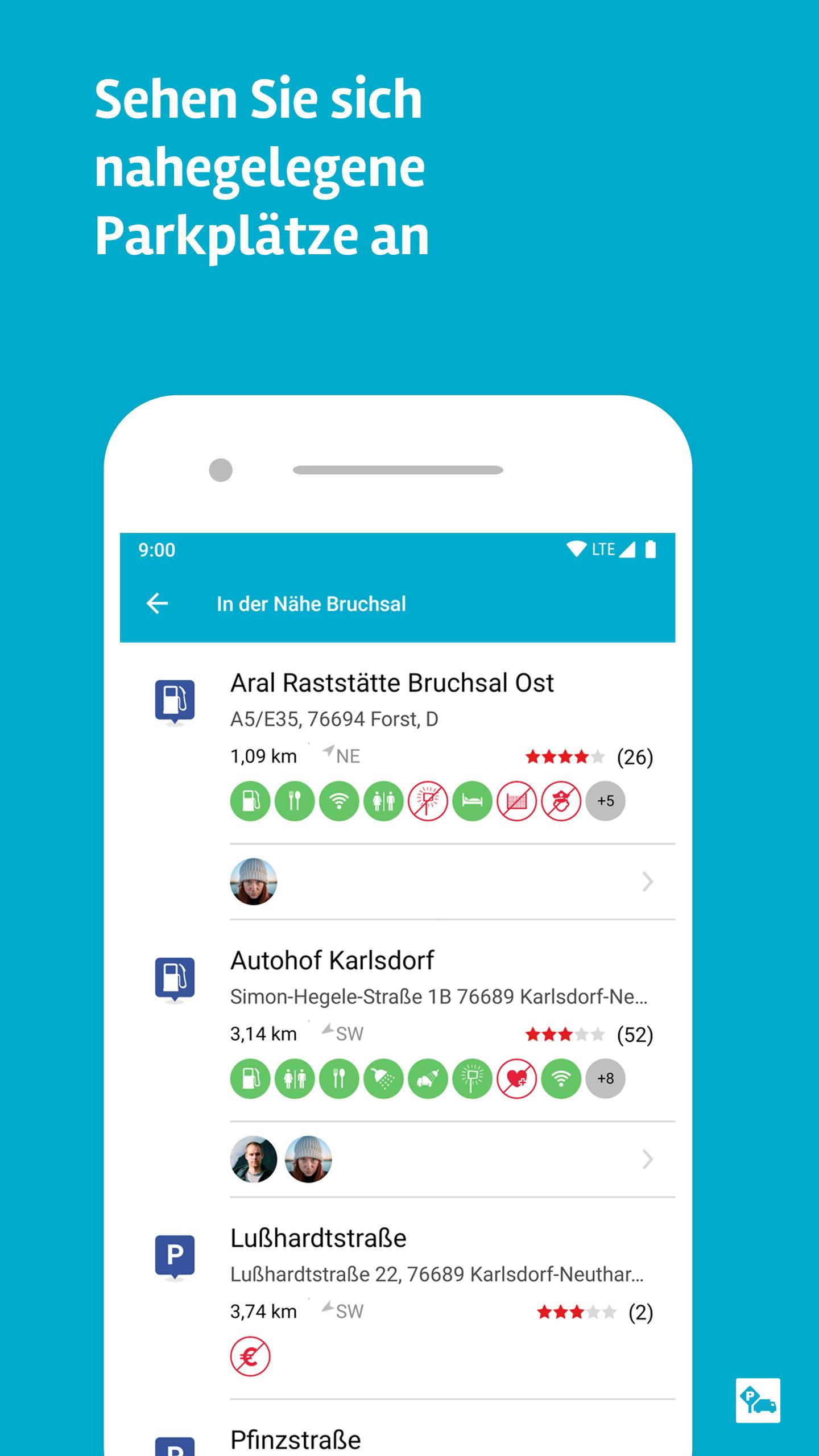 - Kostenlose App mit über 52.000 LKW-Parkplätzen und Stellplätzen