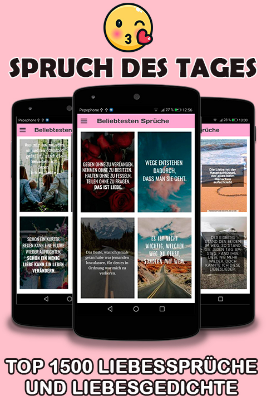 ★ In Liebesphrasen finden Sie die besten Texte für Liebesbilder, die Sie zum Vibrieren bringen und Sie dazu inspirieren werden, einen Heiratsantrag durch einen Liebesbrief mit romantischen Bilder zu machen und den geliebten Menschen sich erobert fühlen zu lassen Unsere App enthält auch schöne bilder liebe, mit denen wir Botschaften und Sprüche begleiten. Genießen Sie eine Sammlung der besten Lustige Sprüche und Freundschaft, mit denen Sie Ihre Gefühle vermitteln können. Sie werden Sie bewegen und mit ihrer Lyrik Emotionen erzeugen. Die liebesphrasen kann Ihren Partner oder Ihre Partnerin so begeistern, dass sich Ihre Beziehung verbessern kann, wenn er oder sie eine ich liebe dich sprüche erhält.