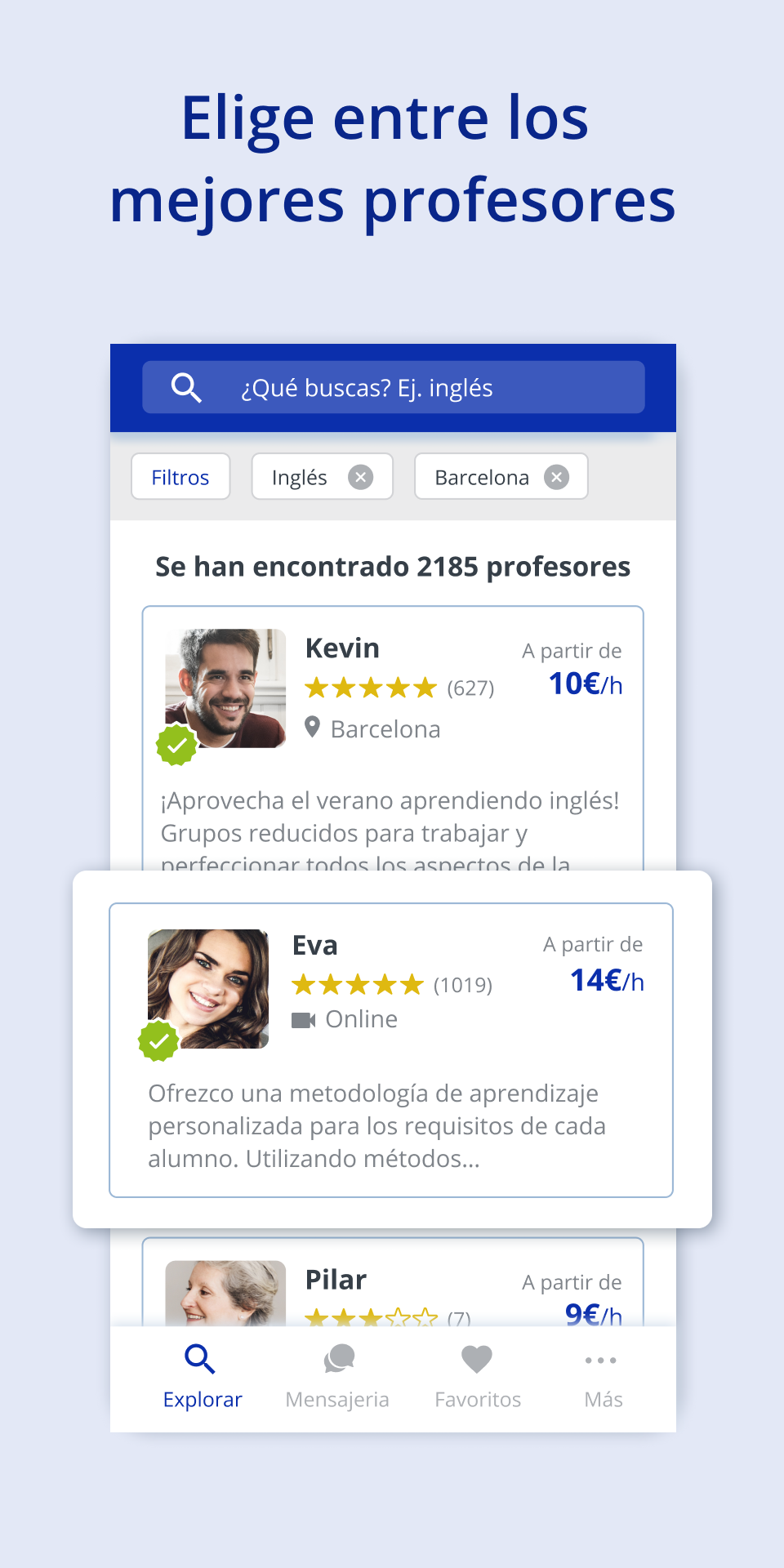 Möchten Sie Privatunterricht erhalten? Verwenden Sie die kostenlose App Ihrer Privatklassen, um Ihren perfekten Privatlehrer für jedes Fach (Sprachen, Mathematik, Schulförderung, Programmierung, Yoga ...) in Ihrer Nähe zu finden.