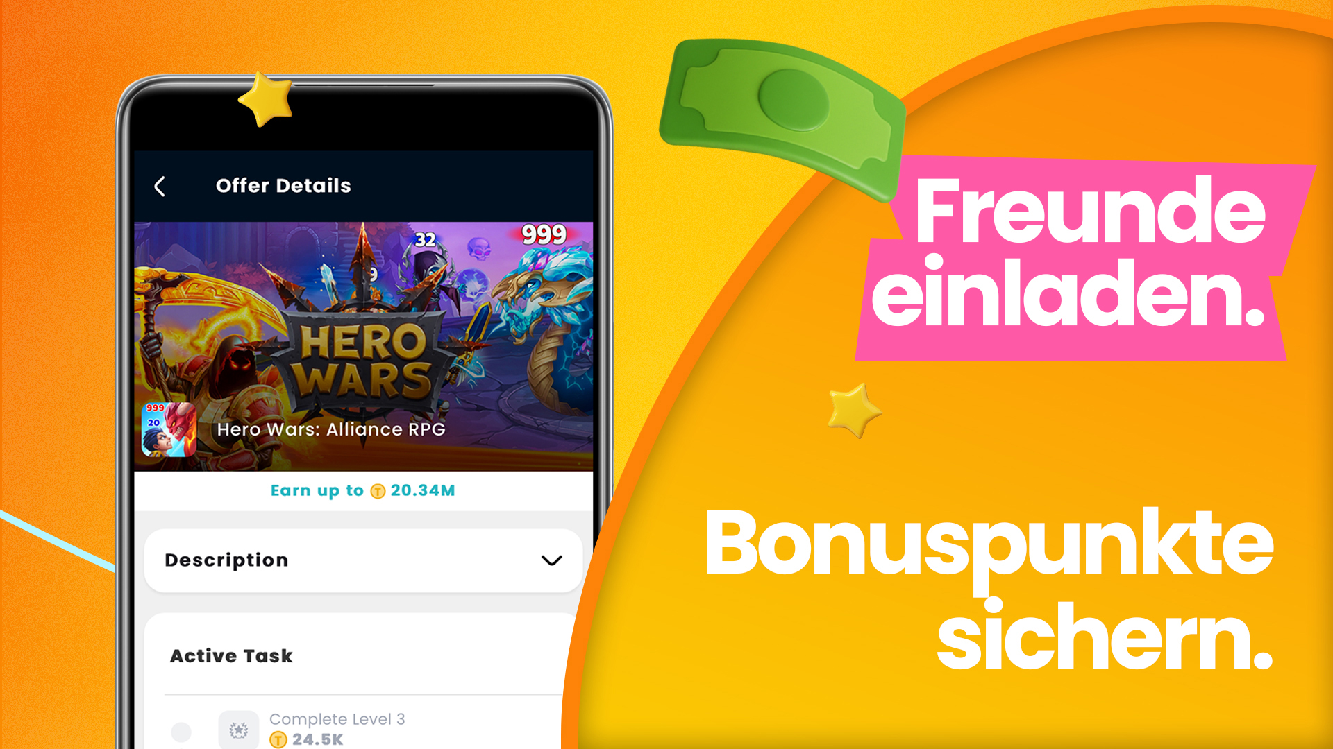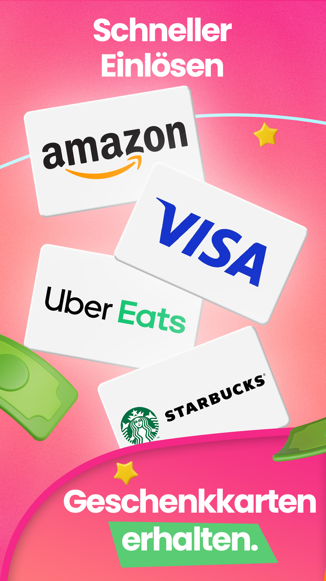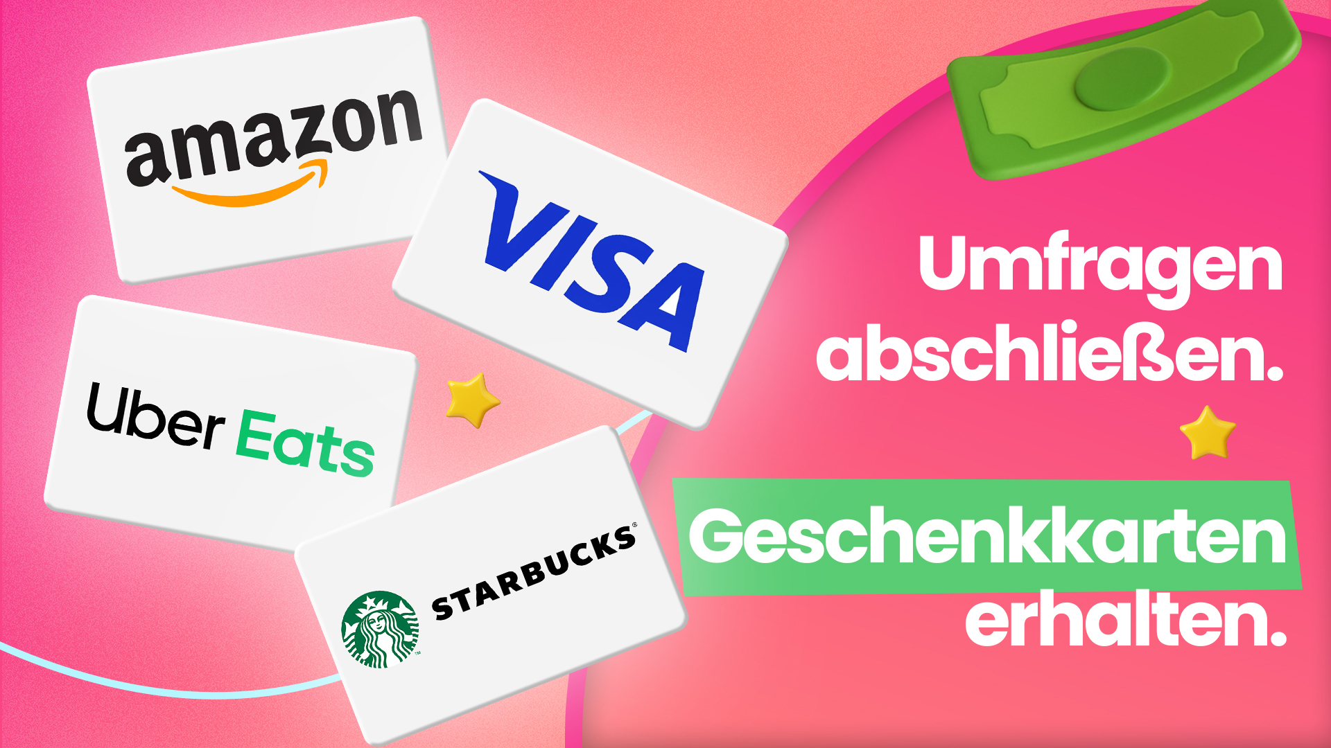 Einfacher geht es nicht: Verdiene Cash, Bargeld, Coupons oder Gutscheine, indem du Aufgaben aus unserer umfangreichen Liste von Angeboten erledigst. Sammle Punkte und löse sie bei über 1000 Partnern ein – von bekannten Spielen bis zu Gift Cards von Steam, Amazon und mehr.