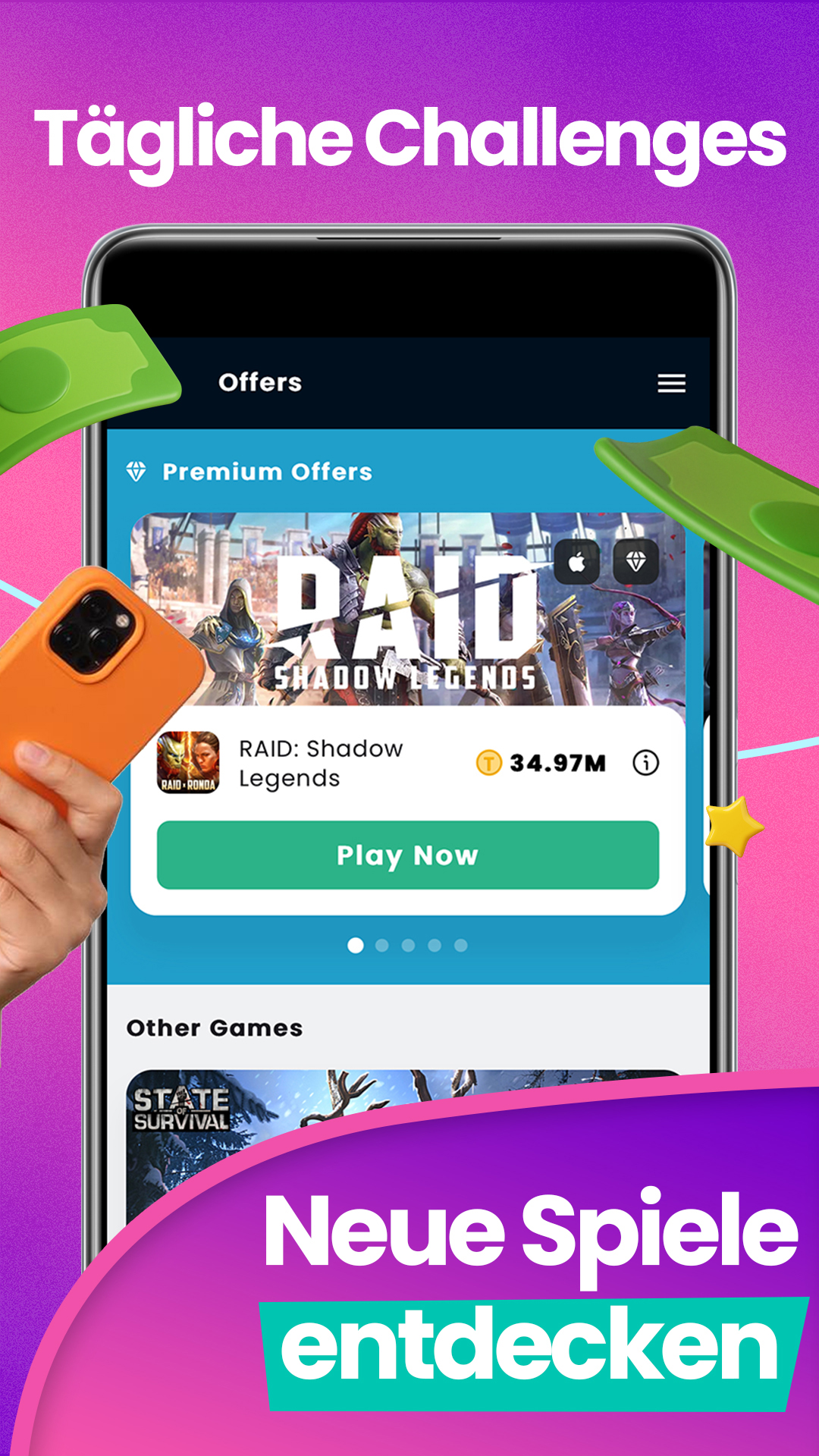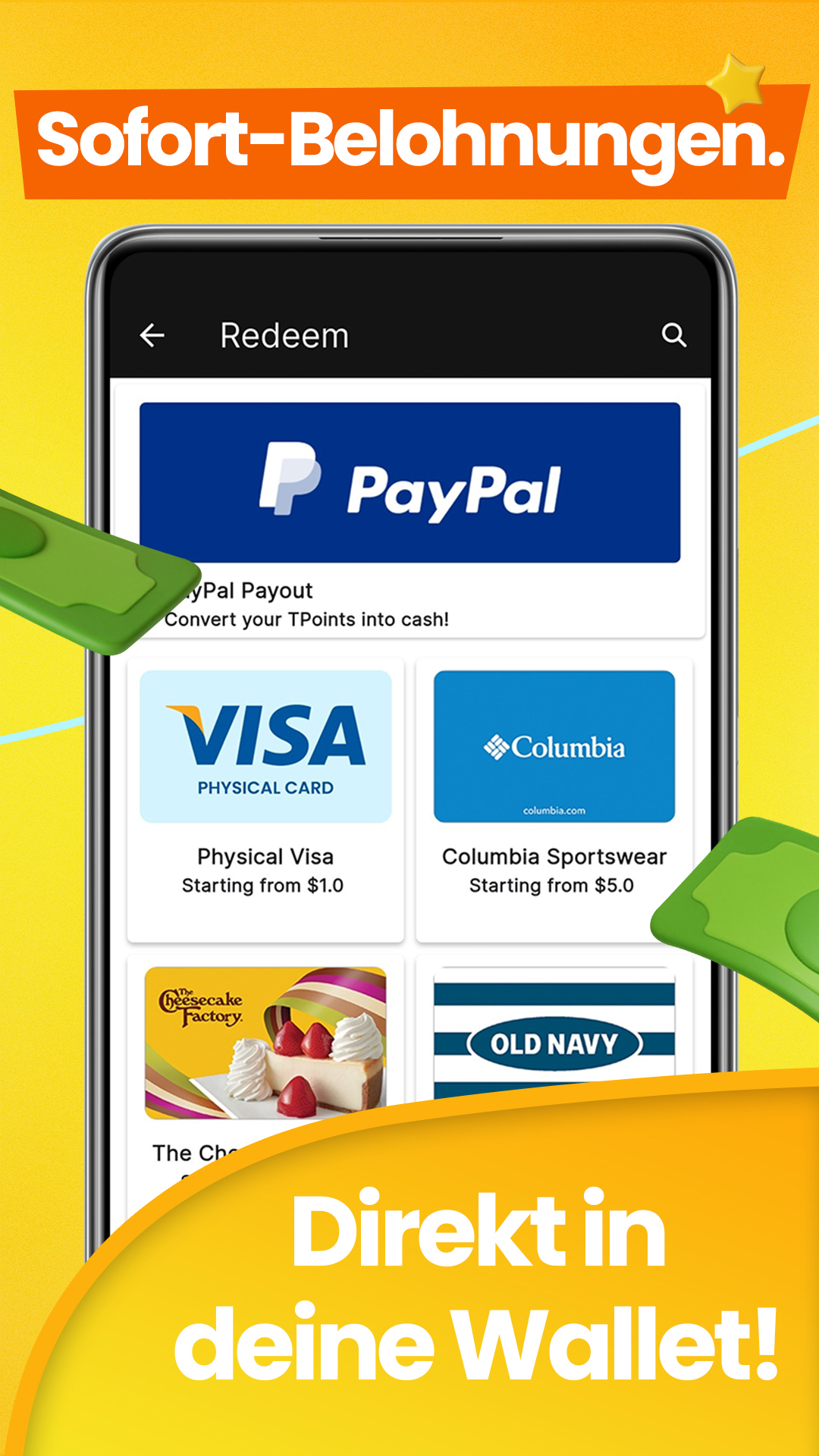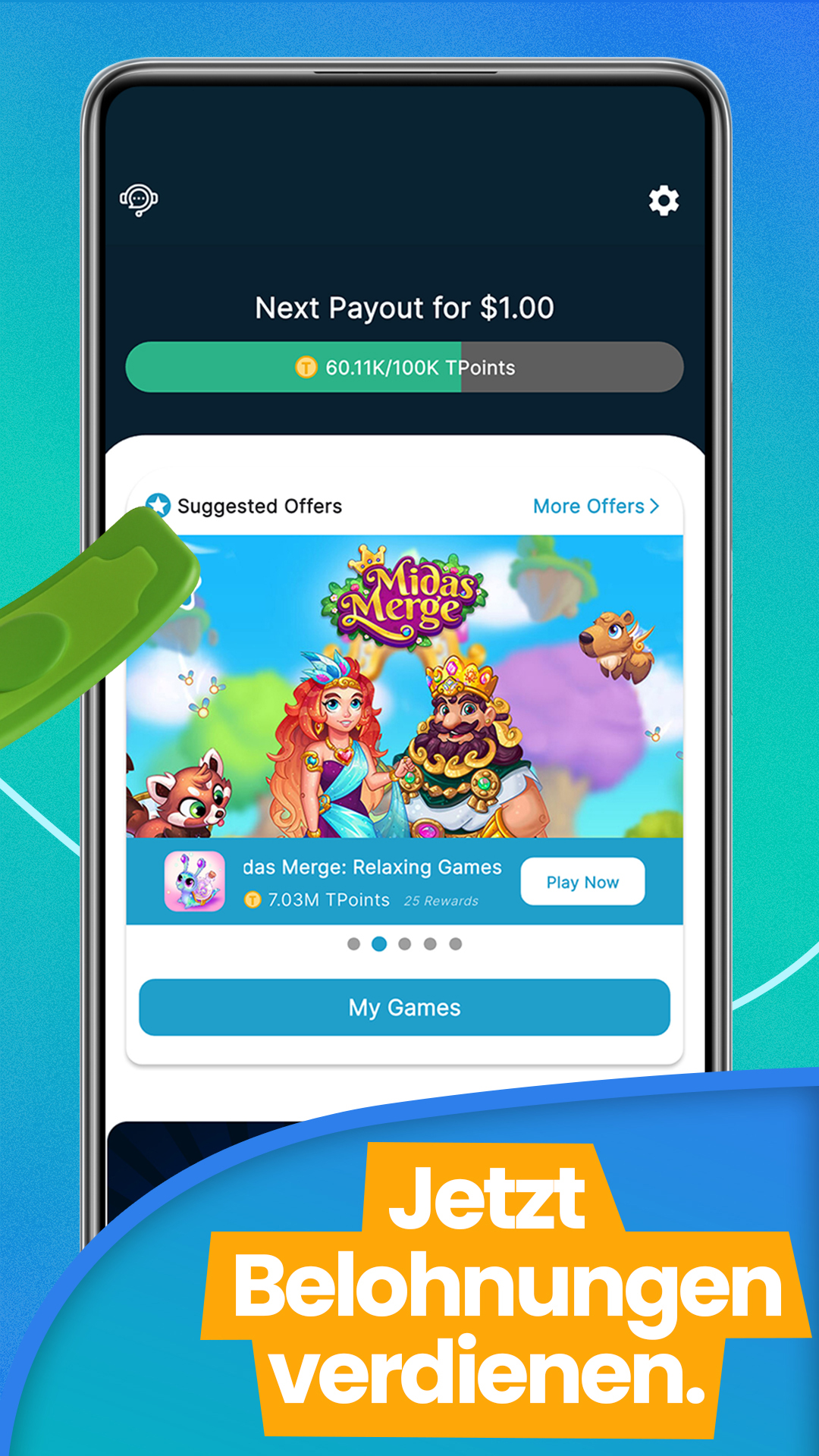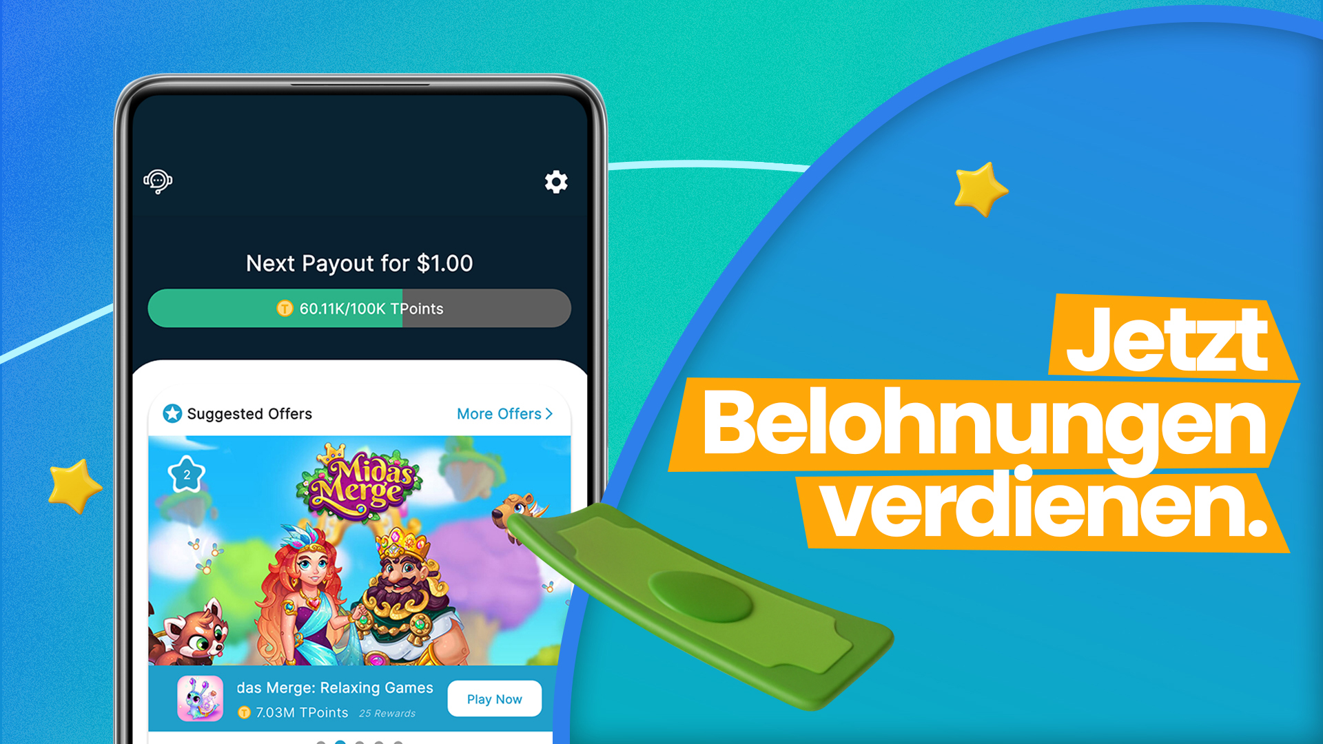 Starte jetzt und verwandle deine Spielzeit in echte Rewards! Verbessere dein Spielerlebnis und mache jedes Handyspiel, jede Investition in Punkte und jede Gutschein App zu einer lohnenden Erfahrung.