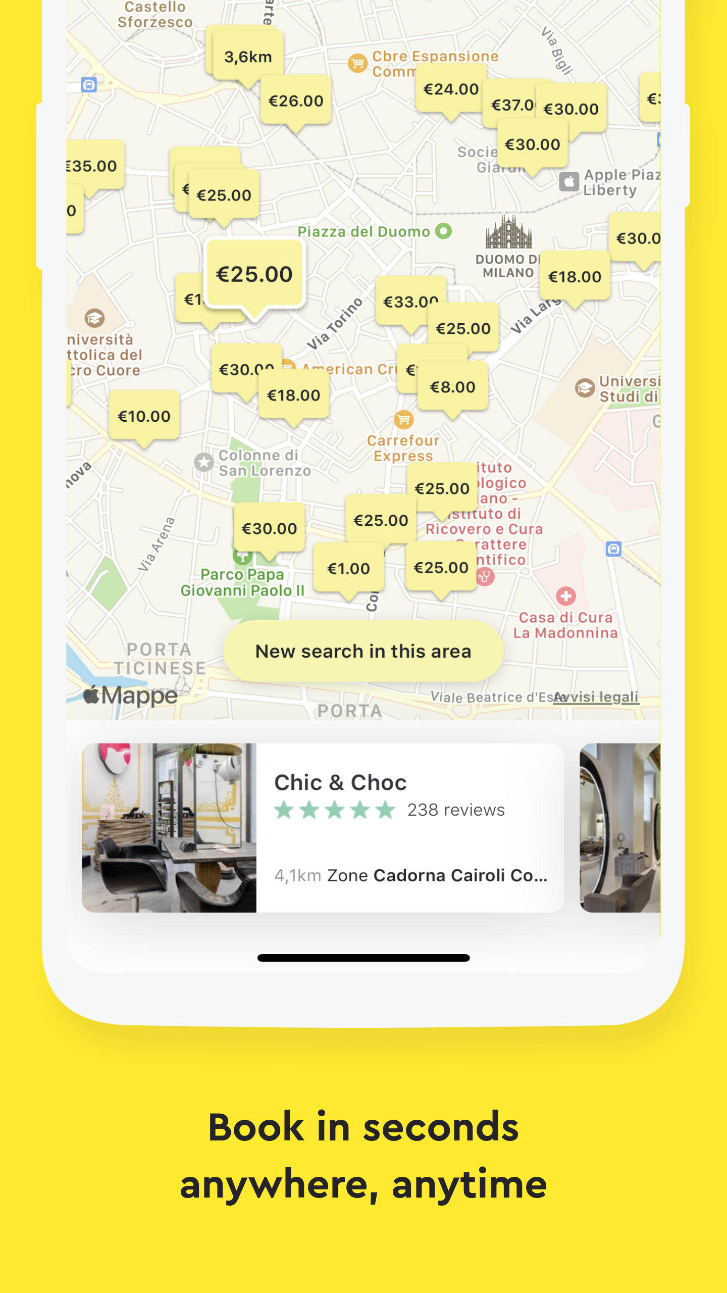 - Suchen Sie nach einer Behandlung und finden Sie heraus, in welchen Salons in Ihrer Nähe an dem von Ihnen bevorzugten Tag und zu der gewünschten Zeit Platz ist.