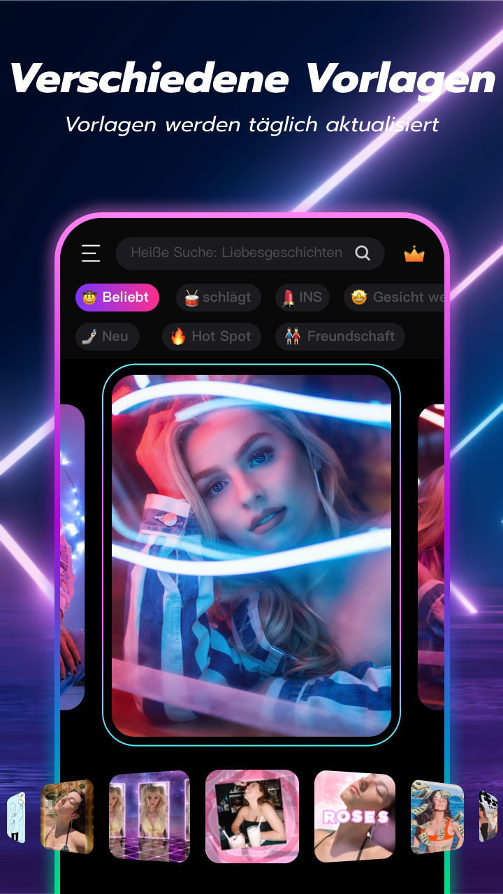 Vakie ist ein kostenloser Filmemacher mit fantastischen Effekten und Übergängen . Vakie ist auch die erste Wahl für Video-Editoren für Anfänger, die innerhalb von Minuten coole Videos erstellen möchten. Mit seiner hoch entwickelten Hochtechnologie können Sie mit nur einem Klick Ihre eigenen lustigen, coolen Kurzvideos erstellen. Vakie bietet eine Vielzahl lebendiger Vorlagen mit animierten Effekten und auffälligen Übergängen. Die Vorlagen werden täglich aktualisiert und sind für jeden geeignet, unabhängig von Ihren Anforderungen: Geburtstag, Festival, Vlog, Jubiläen, Musikvideos… Vakie hat Vorlagen für alles, was Sie sich vorstellen können. Sie können den Spaß ganz einfach auf TikTok, Facebook, Instagram, Youtube und anderen SNS teilen und Ihre Beiträge sofort unter Ihren Freunden hervorheben und mehr Likes erhalten !! Laden Sie JETZT die Vakie-App herunter, um Ihre wundersame Reise zur Videoproduktion zu beginnen! VAKIE-FUNKTIONEN ►ZAHLREICHE VORLAGEN Vakie bietet Hunderte hochwertiger Vorlagen, um den unterschiedlichen Anforderungen der Benutzer gerecht zu werden. Jede Vakie-Vorlage enthält einzigartige Übergänge und Musik, die Ihren Betrachter begeistern werden. Um ein Video mit Vakie zu erstellen, klicken Sie einfach auf und laden Sie Ihr Foto hoch. Wie EINFACH ist das! Denken Sie auch daran, unsere NEUEN Vorlagen regelmäßig zu überprüfen. Die Vorlagen werden auch jeden Tag aktualisiert! ►SUPERB-EFFEKTE Sie können unzählige erstaunliche Effekte ausprobieren, die Ihre Fotos zum Leben erwecken. Vakie bietet auch Cartoon-Vorlagen mit verschiedenen Themen und Effekten. Laden Sie einfach Ihr Bild hoch, um loszulegen! Mit nur einem Klick erhalten Sie ein cooles Video mit Effekten, Übergängen, Titeln und Aufklebern! ►AI-TECHNOLOGIE Vakie beschränkt sich nicht nur auf das Hinzufügen von Effekten und Übergängen zu Videos, sondern fügt den Vorlagen auch KI-Technologie hinzu. Möchten Sie versuchen, das Gesicht mit Ihrem besten Freund zu tauschen? Verpassen Sie nicht die KI-Sektion! Die KI-Technologie ermöglicht es Ihnen auch, Ihr Geschlecht oder Ihr Alter zu ändern und bringt viel Spaß. Darüber hinaus kann Vakie Ihnen helfen, Ihren Fotohintergrund zu ändern und Sie innerhalb von Minuten um die Welt reisen zu lassen. ►MUSIKVIDEOS Jeder Vakie-Übergang folgt einem einzigartigen Musikrhythmus. Probieren Sie die Beat-Vorlagen aus, um coole, trendige Musikvideos zu erstellen! Es fühlt sich an, als würden sich Ihre Fotos mit Ihrem Herzschlag bewegen! Sie können unterhaltsame kurze Videoclips mit der neuesten populären Musik erstellen. ►SPAREN & TEILEN Sie können Ihr Meisterwerk auch mit Ihren Freunden in sozialen Medien wie TikTok, Instagram, Facebook oder YouTube teilen, um Ihre Vorlieben zu steigern und neue Follower zu gewinnen. Nutzungsbedingungen und Datenschutzvereinbarung: https://hybrid-us.kakalili.com/argeement/vakie-privacy-policy-android.html Nutzungsbedingungen: https://hybrid-us.kakalili.com/argeement/vakie-user-agreement-android.html