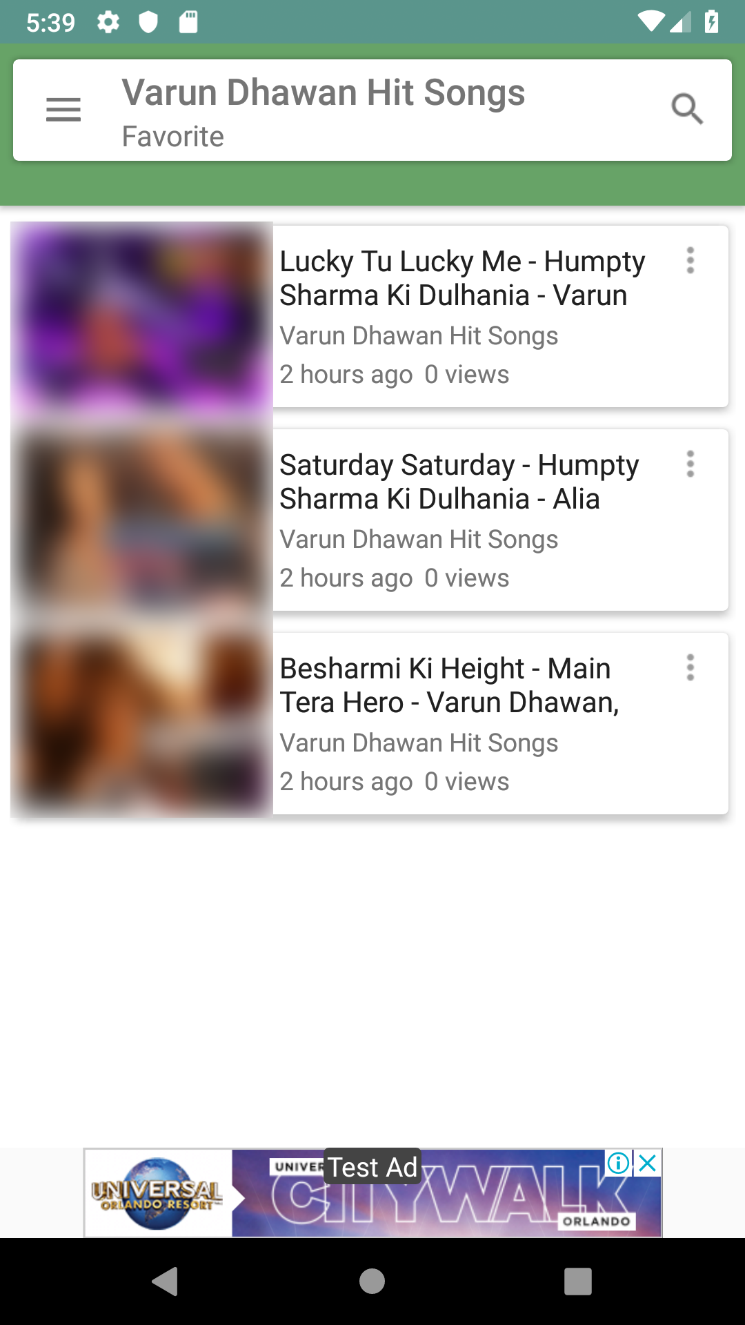 Welcome to Varun Dhawan Hit Songs app, here you will get hit songs of Varun Dhawan. In this app you will get Varun Dhawan hit songs. Using the search option you can search for your favorite song. I hope you will have fun using this app by watching hindi songs of Varun Dhawan. In Varun Dhawan Hit songs app one can easily bookmark their favorite Varun Dhawan video song and then watch them later by going to favorites section from the navigation bar. Varun Dhawan is an Indian actor who appears in hindi movies. Varun Dhawan is the son of David Dhawan who is a film director. Varun Dhawan acting debut was with romantic comedy hindi movie Student of the Year which was released in the year 2012 and he received a filmfare nomination for best male debut. Varun Dhawan hindi movies are Main Tera Hero, Humpty Sharma Ki Dulhania, Badlapur, ABCD 2. Varun Dhawan upcoming hindi movies are Dilwale alongside Shah Rukh Khan, Kajol and Kriti Sanon in lead roles, Dishoom alongside John Abraham, Jacqueline Fernandez and Akshaye Khanna in lead roles. In this app you will get Hindi Songs of Varun Dhawan. Disclaimer: The content provided in this app is hosted by YouTube and is available in public domain. We do not upload any videos to YouTube or not showing any modified content. This app provides the organized way to select songs and watch videos. Please note that any revenue generated through ads which are shown while watching video will go to respected YouTube channel owner. If you are the copyright holder and you think there is any content that may infringe upon yours or anyone's copyrights, the following link can be used to report the content: http://www.youtube.com/t/dmca_policy.