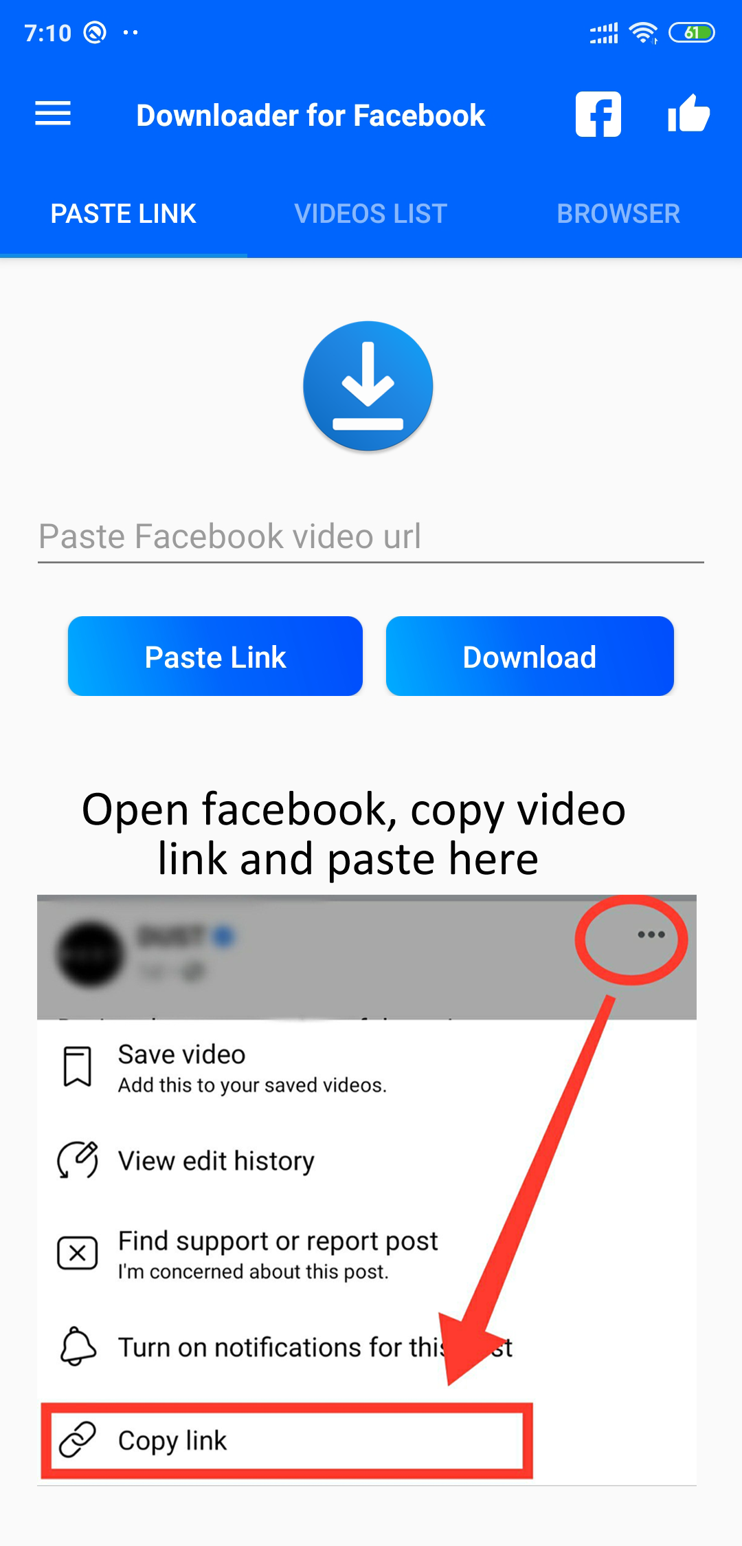 Best and easiest video downloader for Facebook that allows you to save videos to your gallery repost to social media and play offline. Two ways to download videos: download via a link and download via the built-in browser. #Download via the link: 1. Open the Facebook App 2. Click the copy link on any video post, check the images in the tutorial inside the app 3. Now open this app(video downloader for Facebook) and it will start to download the video automatically. We recommend using this way for a better experience using the app, it is the safest, fastest, and convenient way to download. #Download via built-in browser: 1. Open Video down for Facebook 2. Use the built-in browser to log in to the official Facebook website 3. Play any video and click the download button and the video will start downloading App Features: ✓ You can download HD videos from Facebook ✓ Superfast Facebook video downloader engine ✓ Simultaneously download multiple files and play them offline after downloading ✓ Share & Repost videos you downloaded with friends and social media. ✓ download FB video with the quality you choose ✓ Full functionality built-in video player that can play videos offline If you enjoying this app do not forget to leave five ⭐️⭐️⭐️⭐️⭐️ stars for us, comments, and feedback so we can improve the app and make it better. Disclaimer: - This app Video Downloader for Facebook is NOT affiliated with or endorsed by the Facebook official network. - Any unauthorized re-uploading or downloading of contents and/or violations of Intellectual property rights is the sole responsibility of the user - You should understand that the ownership, intellectual property rights and any other interests of the Video, Photo, IG Story, Reels Video even Highlight on the platform belong to its publishers or owners. We respect such legitimate rights and interests of the publishers or the owners. We recommend you to obtain permission before download and use the content, also, you shall indicate the source of the content when using the downloaded Video, Photo, IG Story, Reels Video even Highlight. - This video downloader is not associated with Facebook.